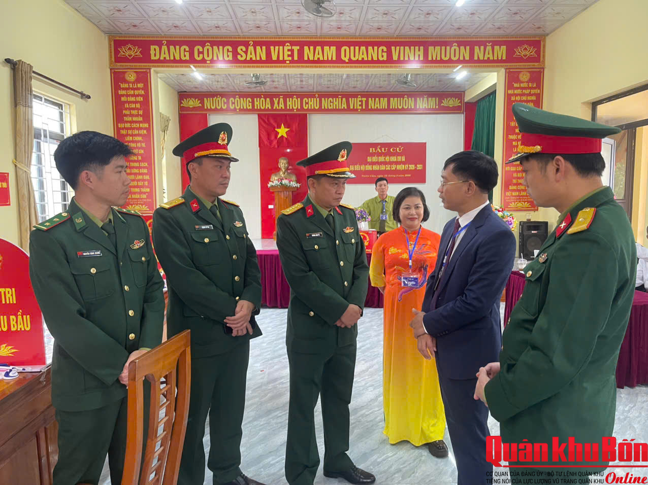 Sáng cùng ngày, Bộ CHQS tỉnh đã tiến hành thành lập 2 đoàn công tác tiến hành kiểm tra công tác bầu cử tại xã biên giới Sơn Hồng và điểm bầu cử tại Khu vực bỏ phiếu số 11, thôn Yên Thọ, Xã Thiên Cầm.