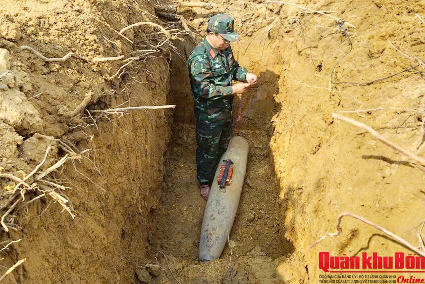 Lực lượng Công binh, Bộ CHQS tỉnh Nghệ An đã tiến hành vô hiệu hóa ngòi nổ, phối hợp với Ban CHQS xã Kim Liên tổ chức trục vớt và vận chuyển quả bom đến khu vực thao trường bắn thuộc Ban Chỉ huy Phòng thủ Khu vực 1 - Van An thuộc xã Nam Đàn, tỉnh Nghệ An tiến hành tiêu huỷ thành công, bảo đảm an toàn tuyệt đối về người và tài sản.