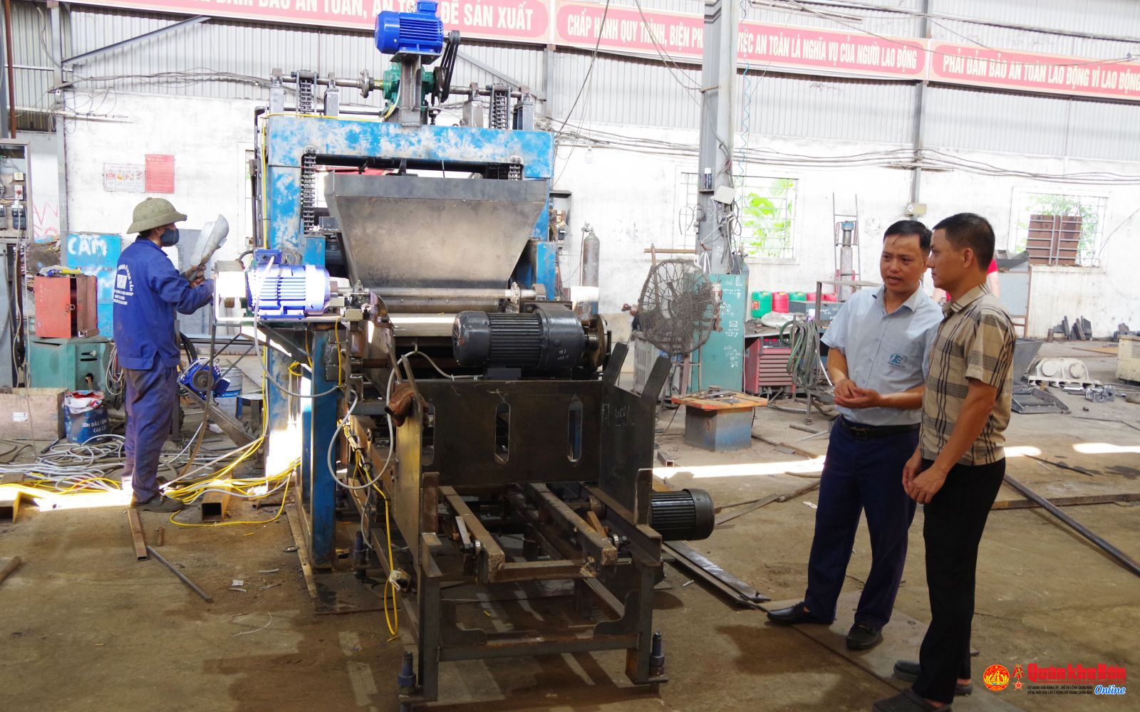 Phó Bí thư Chi bộ, Giám đốc Công ty Hồ Xuân Vinh báo cáo đề xuất với Chi bộ: “Hiện thị trường đã có sự chuyển dịch từ vật liệu nung sang vật liệu không nung bởi chúng không thân thiện với môi trường. Do đó tôi có ý tưởng sản xuất dòng máy ép gạch bê tông không nung, giá thành rẻ, bảo vệ môi trường…”.