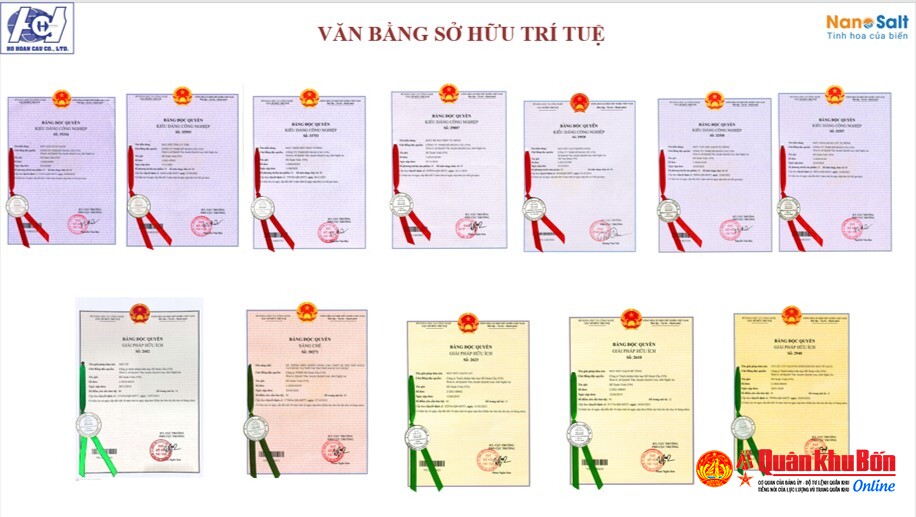 Đặc biệt, sáng kiến công nghệ muối kết tinh mới NANOSALT do Giám đốc Hồ Xuân Vinh và vợ cùng đối tác thực hiện từ nước muối nhỉ, đã giúp ngành muối Việt Nam có thêm một giải pháp hiệu quả để sản xuất muối biển và tận thu được các nguyên liệu lãng phí trên cánh đồng muối. Nhờ công nghệ muối mới, công ty đã sản xuất được 22 sản phẩm nhiều khoáng biển làm nguyên liệu cho ngành dược, y tế có độ tinh khiết cao, 4 sản phẩm muối dinh dưỡng, muối tôm, bột canh nấm bào ngư, muối chua cay được công nhận OCOP 3 sao. Công nghệ đã được cấp 05 bằng sáng chế và được Bộ trưởng Bộ Nông nghiệp gửi thư khen. Dù mới tung ra thị trường hai năm nay, Công ty đã có hàng chục đại lý trên khắp cả nước, được người tiêu dùng đón nhận.