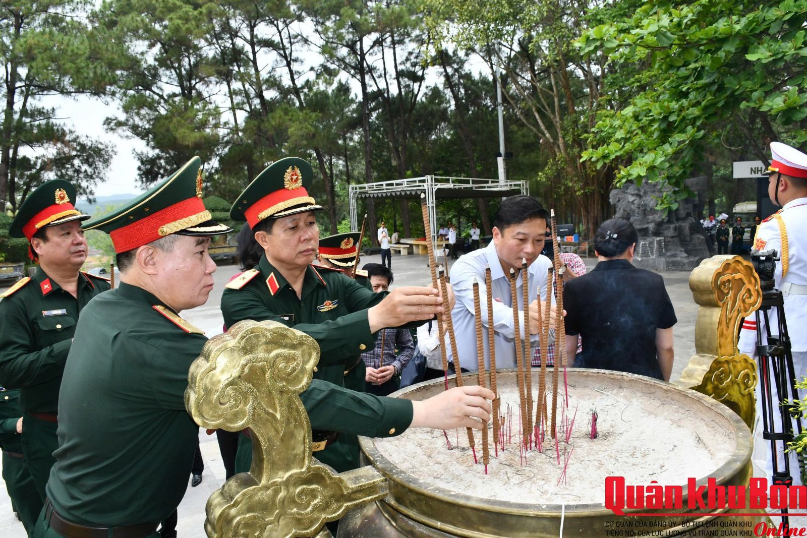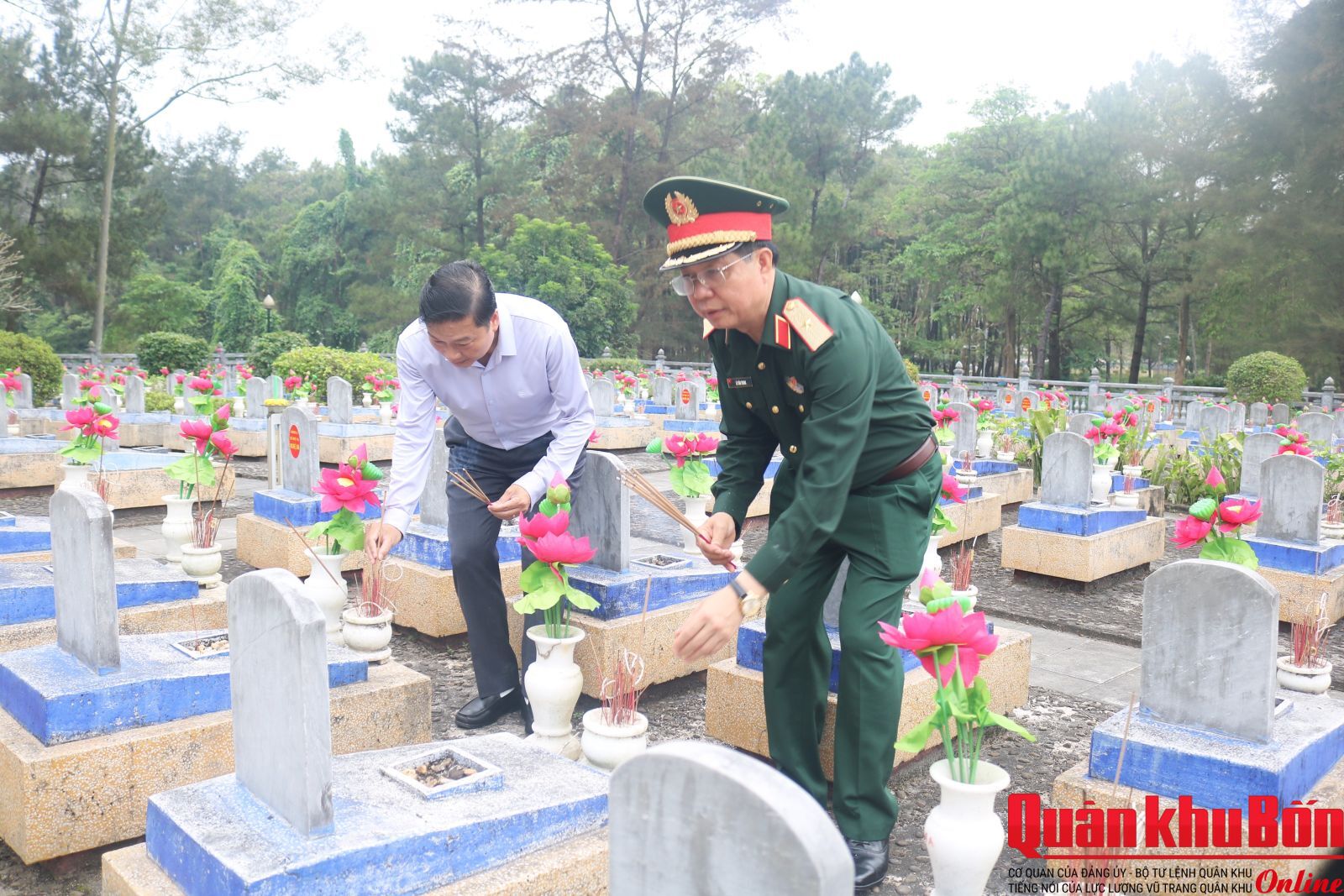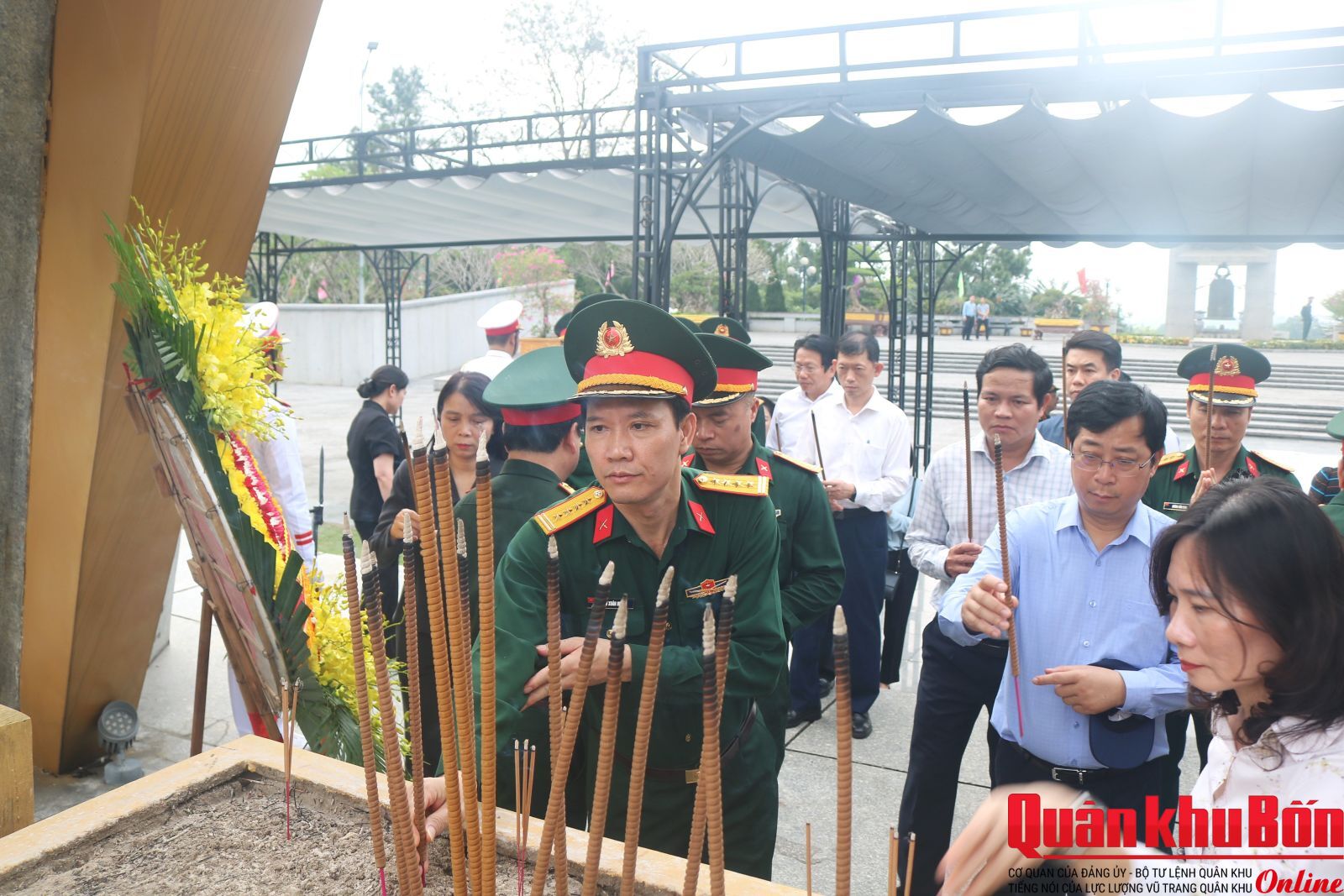 Trong không khí trang nghiêm, thành kính, đoàn công tác đã đặt vòng hoa, dâng hương, dành phút mặc niệm tưởng nhớ công lao to lớn của các Anh hùng liệt sĩ đã anh dũng hy sinh vì độc lập, tự do của Tổ quốc, vì hạnh phúc của Nhân dân. Trước anh linh các Anh hùng liệt sĩ, đoàn công tác nguyện hứa, tiếp tục phát huy truyền thống “Uống nước nhớ nguồn”, nêu cao tinh thần trách nhiệm trước Đảng, Nhà nước và nhân dân, quyết tâm lãnh đạo, chỉ đạo, triển khai thực hiện và hoàn thành xuất sắc chiến dịch “Chiến dịch 500 ngày đêm đẩy mạnh tìm kiếm, quy tập và xác định danh tính hài cốt liệt sĩ”.