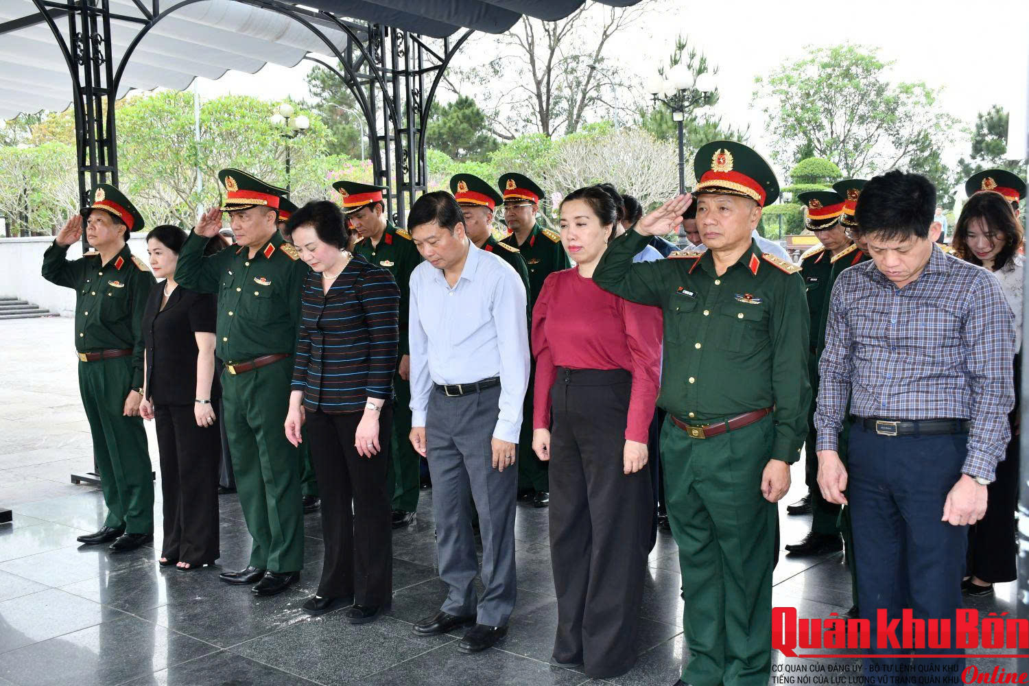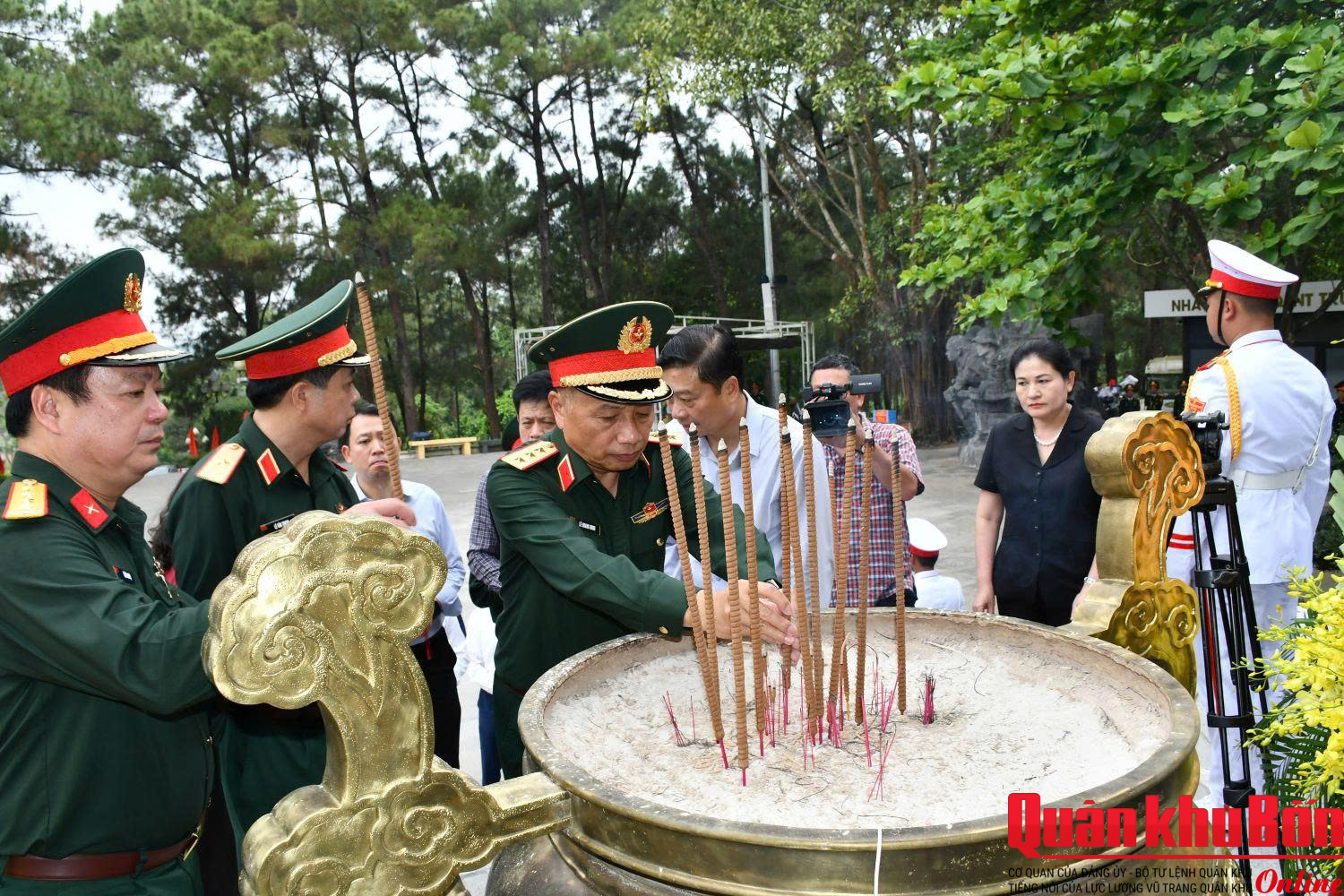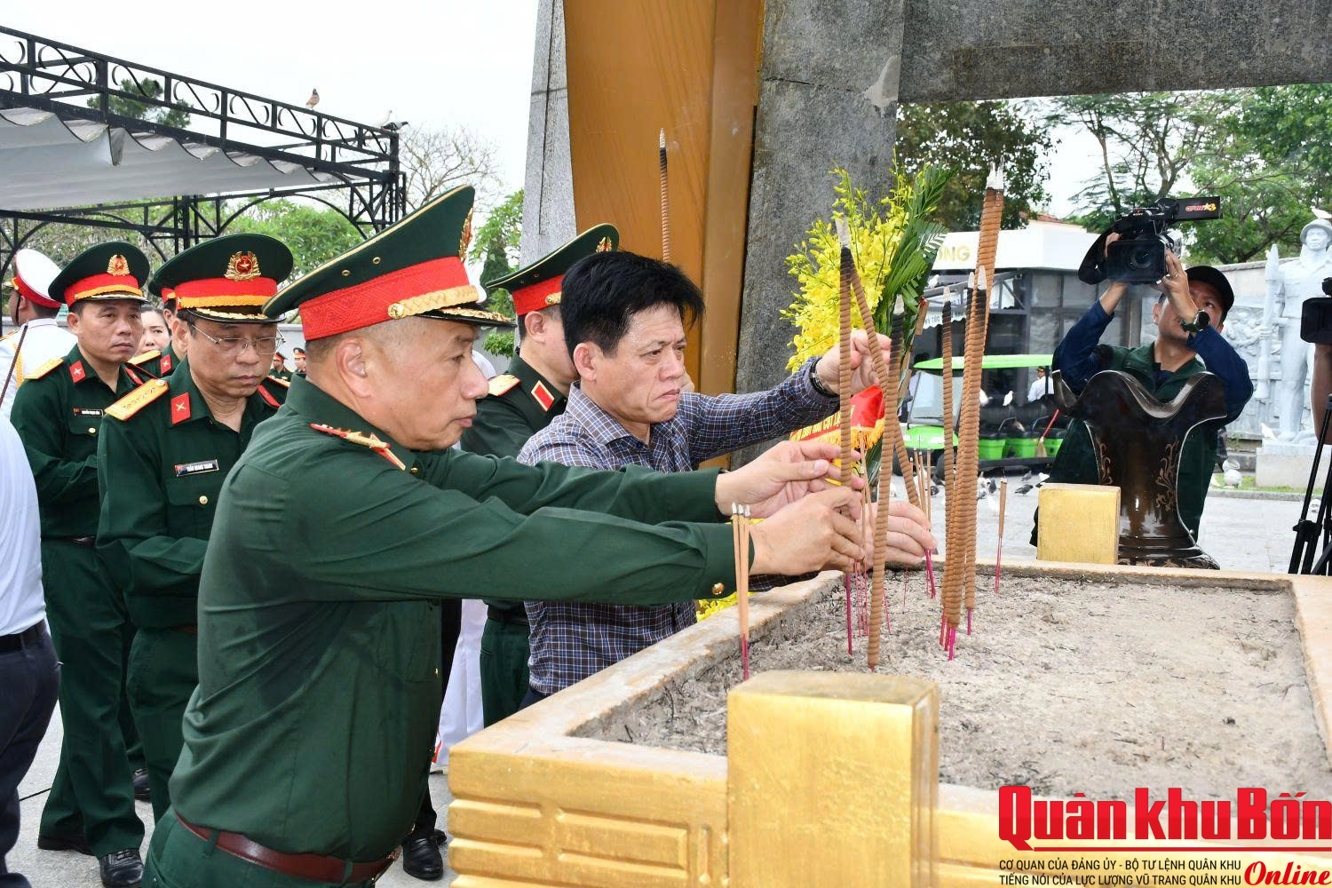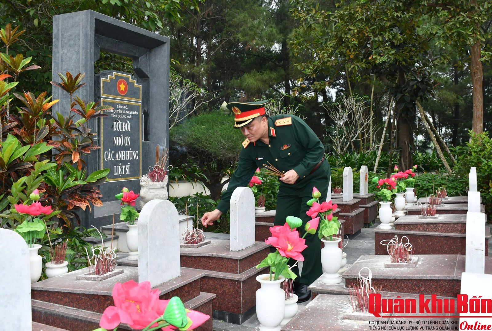 Trong không khí trang nghiêm, thành kính, đoàn công tác đã đặt vòng hoa, dâng hương, dành phút mặc niệm tưởng nhớ công lao to lớn của các Anh hùng liệt sĩ đã anh dũng hy sinh vì độc lập, tự do của Tổ quốc, vì hạnh phúc của Nhân dân. Trước anh linh các Anh hùng liệt sĩ, đoàn công tác nguyện hứa, tiếp tục phát huy truyền thống “Uống nước nhớ nguồn”, nêu cao tinh thần trách nhiệm trước Đảng, Nhà nước và nhân dân, quyết tâm lãnh đạo, chỉ đạo, triển khai thực hiện và hoàn thành xuất sắc chiến dịch “Chiến dịch 500 ngày đêm đẩy mạnh tìm kiếm, quy tập và xác định danh tính hài cốt liệt sĩ”.