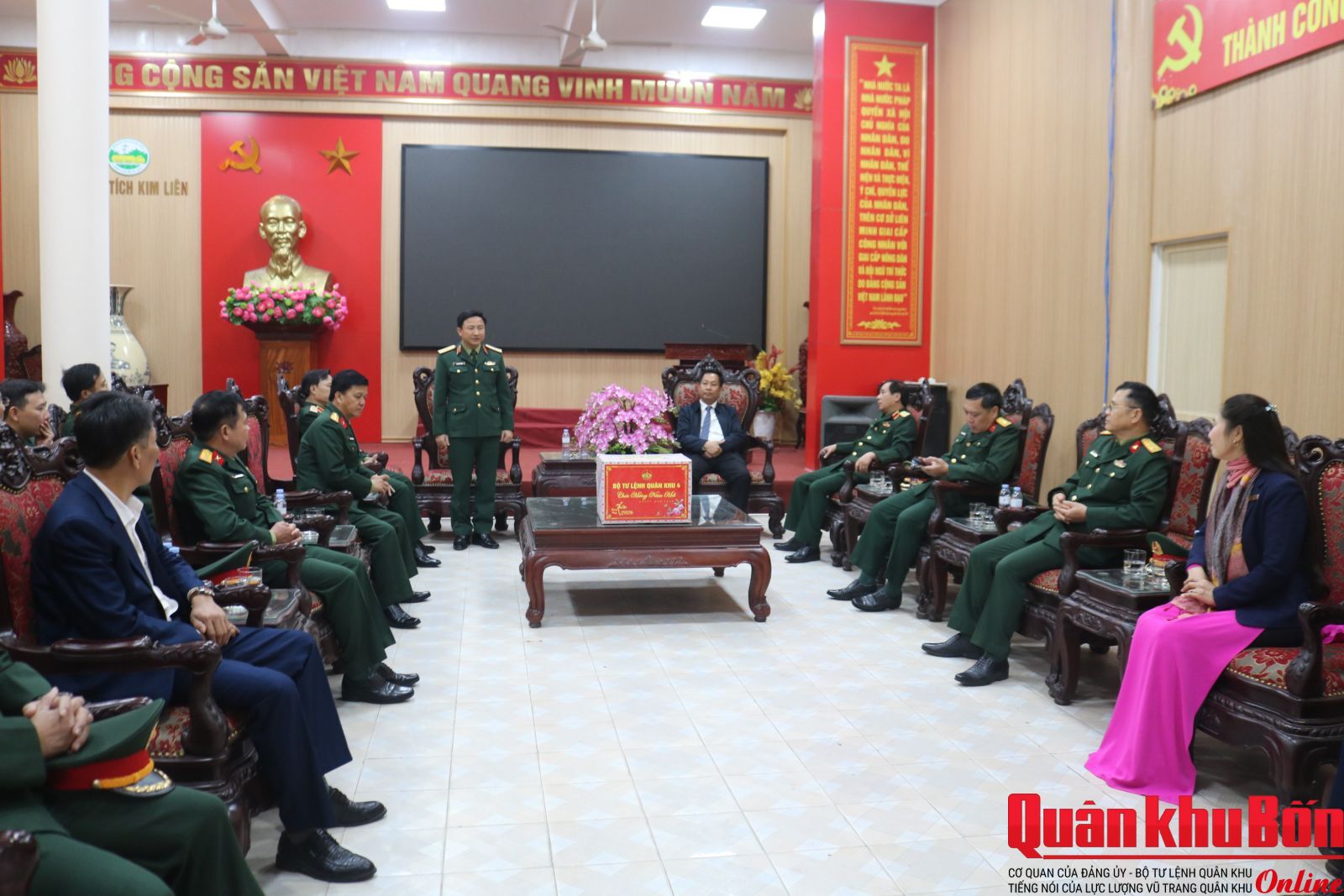 Nhân kỷ niệm 96 năm Ngày thành lập Đảng Cộng sản Việt Nam (03/2/1930 – 03/2/2026) và chuẩn bị đón Tết cổ truyền Bính Ngọ 2026, sáng 10/2/2026, Đoàn công tác Thường vụ Đảng ủy, Bộ Tư lệnh Quân khu 4 do Thiếu tướng Đoàn Xuân Bường, Ủy viên Ban Chấp hành Trung ương Đảng, Bí thư Đảng ủy, Chính ủy Quân khu làm trưởng đoàn đã dâng hoa, dâng hương tưởng niệm Chủ tịch Hồ Chí Minh tại Khu Di tích Quốc gia đặc biệt Kim Liên (xã Kim Liên) và dâng hương tại Nghĩa trang Liệt sĩ thành phố Vinh (phường Vinh Hưng), tỉnh Nghệ An. Tham gia Đoàn công tác có Thiếu tướng Lê Hồng Nhân, Ủy viên Ban Thường vụ Đảng ủy, Phó Tư lệnh, Tham mưu trưởng Quân khu; Thiếu tướng Phạm Văn Đông, Ủy viên Ban Thường vụ Đảng ủy, Chủ nhiệm Chính trị Quân khu.