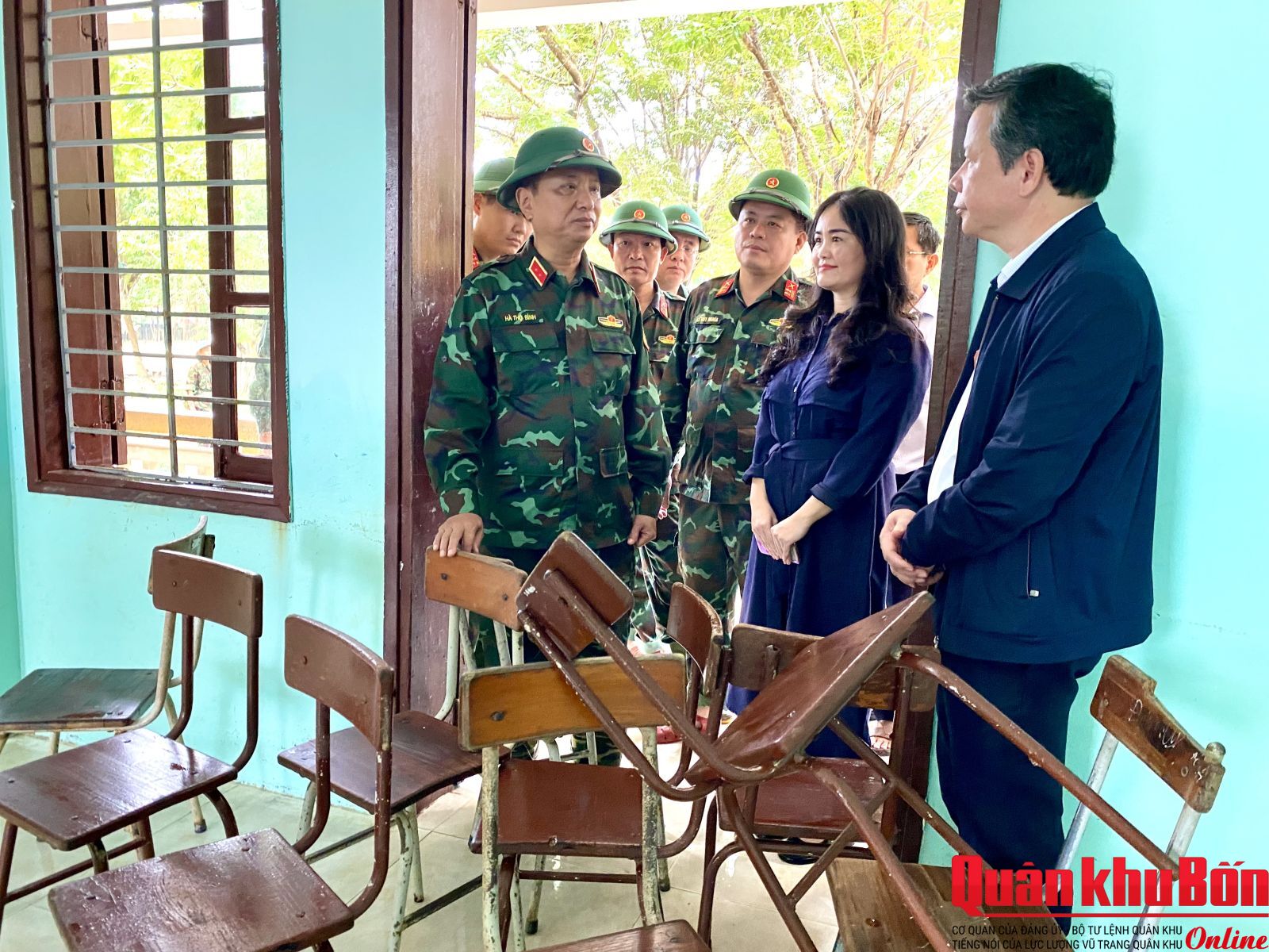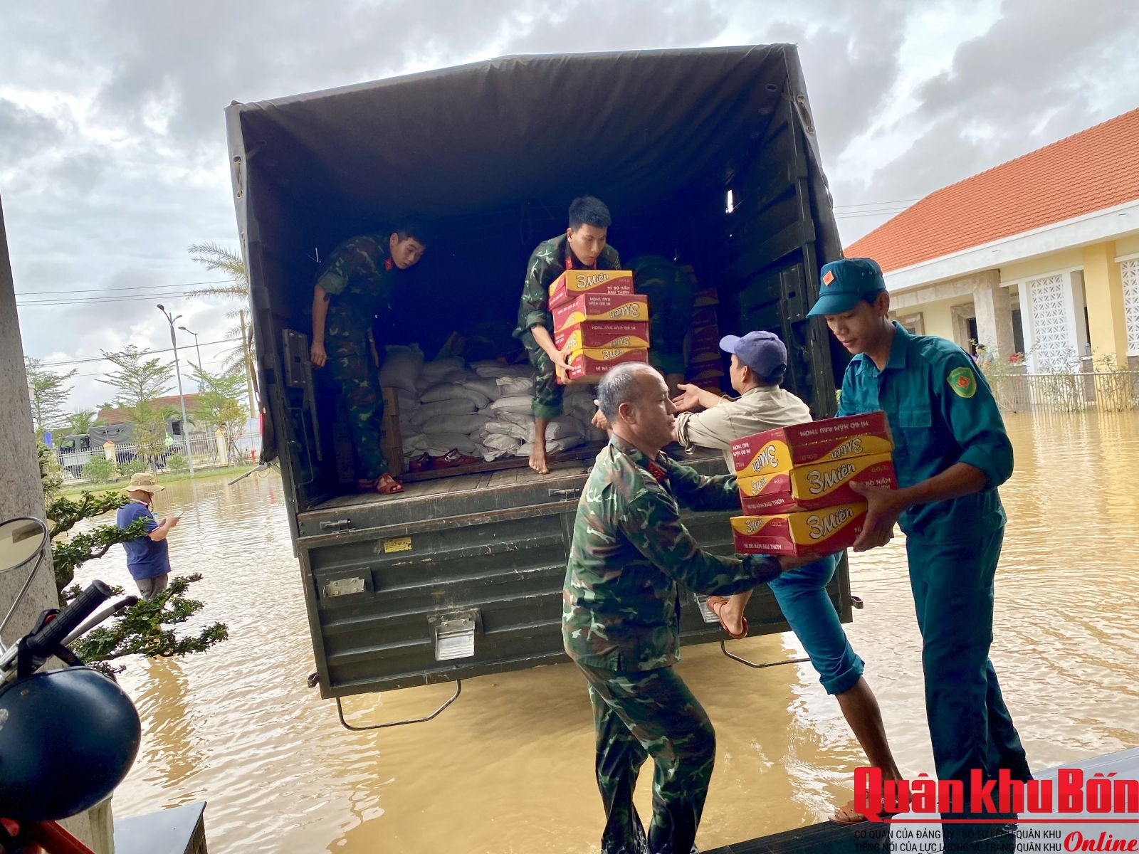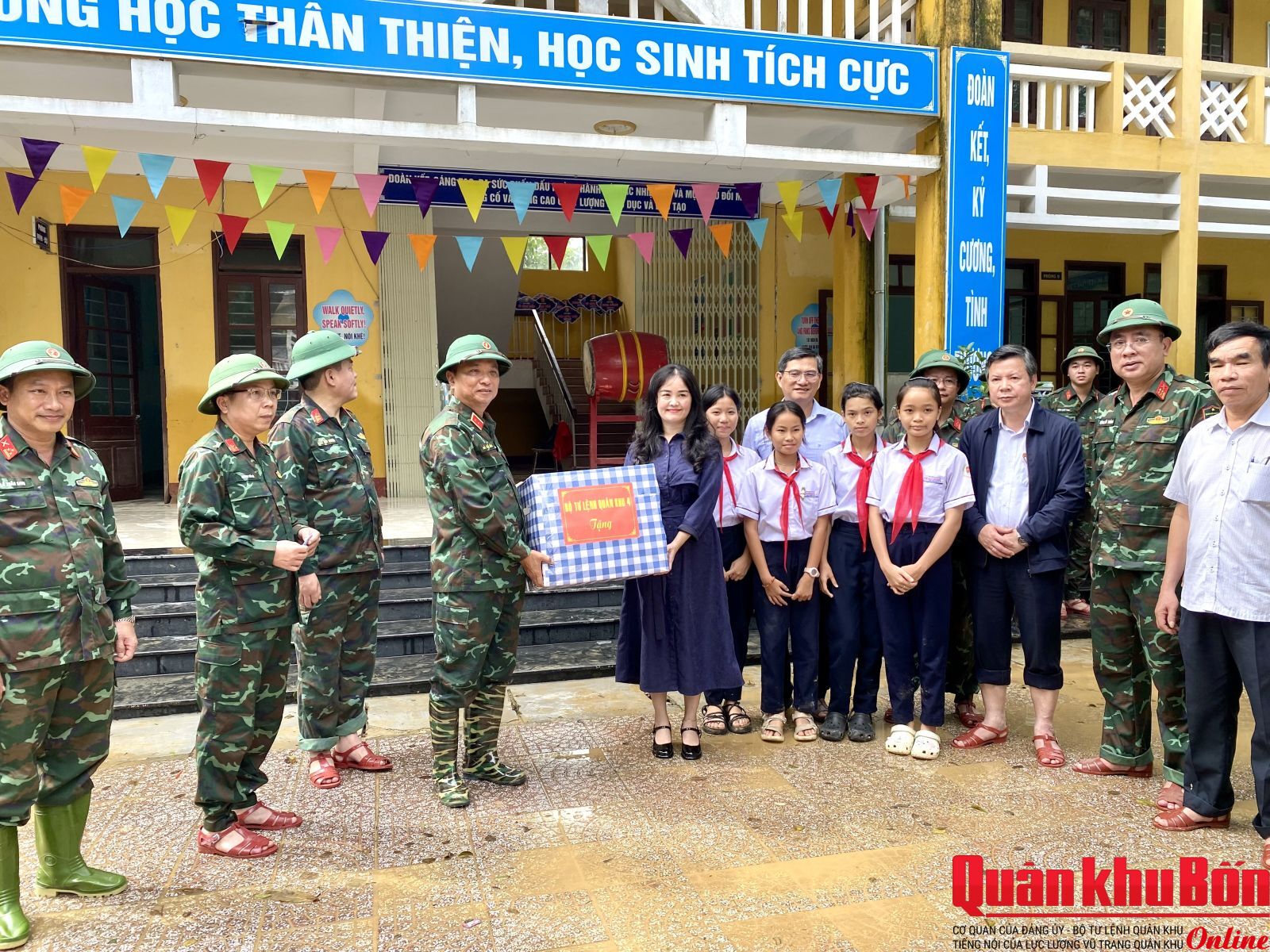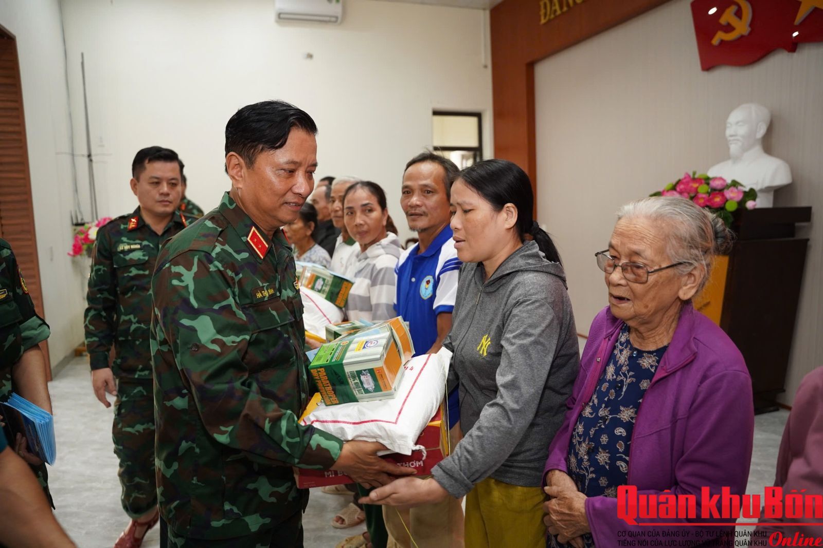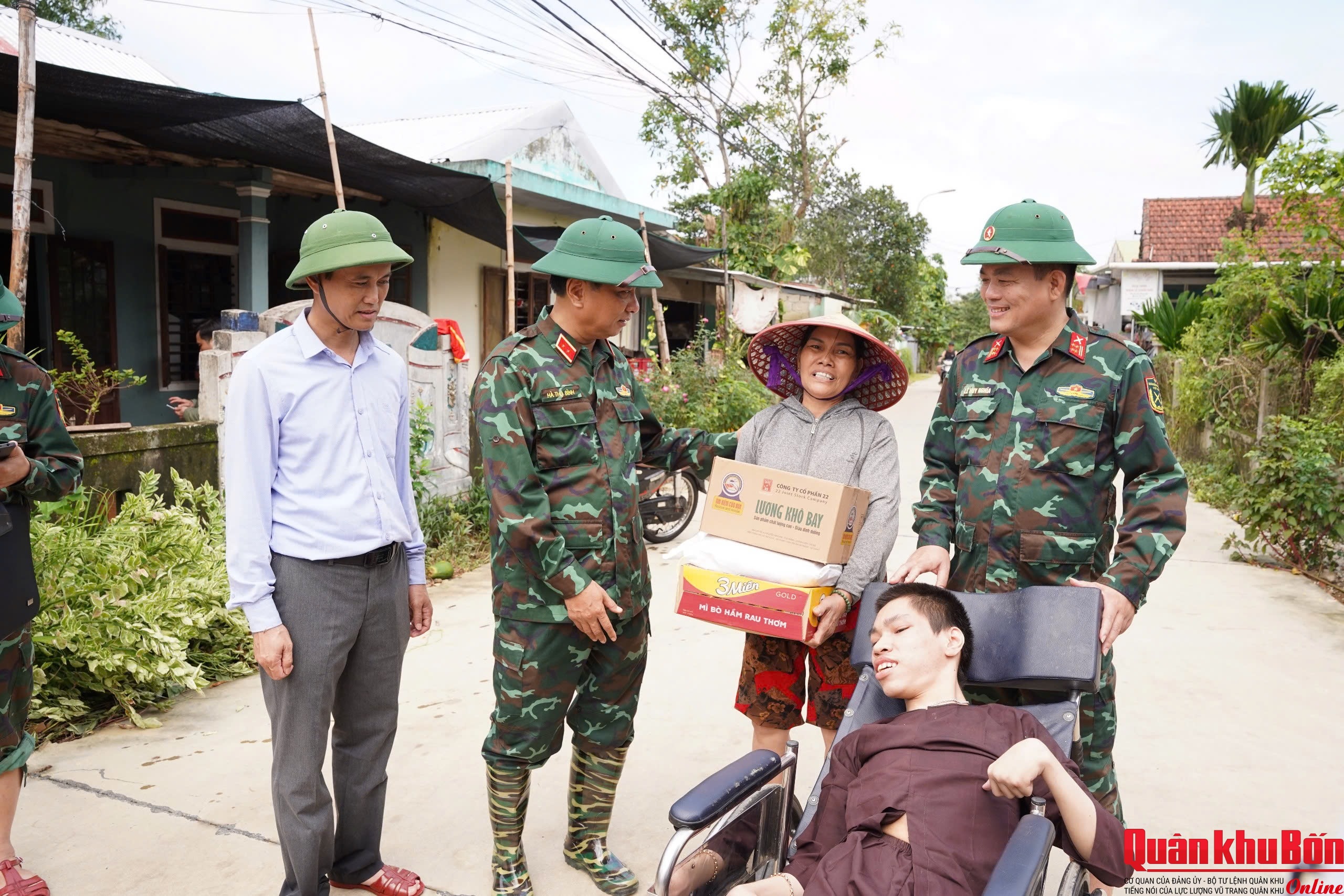 Chia sẻ với khó khăn của nhân dân địa phương, Trung tướng Hà Thọ Bình, Tư lệnh Quân khu 4 đã trực tiếp đến thăm hỏi, động viên và trao quà hỗ trợ cho các hộ gia đình chính sách, hộ neo đơn, hộ có hoàn cảnh đặc biệt khó khăn. Đoàn công tác Quân khu 4 đã trao tặng 2,5 tấn gạo, 5 tạ lương khô, 250 thùng mì tôm cùng nhiều nhu yếu phẩm thiết yếu và tiền mặt giúp bà con sớm ổn định cuộc sống, khắc phục hậu quả sau mưa lũ.