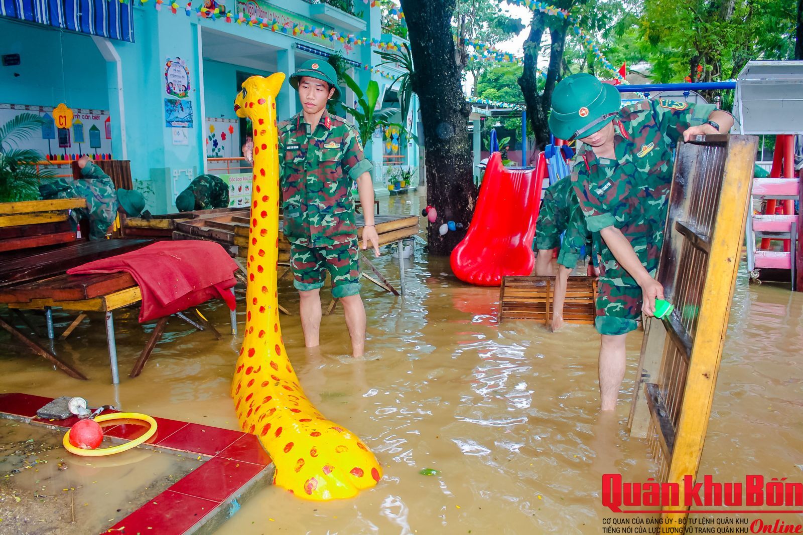 Sau nhiều ngày mưa lớn kéo dài gây ngập sâu trên diện rộng, đến ngày 4/11/2025, khi nước lũ trên địa bàn thành phố Huế bắt đầu rút, Quân khu 4 đã chỉ đạo các đơn vị trên địa bàn thành phố huy động tối đa lực lượng, phương tiện tham gia giúp Nhân dân khắc phục hậu quả thiên tai, sớm ổn định cuộc sống.
