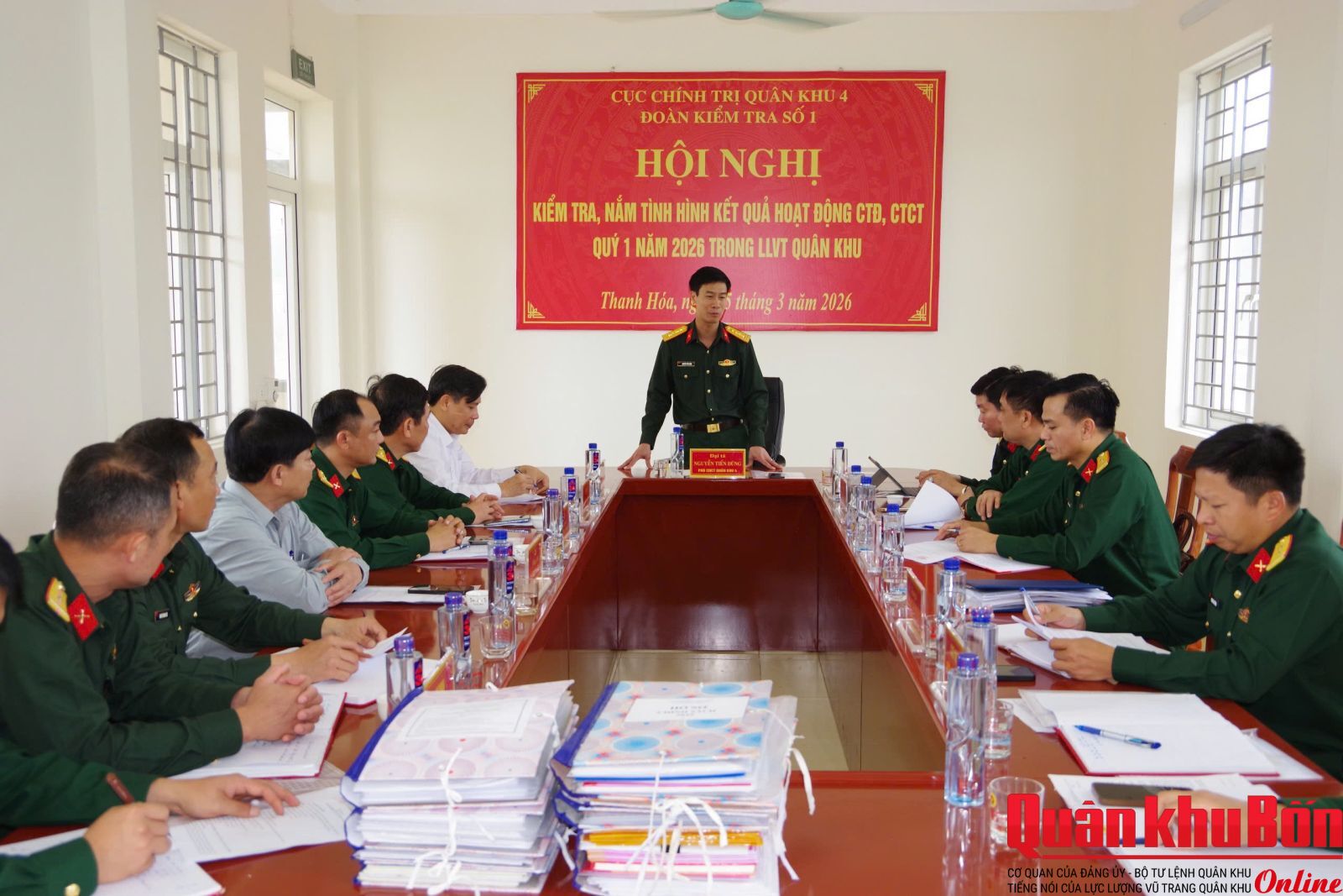 Ngày 25/3/2026, đoàn kiểm tra số 01 của Cục Chính trị Quân khu 4 do Đại tá Nguyễn Tiến Dũng, Phó Chủ nhiệm Chính trị Quân khu làm trưởng đoàn đã kiểm tra công tác Đảng, công tác chính trị (CTĐ, CTCT) tại Ban Chỉ huy phòng thủ Khu vực 1, 2 và các xã trên địa bàn thuộc Bộ Chỉ huy Quân sự (CHQS) tỉnh Thanh Hóa.