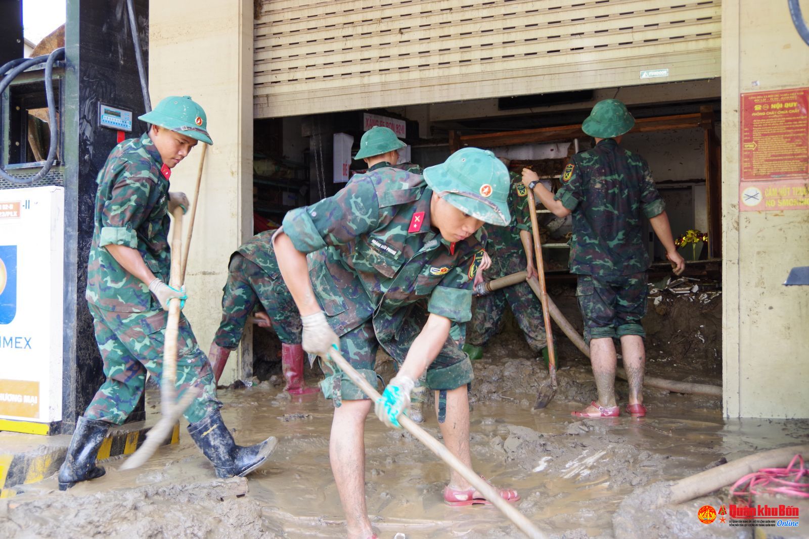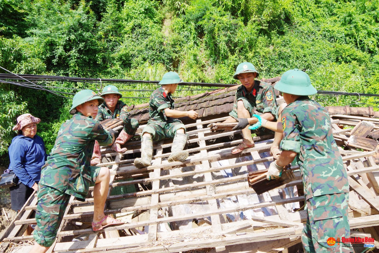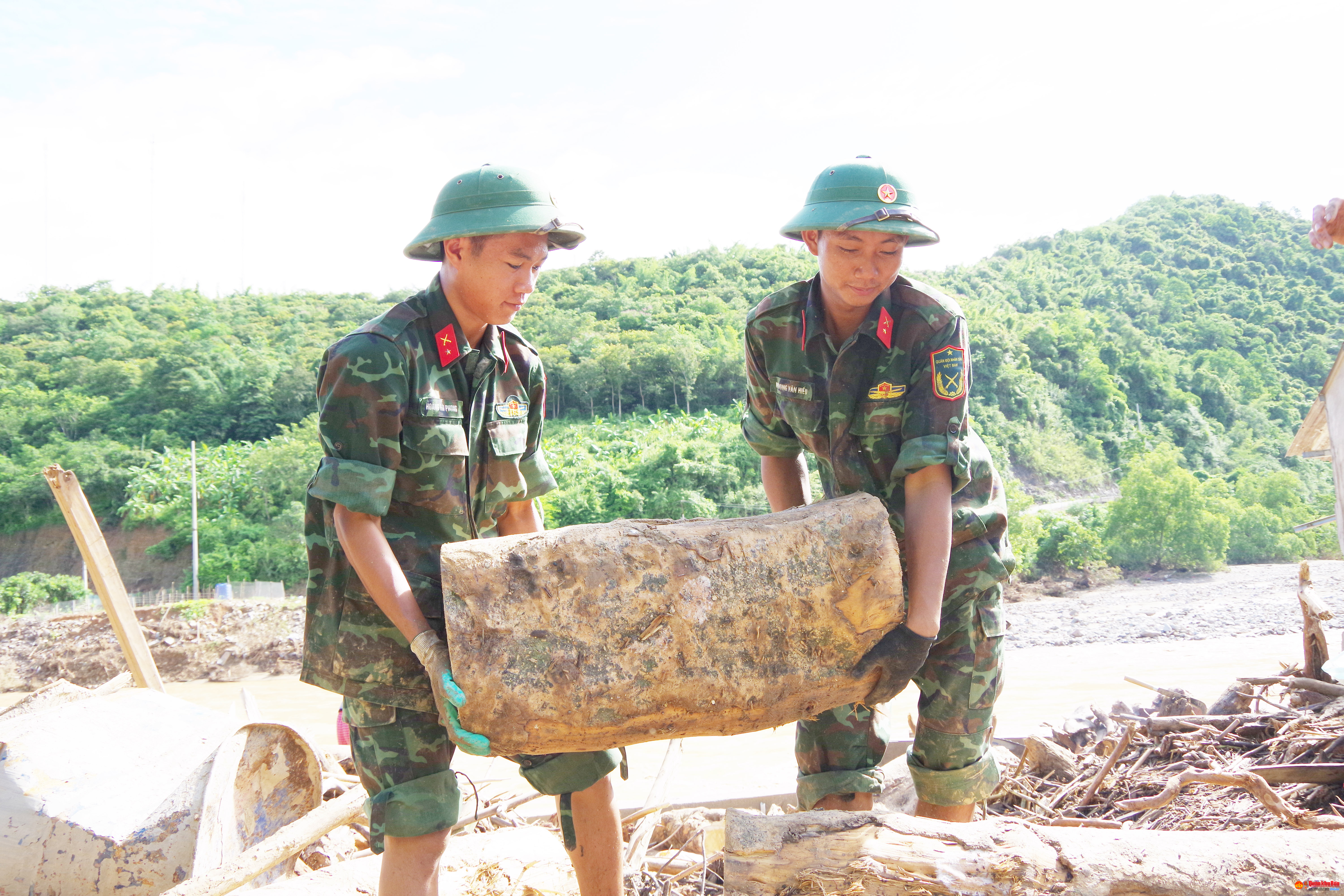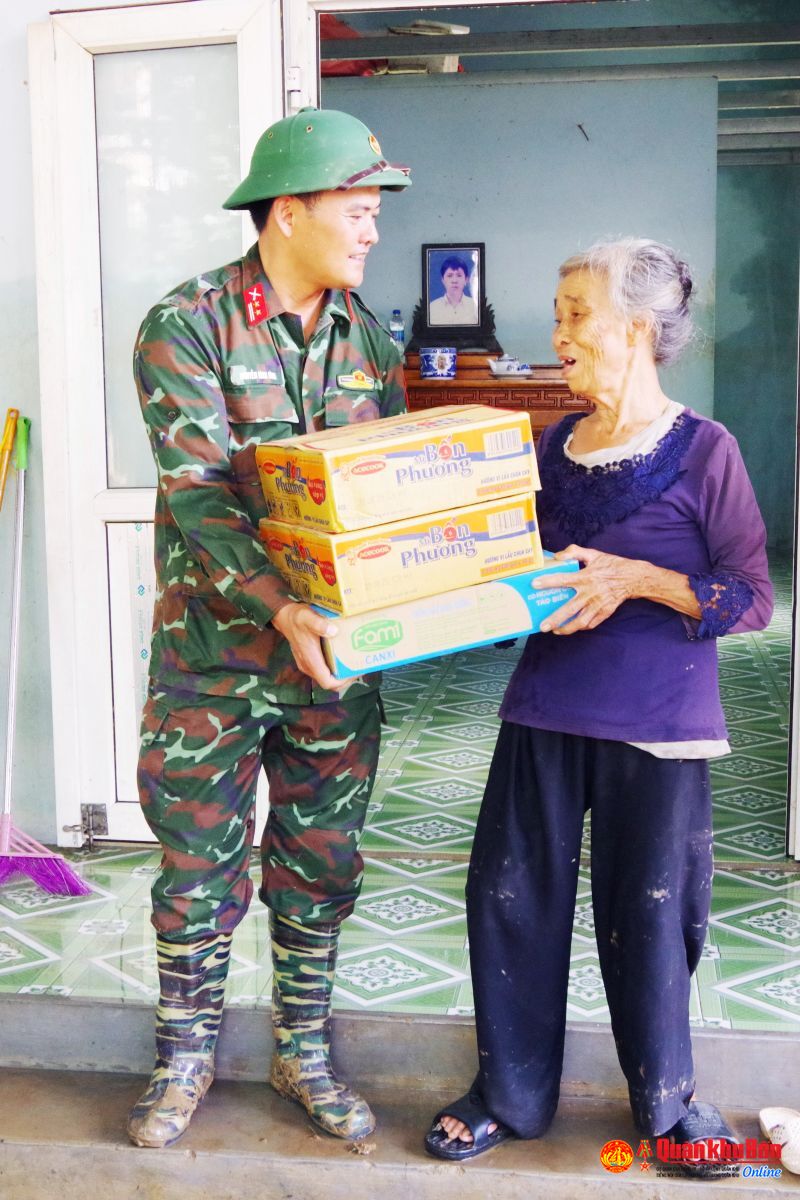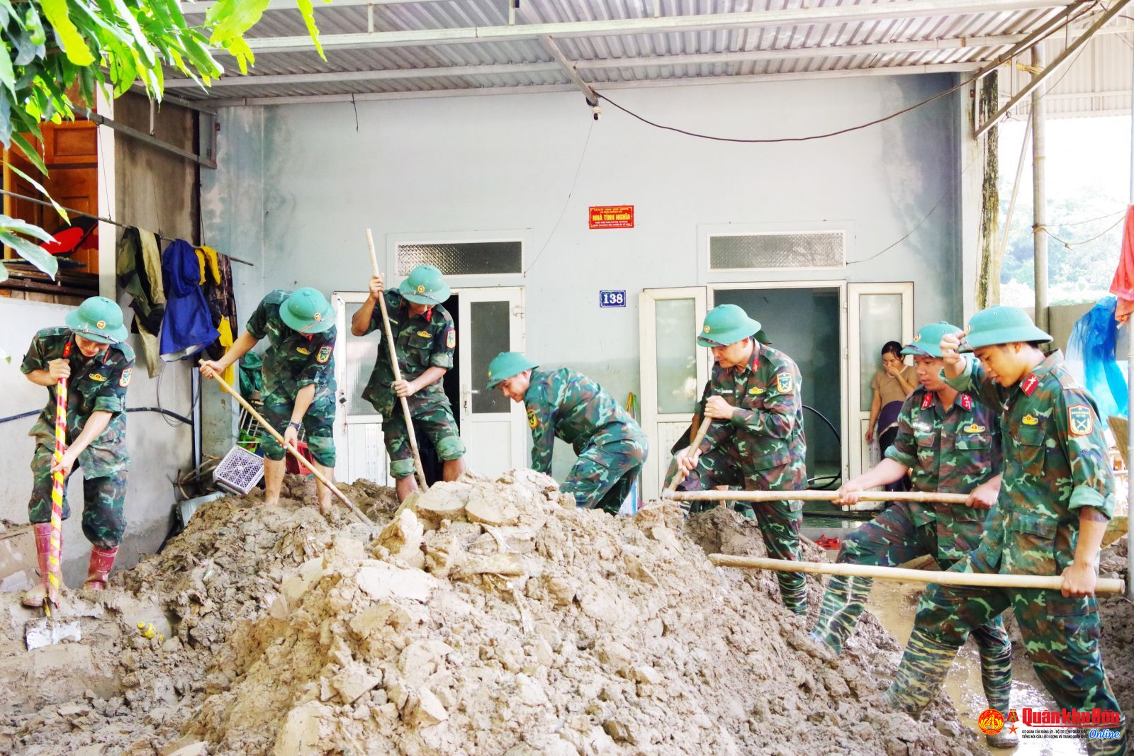 Tại các điểm ngập sâu, chia cắt kéo dài, bộ đội và dân quân ngày đêm bám địa bàn, tiếp tục giúp người dân di dời tài sản, vệ sinh môi trường, dựng lại nhà cửa, sửa chữa trường học và các công trình dân sinh.