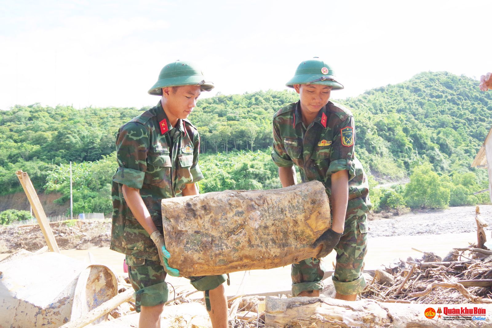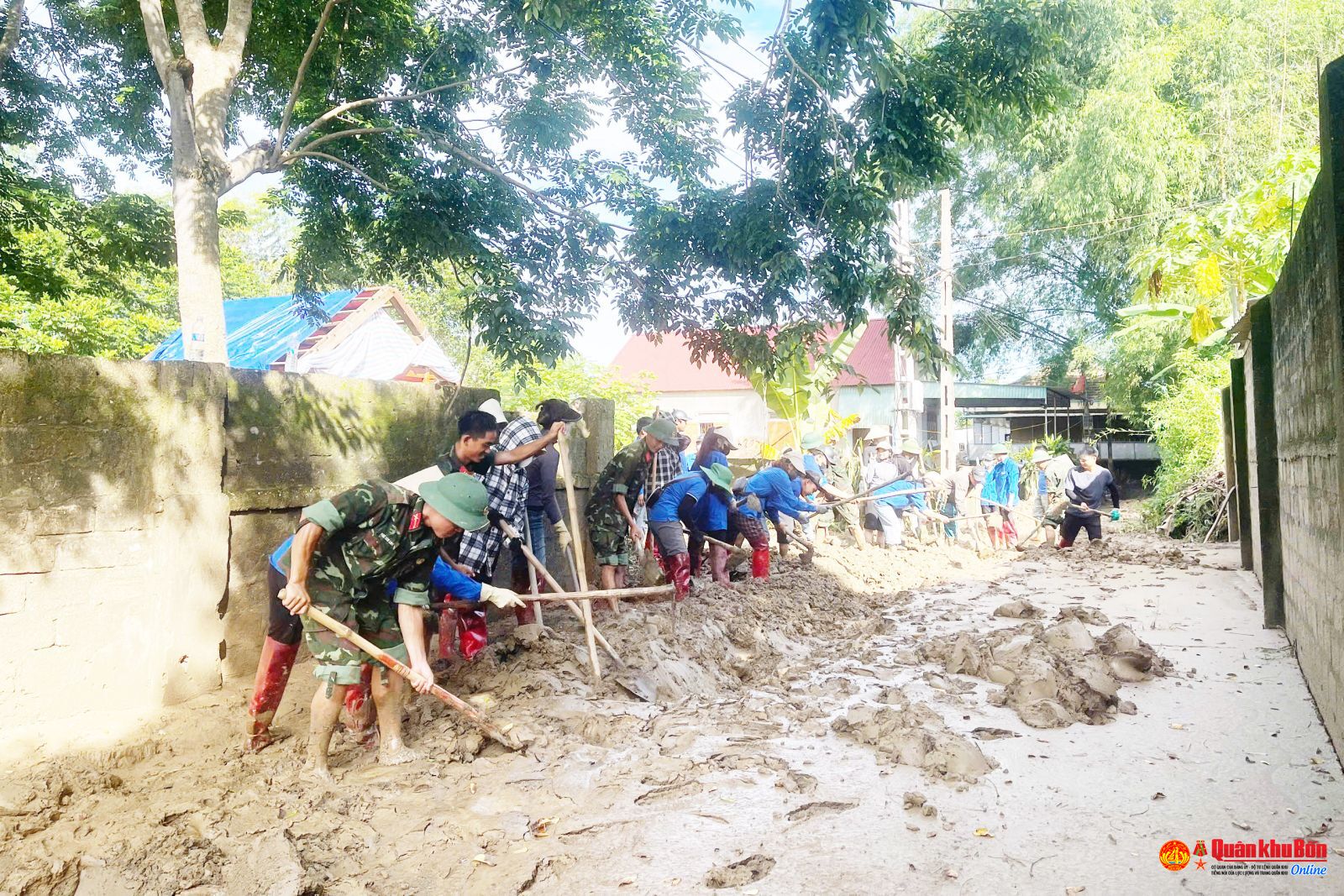 Đặc biệt, các đơn vị chủ lực như Trung đoàn 1, Trung đoàn 335 (Sư đoàn 324); Trung đoàn 764 và lực lượng Phòng thủ khu vực 4 - Tương Dương (Bộ CHQS tỉnh Nghệ An) đã huy động tối đa nhân lực, phương tiện, có mặt kịp thời tại các điểm nóng của xã Con Cuông, Mường Xén, Tương Dương - những địa phương chịu ảnh hưởng nặng nề sau hoàn lưu bão số 3 giúp dân khắc phục hậu quả.