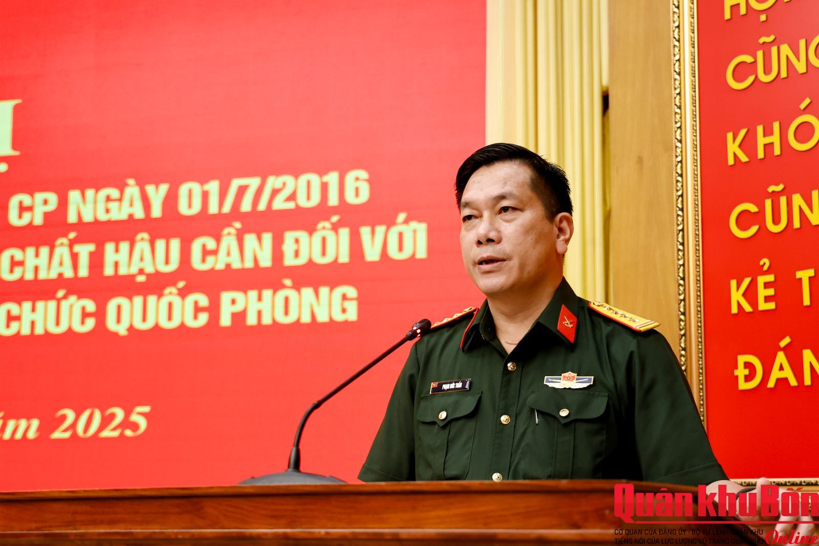 Báo cáo tại hội nghị nêu rõ: Thời gian qua, Đảng ủy, Bộ Tư lệnh Quân khu và cấp ủy, chỉ huy, cơ quan hậu cần các cấp đã quán triệt, thực hiện nghiêm túc các quy định của Chính phủ, Bộ Quốc phòng về tiêu chuẩn vật chất hậu cần; chủ động tham mưu, tổ chức thực hiện toàn diện, đồng bộ các mặt công tác bảo đảm đời sống bộ đội. Các cơ quan, đơn vị duy trì hiệu quả công tác tăng gia sản xuất, chăn nuôi, khai thác nguồn tại chỗ, bảo đảm tốt tiêu chuẩn ăn, ở, mặc, quân trang, chăm sóc sức khỏe, điện nước sinh hoạt cho bộ đội; hệ thống nhà ăn, nhà bếp, trạm xá, kho tàng được đầu tư, củng cố chính quy, nền nếp, đáp ứng yêu cầu nhiệm vụ huấn luyện, sẵn sàng chiến đấu.