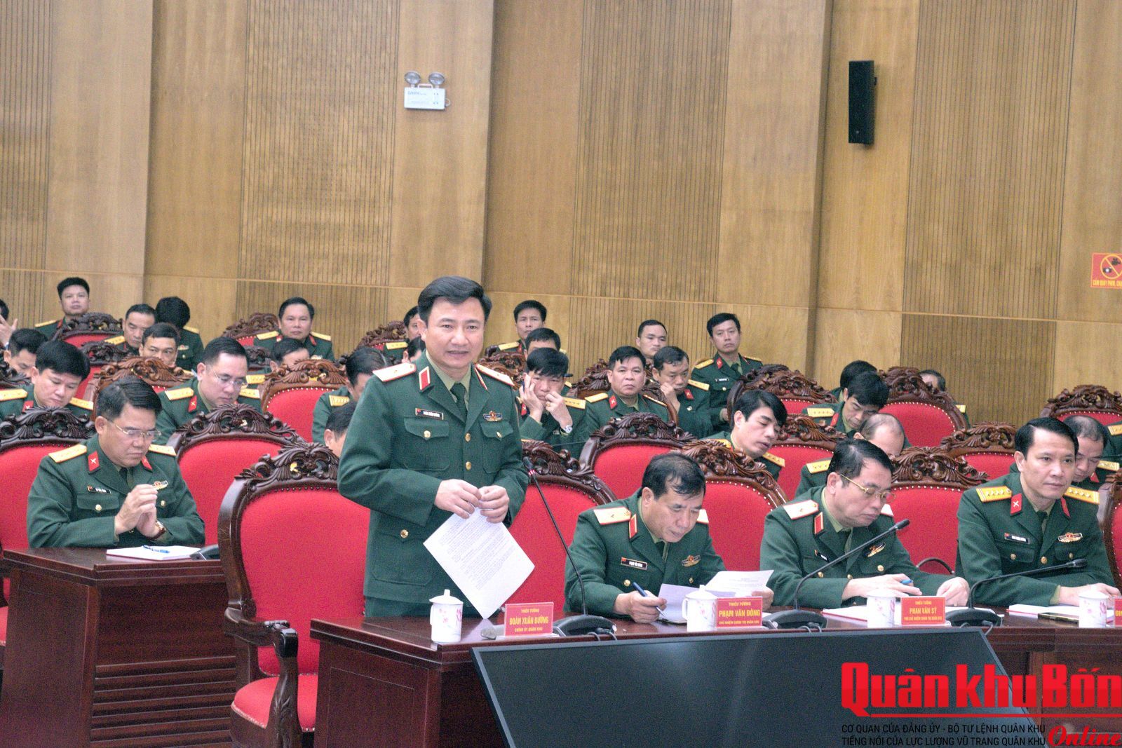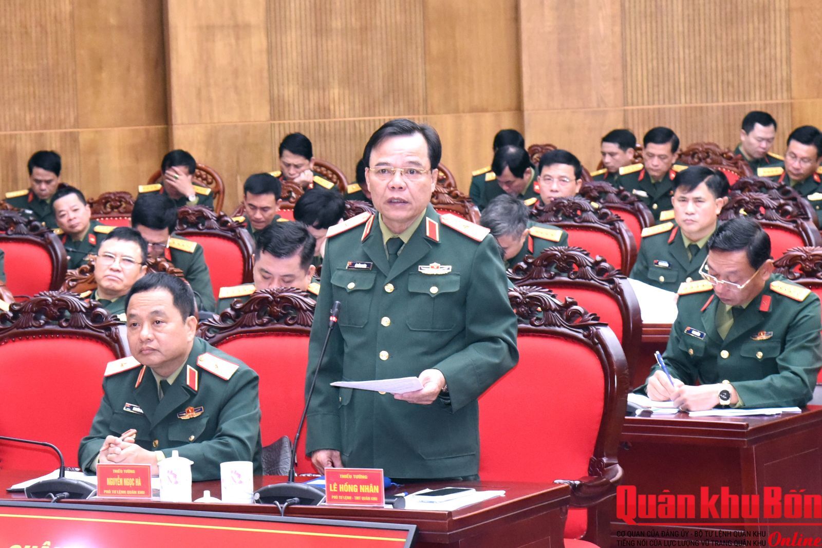 Trung tướng Hà Thọ Bình giao nhiệm vụ cho các cơ quan chuyên môn theo chức năng, nhiệm vụ tiếp tục nghiên cứu, đề xuất phương án lựa chọn nguồn cán bộ; đồng thời quan tâm bảo đảm cơ sở vật chất, nơi làm việc, nơi ăn ở, sinh hoạt cho Ban CHQS cấp xã khi thực hiện phương án tổ chức, biên chế mới, góp phần xây dựng lực lượng vũ trang Quân khu vững mạnh, đáp ứng yêu cầu nhiệm vụ trong giai đoạn hiện nay.