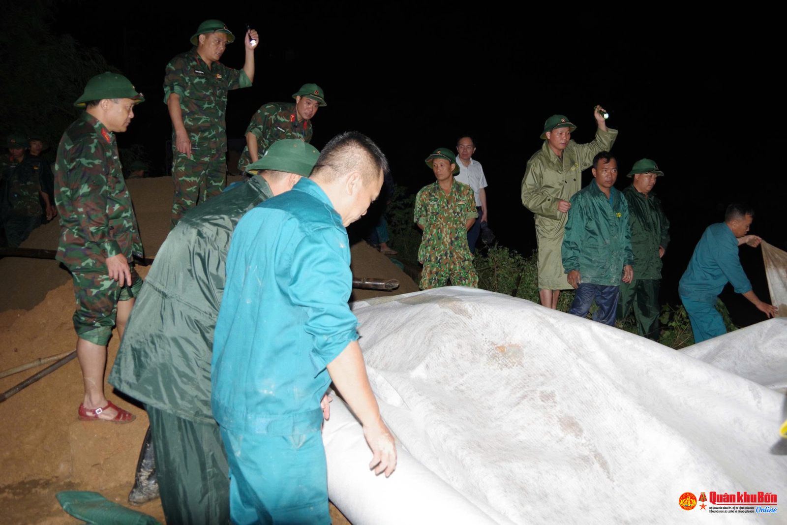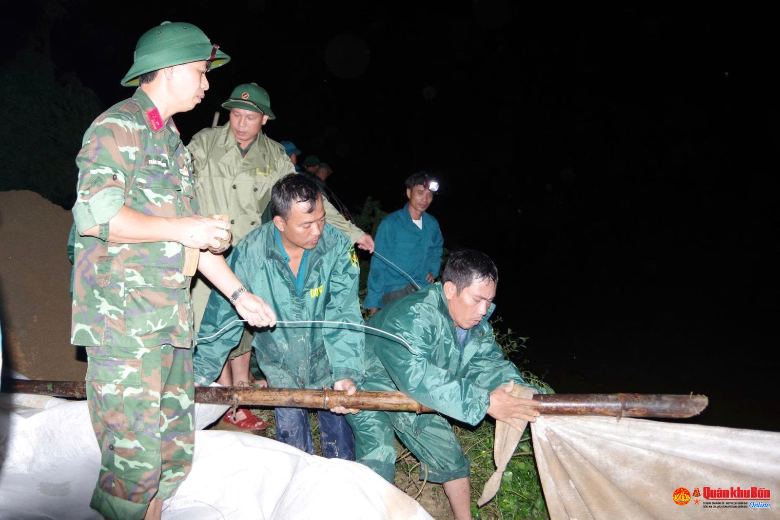 Ngay trong đêm, hàng trăm cán bộ, chiến sĩ đơn vị, lực lượng dân quân địa phương cùng bà con Nhân dân đã dầm mình trong mưa gió, căng mình đắp từng bao đất, chèn từng cọc tre, che chắn các đoạn xung yếu. Tinh thần “tất cả vì Nhân dân” lan tỏa mạnh mẽ, tạo nên khí thế khẩn trương, quyết liệt trên toàn tuyến đê.