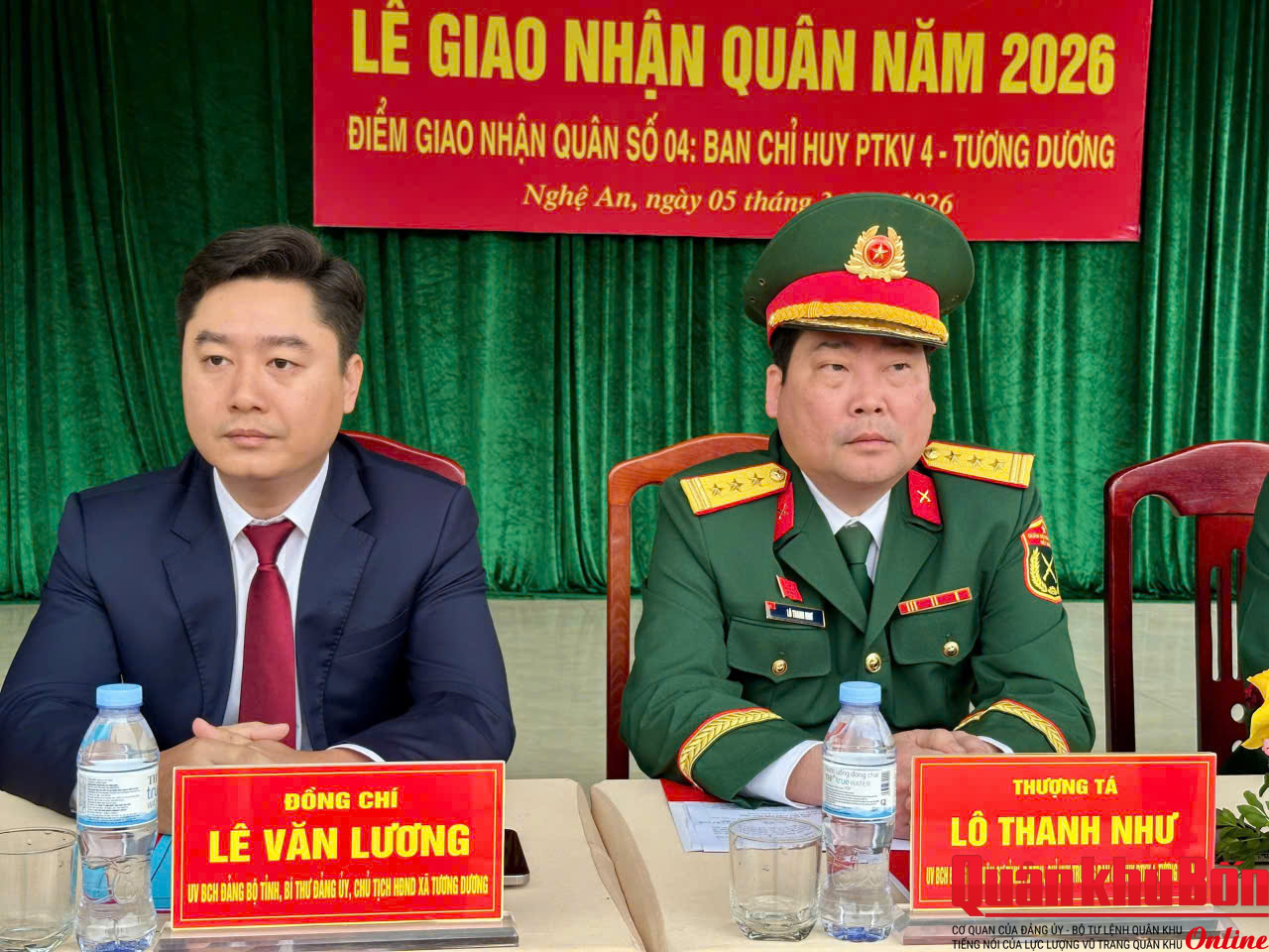 Sáng 5/3, tại xã Tương Dương (điểm giao quân số 4), Ban Chỉ huy Phòng thủ khu vực 4 - Tương Dương (Bộ CHQS tỉnh Nghệ An) tổ chức Lễ giao, nhận quân năm 2026.
