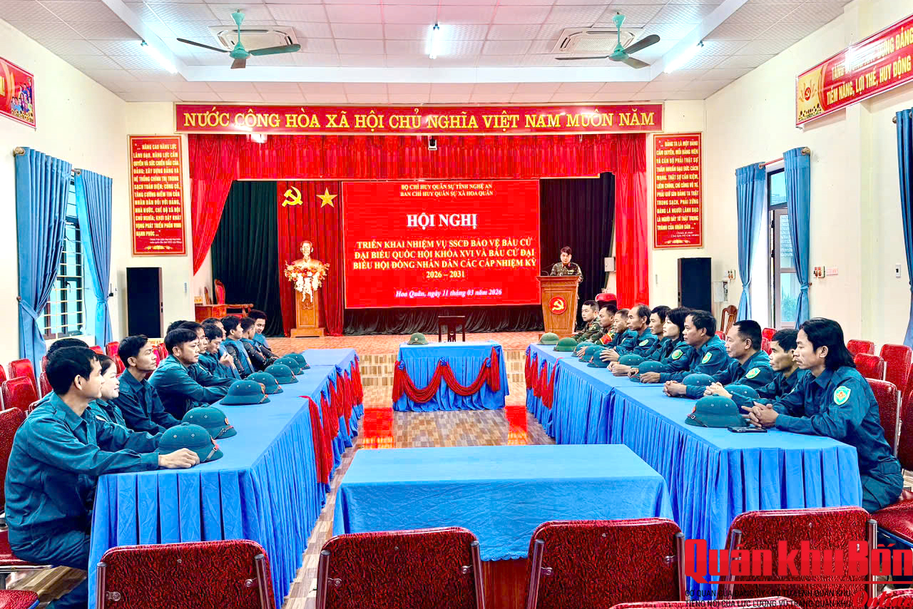 Sáng ngày 11/3/2026, Ban Chỉ huy Quân sự xã Hoa Quân (Bộ Chỉ huy Quân sự tỉnh Nghệ An) đã tổ chức luyện tập các phương án sẵn sàng chiến đấu, nhằm bảo vệ an toàn tuyệt đối cho bầu cử đại biểu Quốc hội khóa XVI và đại biểu Hội đồng nhân dân các cấp nhiệm kỳ 2026-2031.
