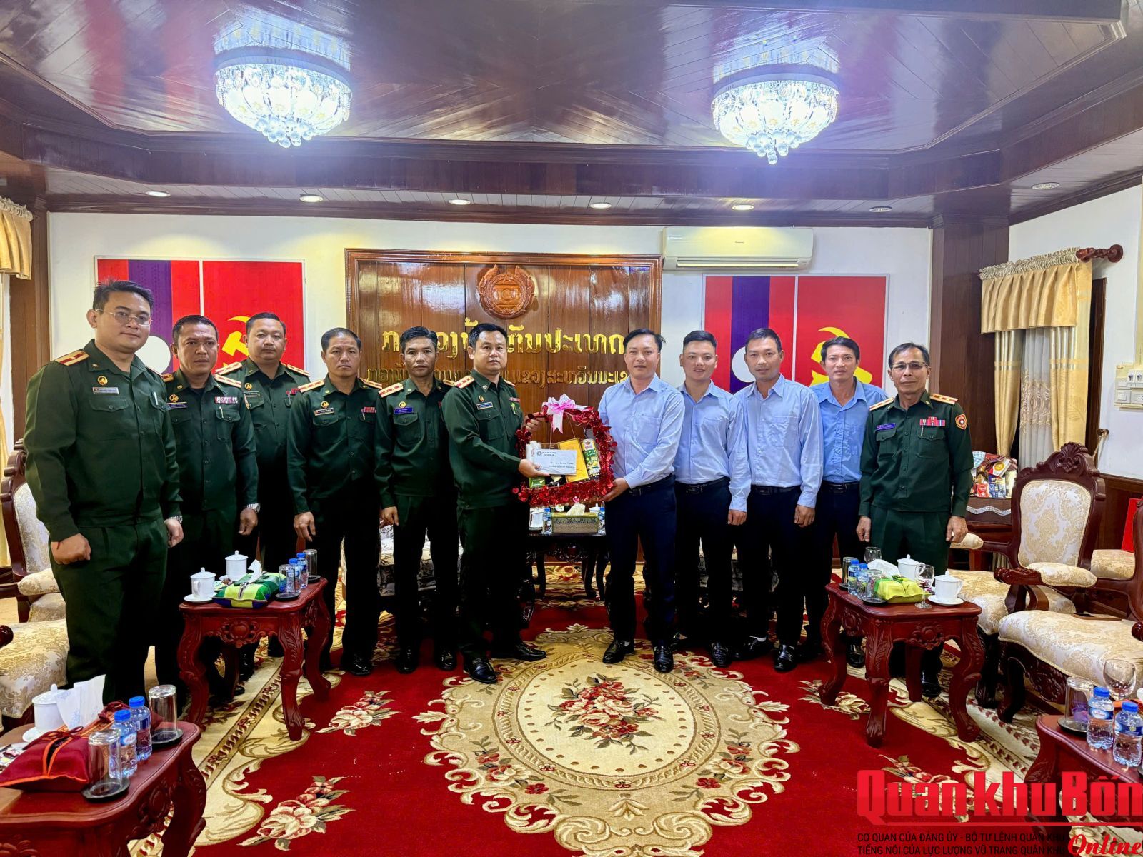 Trong không khí thắm tình đoàn kết, hữu nghị đặc biệt Việt Nam – Lào, chỉ huy Đội 584 và Đội 589 đã chuyển lời chúc mừng của Đảng ủy, thủ trưởng Bộ CHQS tỉnh Quảng Trị tới lãnh đạo, cán bộ, chiến sĩ Sư đoàn 4 và Bộ CHQS hai tỉnh Khăm Muộn, Savannakhet nhân ngày truyền thống vẻ vang của Quân đội nhân dân Lào. Đồng thời chúc lực lượng vũ trang các địa phương, đơn vị luôn đoàn kết, thống nhất, vượt qua mọi khó khăn, phấn đấu hoàn thành xuất sắc mọi nhiệm vụ được giao, góp phần xây dựng đất nước Lào hòa bình, ổn định, phát triển; quốc phòng, an ninh được giữ vững.
