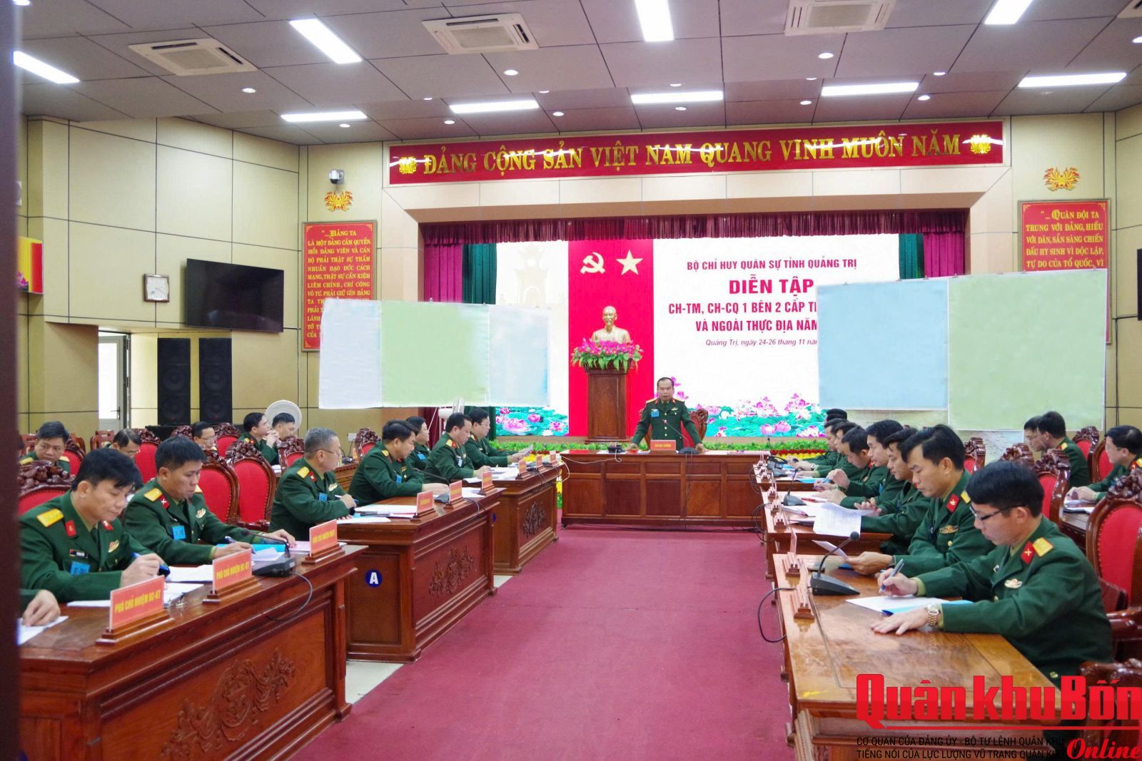 Thời gian qua, Bộ CHQS tỉnh Quảng Trị đã quán triệt nghiêm túc chỉ thị, mệnh lệnh huấn luyện – sẵn sàng chiến đấu; triển khai các nhiệm vụ cụ thể, tỉ mỉ cho từng cơ quan, đơn vị. Công tác chuẩn bị được tiến hành đầy đủ, chu đáo, đúng thời gian quy định. Bộ CHQS tỉnh đã chỉ đạo xây dựng kế hoạch, hệ thống văn kiện, nội dung tập bài; chuẩn bị Sở chỉ huy diễn tập tại vị trí thường xuyên và căn cứ chiến đấu giả định; đồng thời bảo đảm phương tiện, cơ sở vật chất phục vụ diễn tập theo đúng ý định, sát thực tiễn và phù hợp với đặc điểm địa bàn. 100% cán bộ tham gia được huấn luyện, bồi dưỡng lý luận, thống nhất nội dung trước khi bước vào diễn tập.