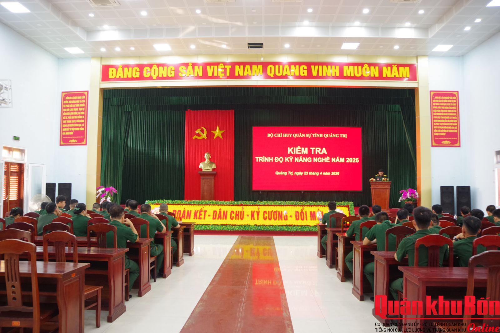 Nhằm đánh giá đúng năng lực, trình độ chuyên môn của nhân viên kỹ thuật các đơn vị, làm cơ sở đánh giá kết quả thực hiện chức trách, nhiệm vụ được giao, đồng thời là căn cứ để xét nâng bậc lương theo quy định hiện hành của Bộ Quốc phòng; đây cũng là dịp để các nhân viên được bồi dưỡng, rèn luyện tay nghề, nâng cao trình độ chuyên môn, nghiệp vụ, đáp ứng yêu cầu nhiệm vụ công tác tại đơn vị. Từ ngày 23–24/4/2026, Bộ CHQS tỉnh Quảng Trị tổ chức kiểm tra, đánh giá trình độ kỹ năng nghề cho 37 đồng chí là nhân viên chuyên môn kỹ thuật trong các cơ quan, đơn vị.