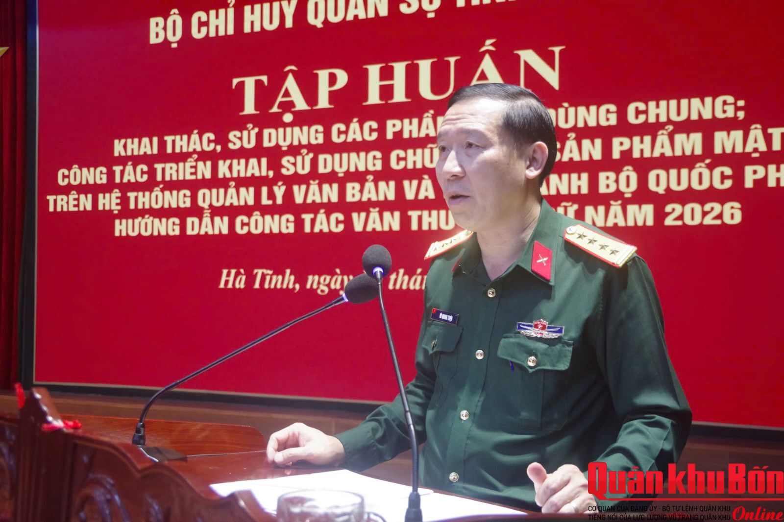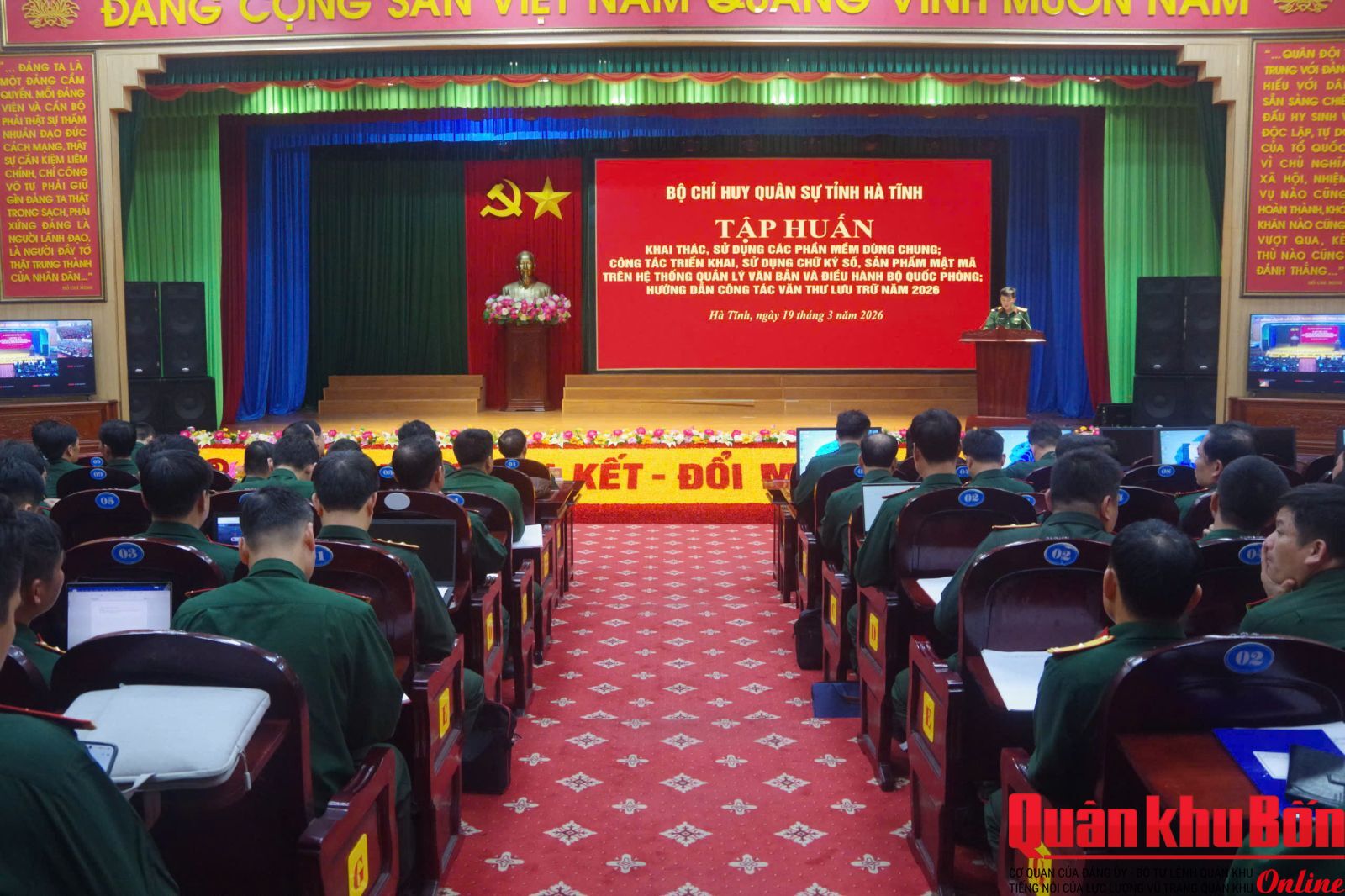 Sáng 19/3/2026, Bộ Chỉ huy Quân sự (CHQS) tỉnh Hà Tĩnh tổ chức khai mạc lớp tập huấn khai thác, sử dụng các phần mềm dùng chung trên hệ thống mạng Quân sự và hệ thống điều hành của Bộ Quốc phòng.