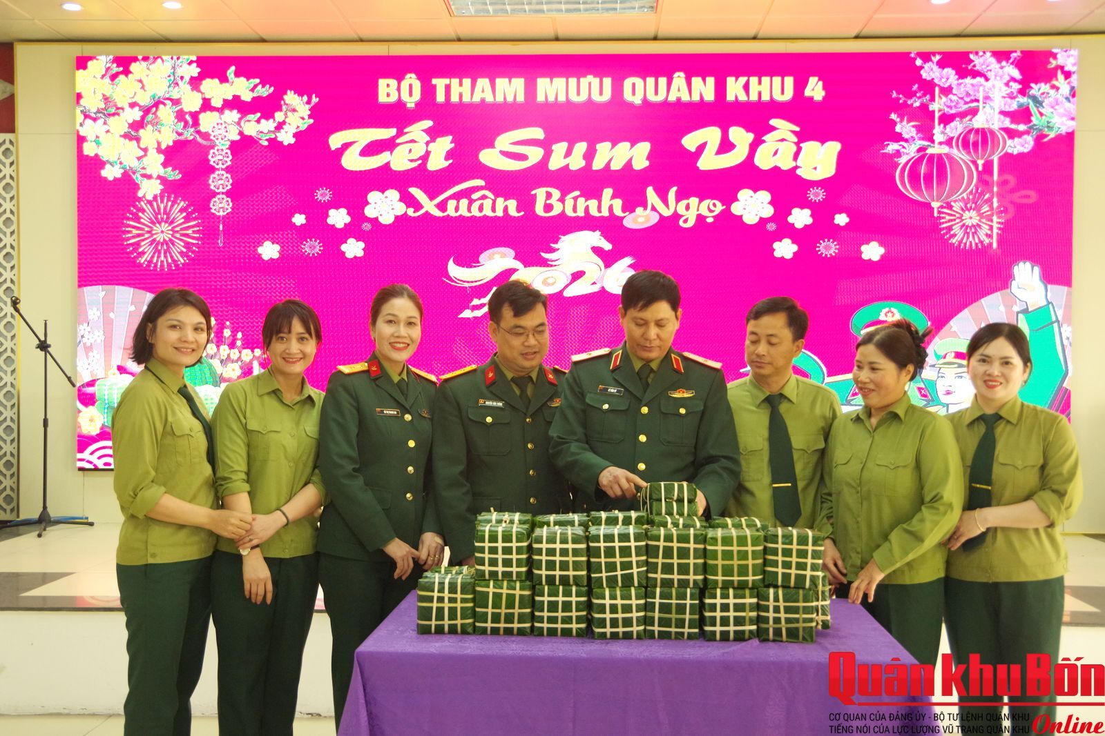 Trong không khí vui tươi, phấn khởi mừng Đảng, mừng Xuân Bính Ngọ 2026, sáng ngày 11/02/2026 (tức ngày 24 tháng Chạp), Bộ Tham mưu Quân khu 4 tổ chức hoạt động “Tết sum vầy”. Thiếu tướng Lê Văn Vỹ, Bí thư Đảng ủy Bộ Tham mưu, Phó Tham mưu trưởng Quân khu 4 đến dự, theo dõi và động viên cán bộ, chiến sĩ.