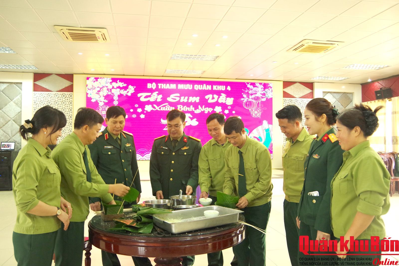 Theo đó, Bộ Tham mưu Quân khu tổ chức hoạt động gói bánh chưng xanh. Đây không chỉ là dịp giữ gìn nét đẹp truyền thống của dân tộc mà còn tạo không khí đoàn kết, ấm áp, gắn bó trong đơn vị, giúp cán bộ, chiến sĩ thêm yên tâm công tác, sẵn sàng nhận và hoàn thành tốt mọi nhiệm vụ trong dịp Tết.
