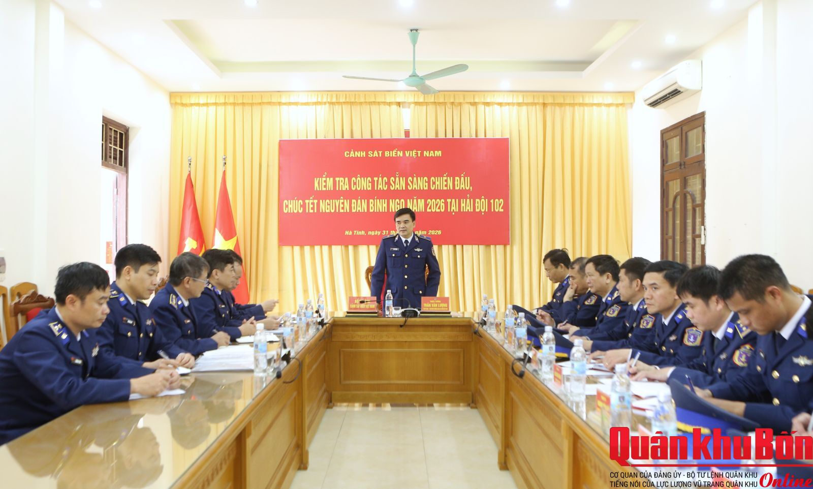 Qua kiểm tra, đoàn công tác ghi nhận, đánh giá cao công tác lãnh đạo, chỉ đạo của Đảng ủy, chỉ huy Hải đội 102 trong triển khai nhiệm vụ SSCĐ và chuẩn bị đón Tết Nguyên đán Bính Ngọ năm 2026. Đảng ủy Hải đội đã đưa nội dung SSCĐ, tổ chức Tết vào trọng tâm lãnh đạo 6 tháng đầu năm 2026; xây dựng kế hoạch, hướng dẫn cụ thể cho từng nhiệm vụ, mặt công tác, trong đó tập trung vào SSCĐ, đấu tranh phòng, chống tội phạm, vi phạm pháp luật trên biển, công tác tuyên truyền, dân vận và chính sách dịp Tết.