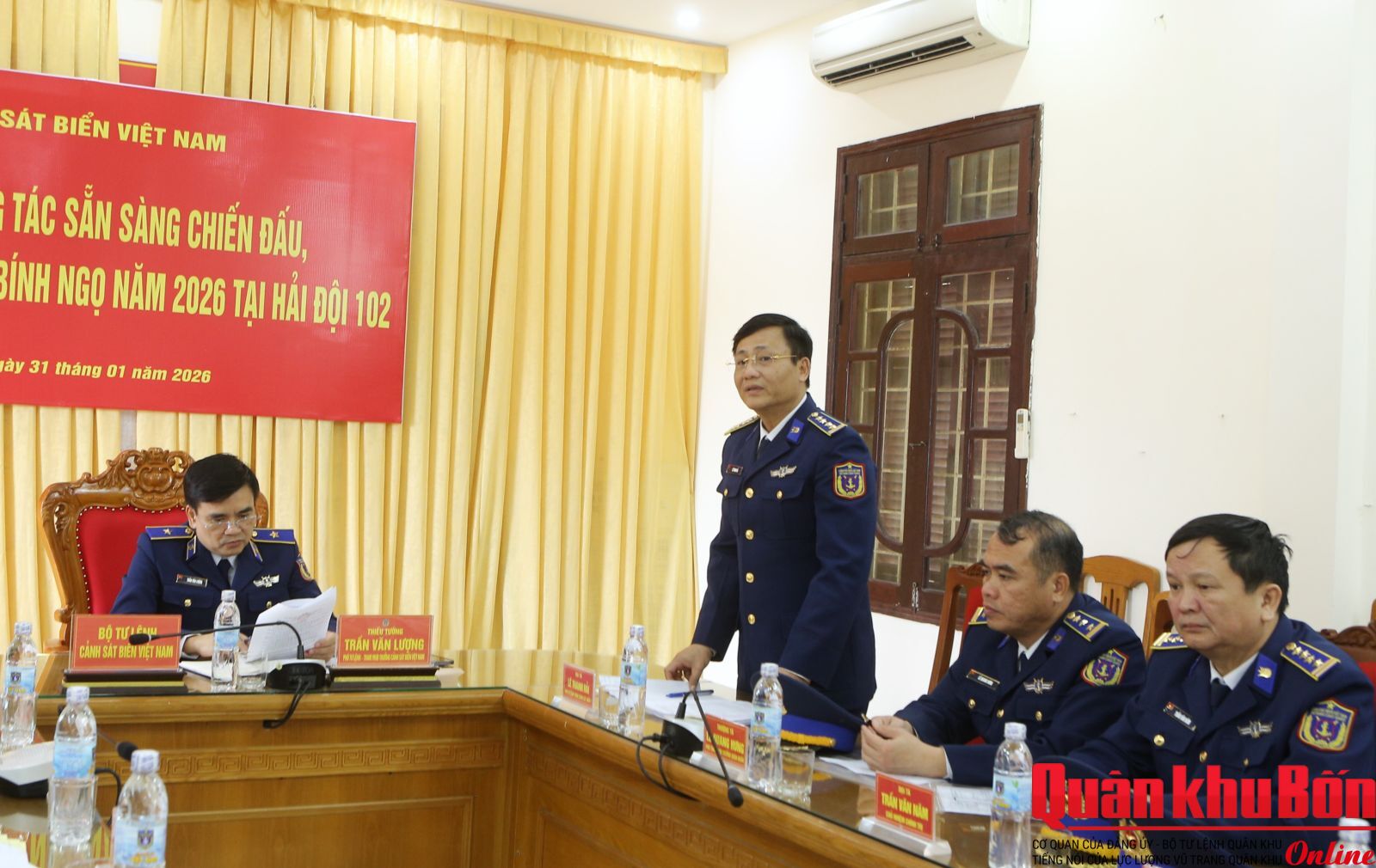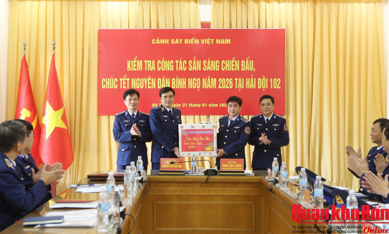 Nhân dịp Tết Nguyên đán Bính Ngọ năm 2026, Thiếu tướng Trần Văn Lượng thay mặt Thủ trưởng Bộ Tư lệnh Cảnh sát Biển Việt Nam gửi lời chúc mừng năm mới tới toàn thể cán bộ, chiến sĩ Hải đội 102 và gia đình đón Tết vui tươi, lành mạnh, an toàn, tiết kiệm; tiếp tục đoàn kết, khắc phục khó khăn, hoàn thành tốt mọi nhiệm vụ được giao, giữ vững chủ quyền, an ninh, trật tự, an toàn trên các vùng biển được phân công quản lý.