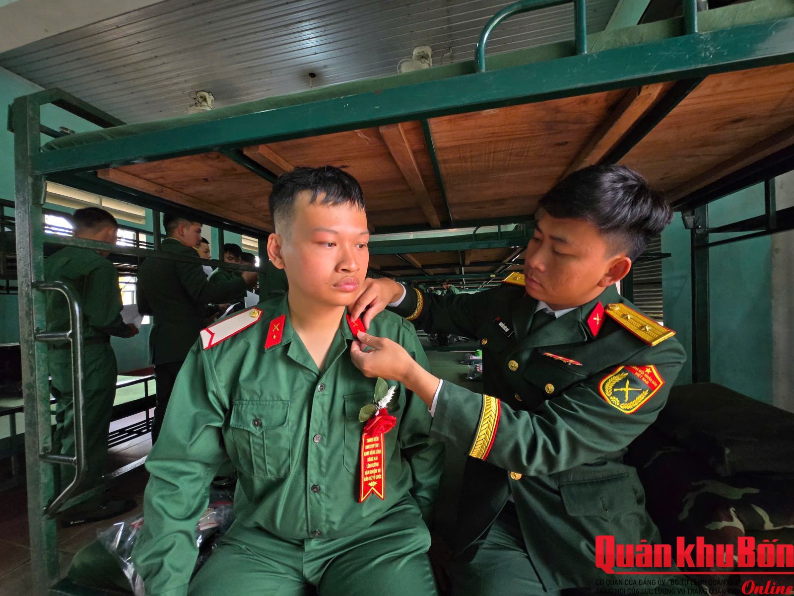 * Sáng nay, sau Lễ giao, nhận quân, các đơn vị thuộc Sư đoàn 324 đã hoàn thành việc đón các tân binh về đơn vị. Lãnh đạo, chỉ huy Sư đoàn đã trực tiếp xuống các đơn vị kiểm tra, động viên chiến sĩ mới.
