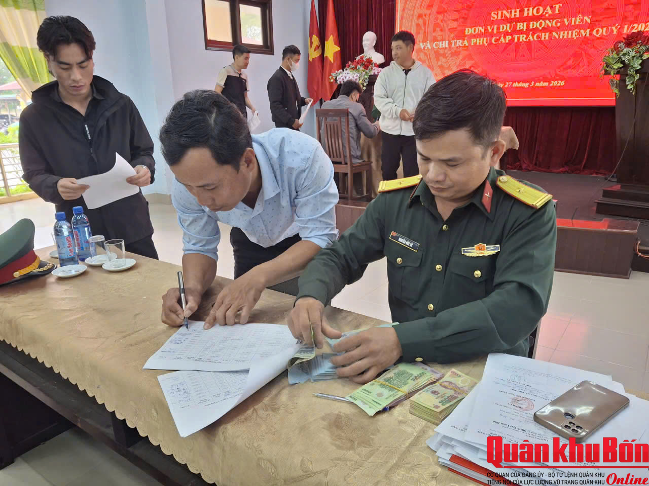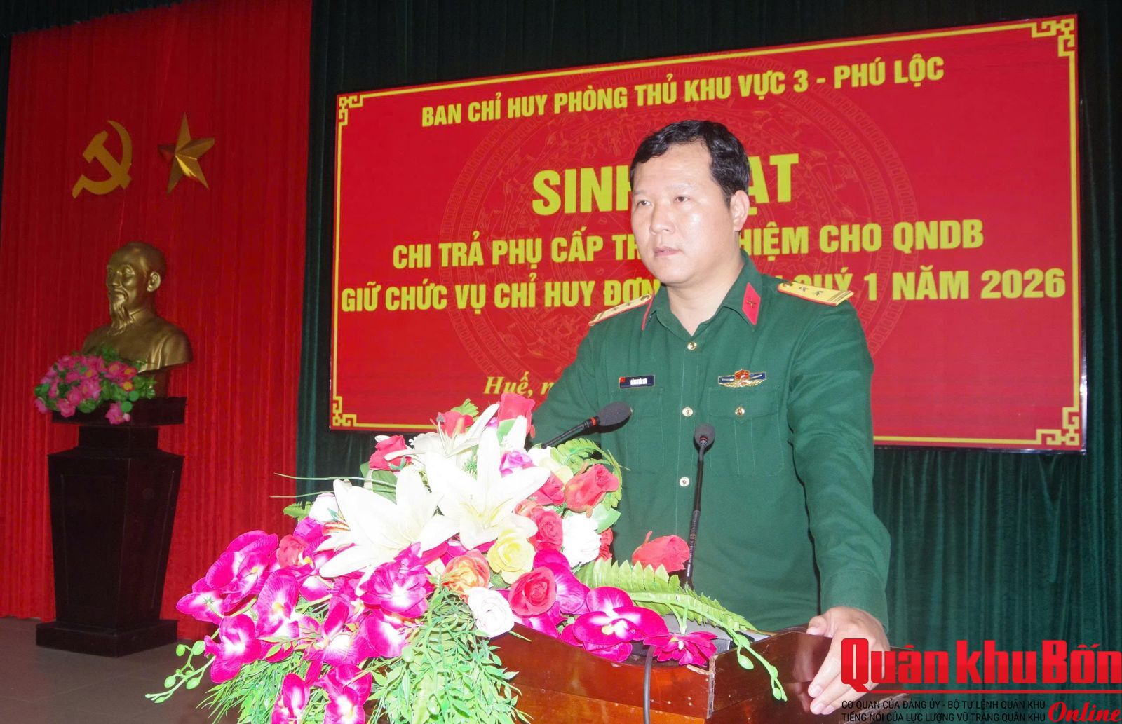 Trong thời gian 02 ngày (26-27/3), Ban Chỉ huy Phòng thủ khu vực 3 - Phú Lộc, Bộ Chỉ huy Quân sự (CHQS) thành phố Huế tổ chức sinh hoạt chi trả phụ cấp trách nhiệm cho Quân nhân dự bị (QNDB) giữ chức vụ chỉ huy, quản lý đơn vị Dự bị động viên (DBĐV) trên địa bàn Quý 1 năm 2026. Trung tá Đặng Thái Sơn, Phó Chỉ huy trưởng Ban Chỉ huy PTKV3 - Phú Lộc chủ trì sinh hoạt.