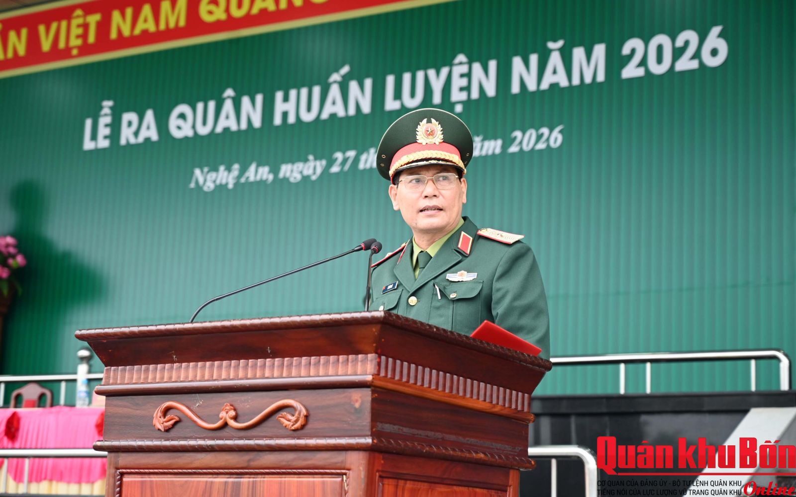 Sáng ngày 26/2/2026, Cơ quan Quân khu 4 tổ chức Tổng duyệt chương trình Lễ ra quân huấn luyện năm 2026. Thiếu tướng Lê Văn Vỹ, Phó Tham mưu trưởng Quân khu chủ trì buổi tổng duyệt. Tham dự Tổng duyệt có Thủ trưởng các cơ quan Quân khu cùng đội hình cán bộ, chiến sĩ các cơ quan, đơn vị dự Lễ.
