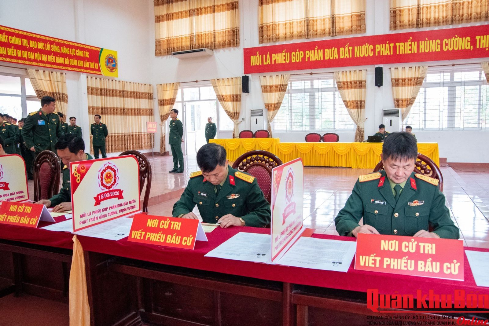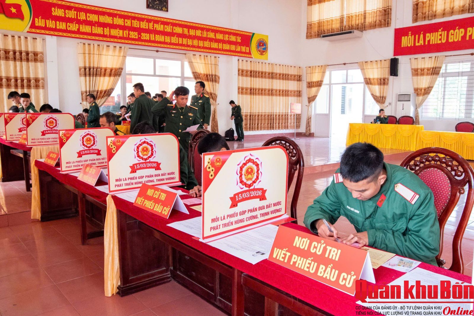 Hòa chung không khí Ngày hội lớn của toàn dân, sáng 15/3/2026, cử tri của Lữ đoàn Pháo binh 16 nô nức đến khu vực bỏ phiếu thực hiện quyền và nghĩa vụ công dân, tham gia bầu cử đại biểu Quốc hội khóa XVI và đại biểu Hội đồng nhân dân các cấp nhiệm kỳ 2026 – 2031. Đây là sự kiện chính trị quan trọng, thu hút sự quan tâm và tham gia của đông đảo cán bộ, chiến sĩ trong toàn Lữ đoàn.