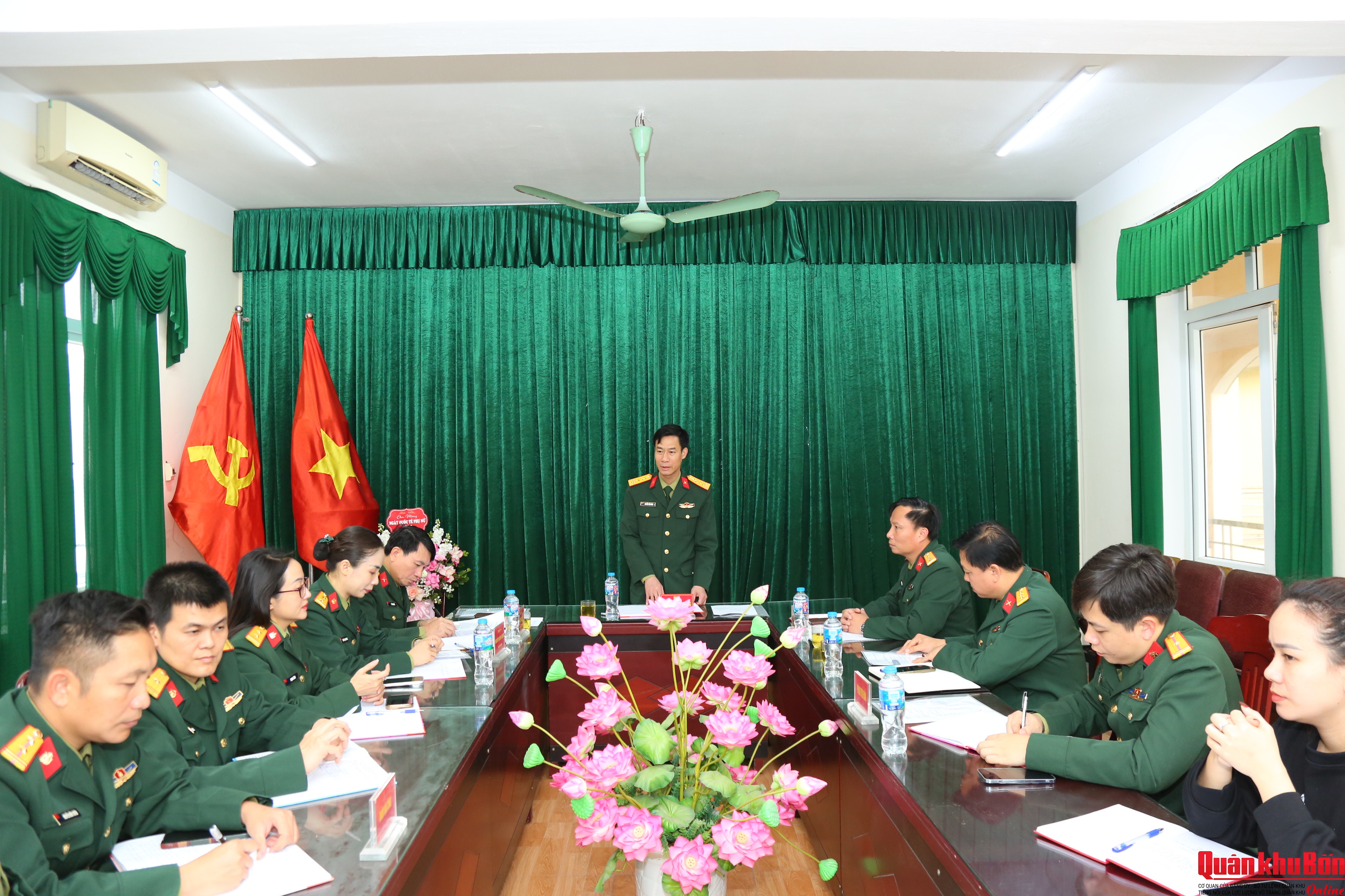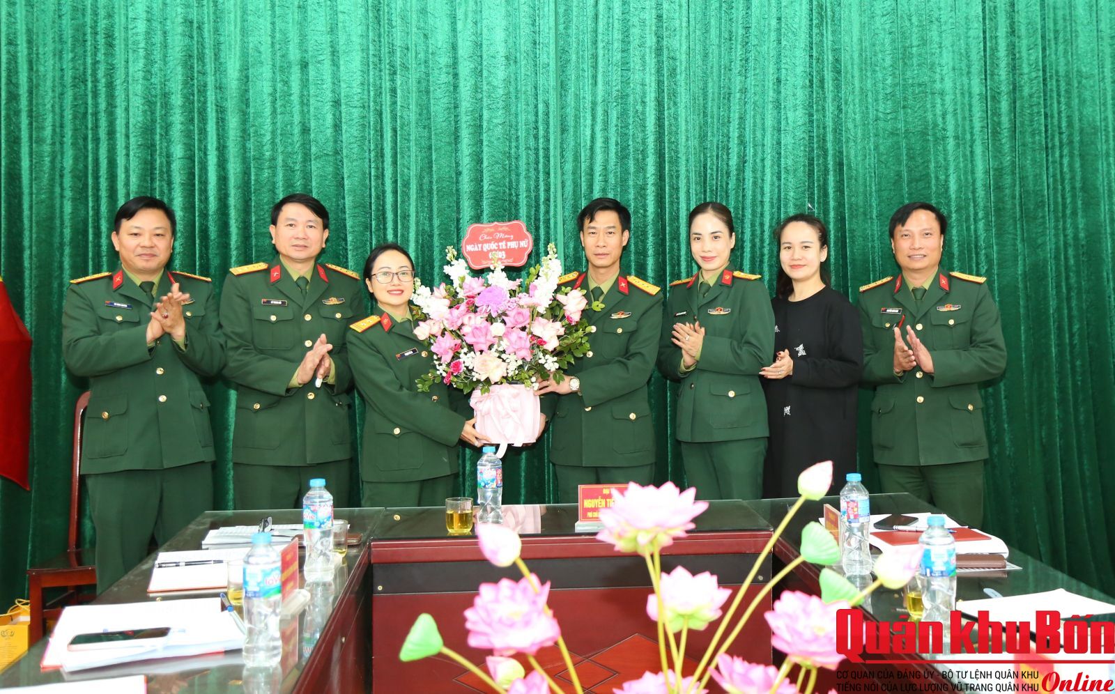 Nhân dịp này, Đại tá Nguyễn Tiến Dũng, Phó Chủ nhiệm Chính trị Quân khu tặng hoa chúc mừng chị em phụ nữ Đoàn Văn công nhân dịp kỷ niệm 116 năm Ngày Quốc tế Phụ nữ (8/3/1910- 8/3/2026).