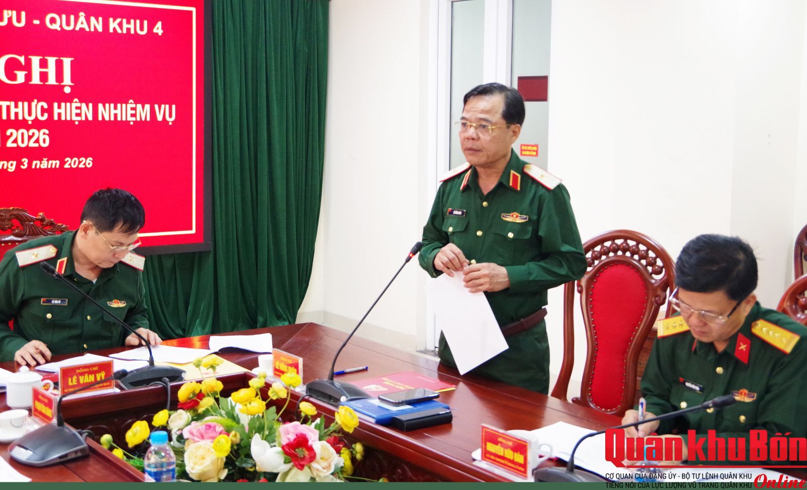 Chiều 31/3/2026, Đảng ủy Bộ Tham mưu Quân khu 4 tổ chức hội nghị ra nghị quyết lãnh đạo thực hiện nhiệm vụ quý II năm 2026. Dự và chỉ đạo hội nghị có Thiếu tướng Lê Hồng Nhân, Ủy viên Thường vụ Đảng ủy Quân khu, Phó Tư lệnh, Tham mưu trưởng Quân khu. Thiếu tướng Lê Văn Vỹ, Bí thư Đảng ủy Bộ Tham mưu, Phó Tham mưu trưởng Quân khu chủ trì hội nghị.