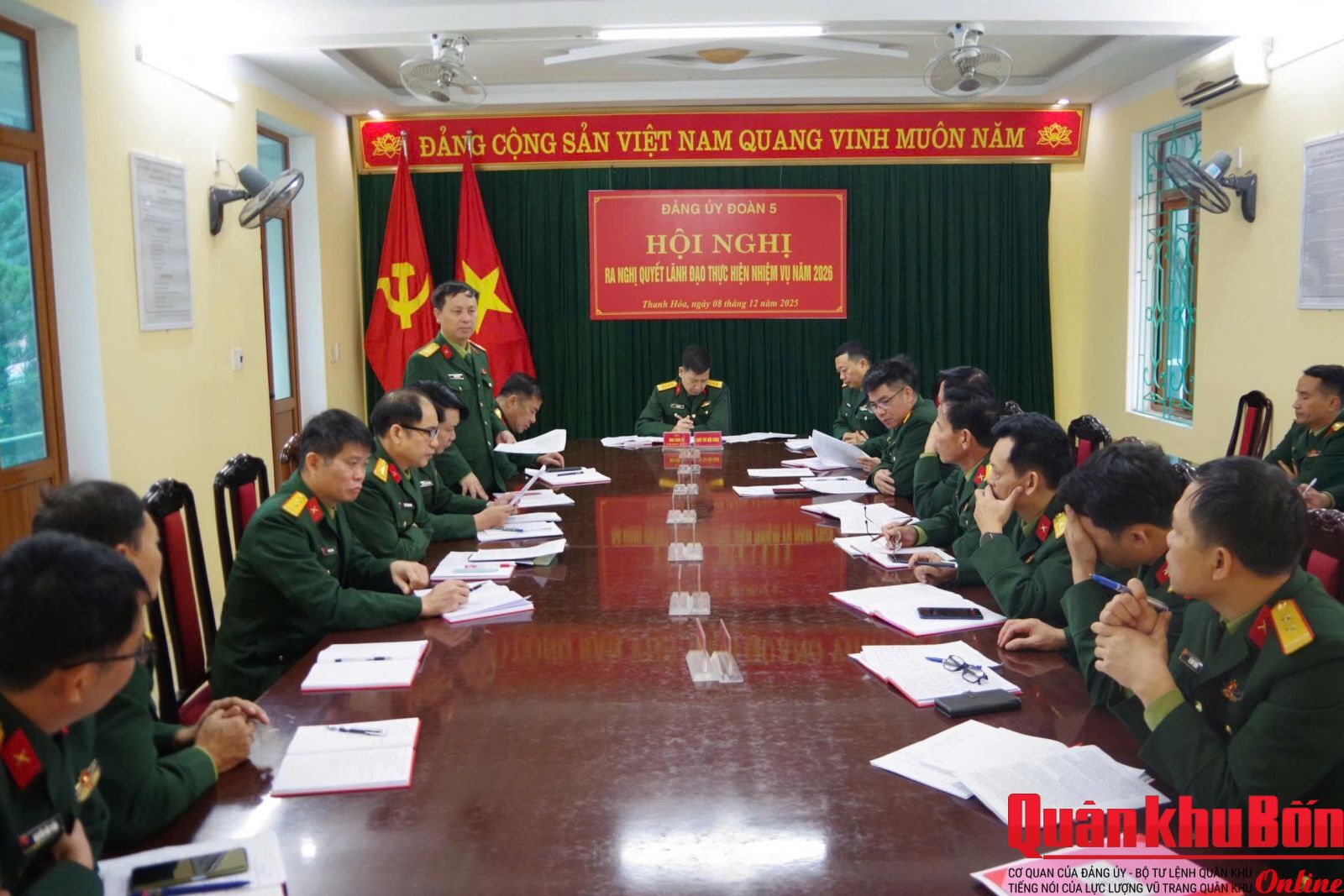 Năm 2026, Đảng ủy Đoàn Kinh tế - Quốc phòng 5 quán triệt sâu sắc Nghị quyết Đại hội XIV của Đảng và nghị quyết các cấp, xây dựng quyết tâm chính trị cao, chủ động nắm, dự báo và xử lý kịp thời các tình huống, không để bị động. Đơn vị tập trung lãnh đạo thực hiện hiệu quả các chương trình, dự án xây dựng Khu KTQP; phấn đấu xây dựng Đảng bộ trong sạch vững mạnh, đơn vị VMTD “mẫu mực, tiêu biểu”. Đột phá vào đổi mới phương pháp công tác, nâng cao tinh thần trách nhiệm, vai trò nêu gương của cán bộ; nâng cao chất lượng triển khai các chương trình MTQG, đề án, dự án.