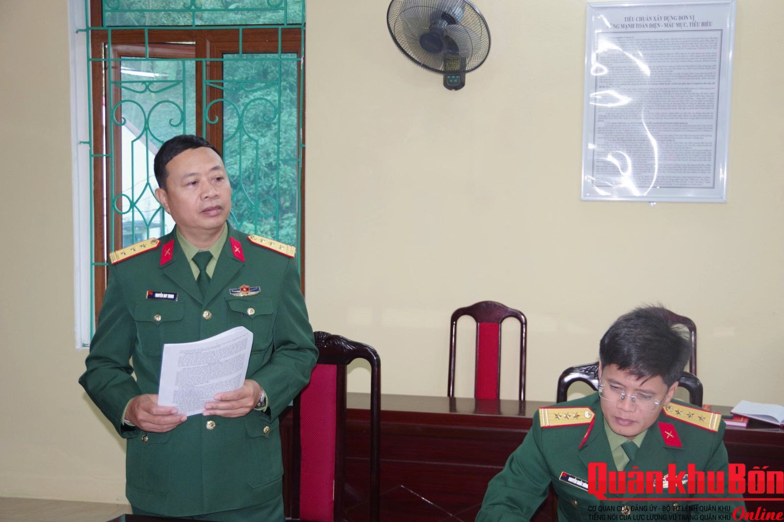 Về nhiệm vụ trọng tâm, đơn vị duy trì nghiêm SSCĐ; phối hợp nắm chắc địa bàn, xử lý hiệu quả các tình huống, đặc biệt trong thời điểm diễn ra Đại hội XIV của Đảng và bầu cử Quốc hội khóa XVI. Tập trung triển khai dự án Khu KTQP Mường Lát giai đoạn 2026–2030 và các chương trình thuộc CTMTQG 1719. Nâng cao chất lượng giáo dục chính trị, tuyên truyền; thực hiện tốt công tác dân vận, chính sách, bảo vệ chính trị nội bộ; nâng cao chất lượng huấn luyện, xây dựng chính quy, kỷ luật.