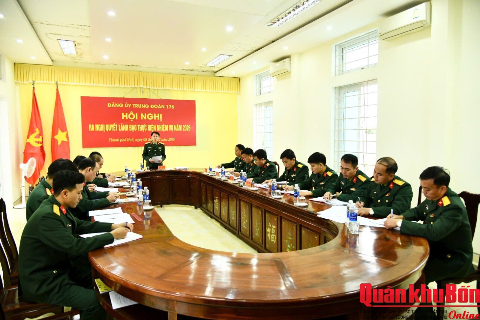 Năm 2026, Đảng ủy Trung đoàn 176 xác định: Tiếp tục lãnh đạo, triển khai thực hiện tốt các nhiệm vụ, chỉ tiêu Nghị quyết Đại hội Đảng bộ Trung đoàn lần thứ XVIII, nhiệm kỳ 2025-2030 và nhiệm vụ năm 2026. Duy trì nghiêm nền nếp chế độ sẵn sàng chiến đấu; nâng cao chất lượng huấn luyện, giáo dục chính trị; quản lý tư tưởng, kỷ luật; thực hiện hiệu quả phương châm “5 vững” theo tinh thần chỉ đạo của Tổng Bí thư Tô Lâm. Quán triệt và thực hiện có hiệu quả khâu đột phá của Đảng ủy Sư đoàn về “Nâng cao trình độ huấn luyện, năng lực chỉ huy, quản lý và đổi mới phương pháp, tác phong công tác của đội ngũ cán bộ các cấp; Nâng cao nhận thức, quyết tâm, tạo động lực mạnh mẽ trong chuyển đổi số, ứng dụng khoa học, công nghệ”. Xây dựng Đảng bộ Trung đoàn vững mạnh toàn diện “Mẫu mực, tiêu biểu”, hoàn thành xuất sắc nhiệm vụ được giao.