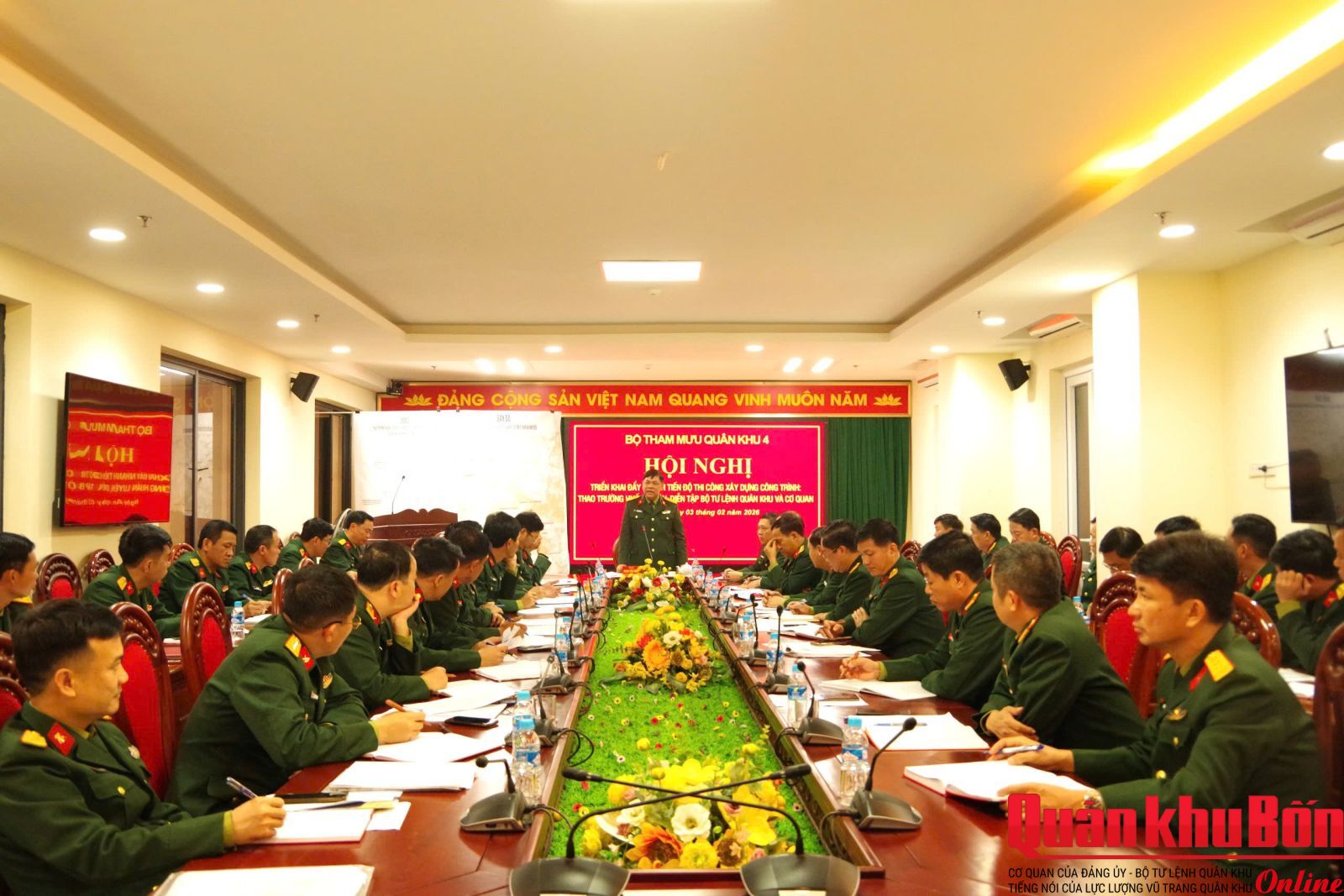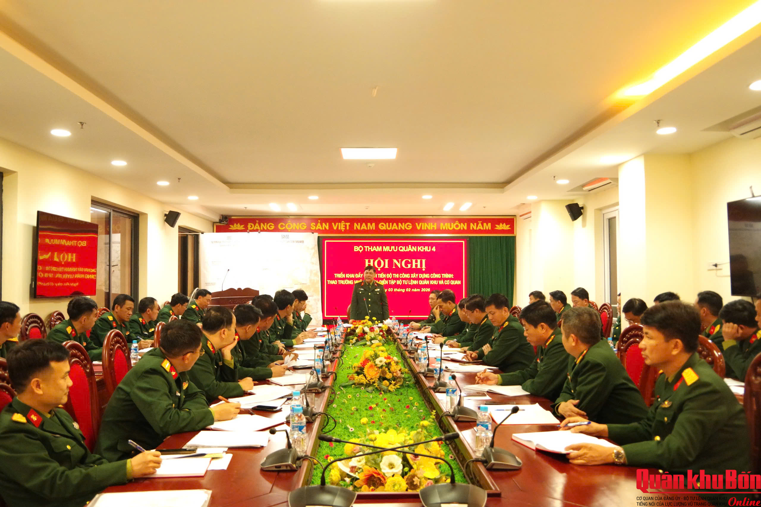 Ngày 03/2/2026, Quân khu tổ chức Hội nghị triển khai đẩy nhanh tiến độ thi công xây dựng công trình huấn luyện, diễn tập Bộ Tư lệnh Quân khu và cơ quan. Đại tá Phạm Văn Dũng, Phó Tham mưu trưởng Quân khu chủ trì Hội nghị. Thủ trưởng Cục Chính trị; Cục Hậu cần – Kỹ thuật; chỉ huy Bộ Chỉ huy Quân sự tỉnh Nghệ An; Sư đoàn 324; Lữ đoàn Công binh 414 và các phòng, ban, cơ quan Quân khu.