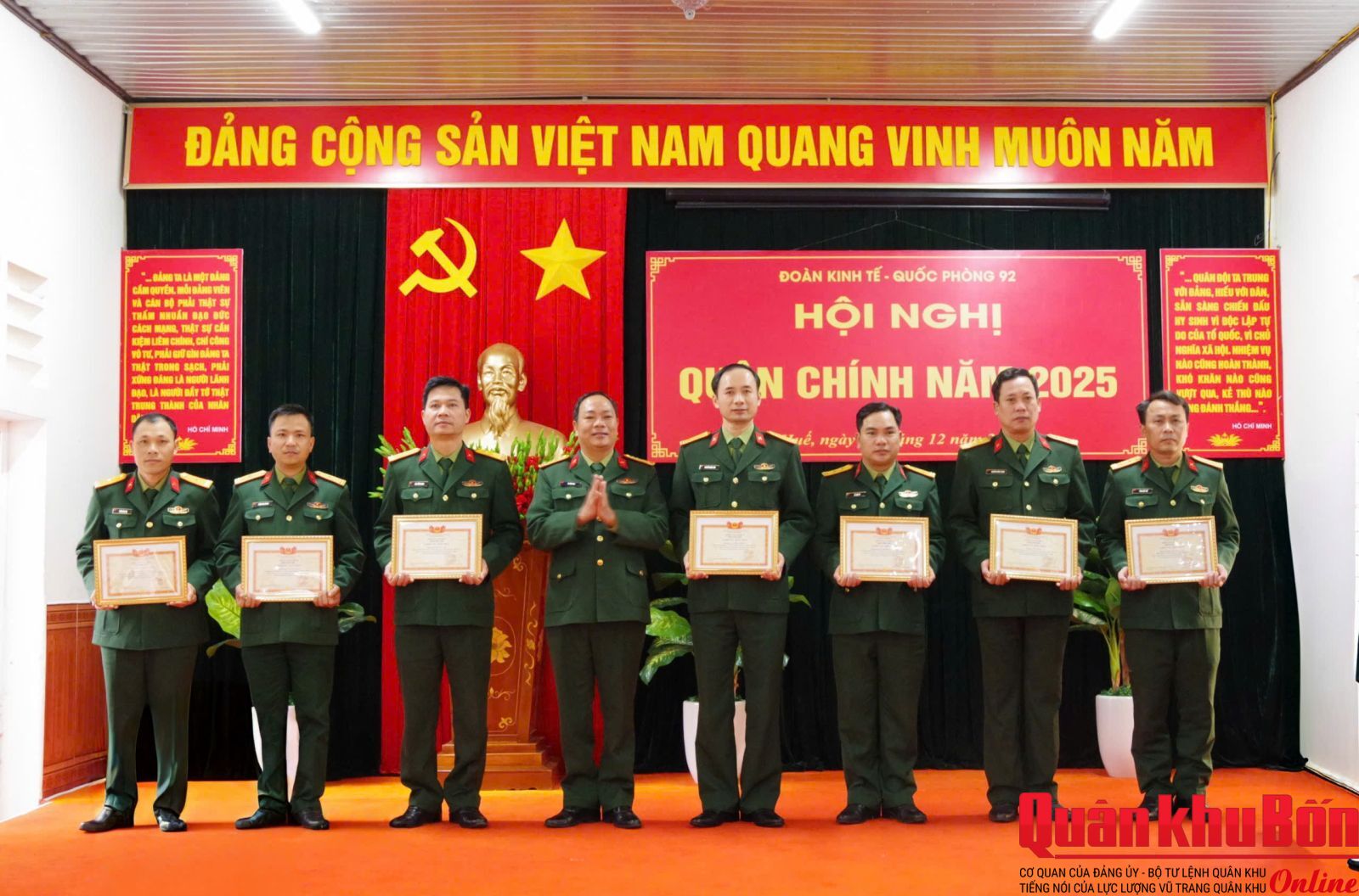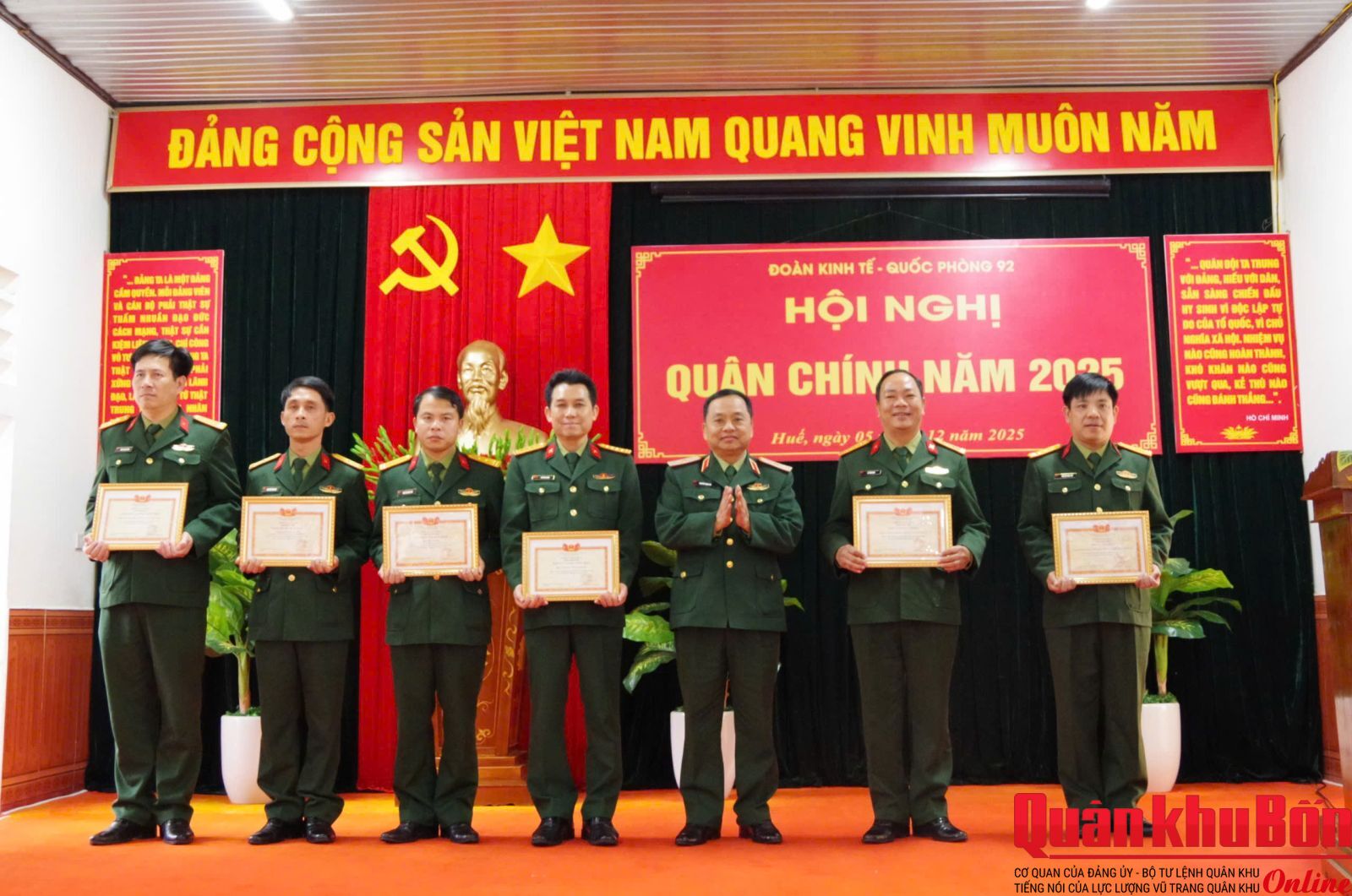 Chiều 05/12/2025, Đoàn KT–QP 92 (Đoàn 92) tổ chức Hội nghị Quân chính năm 2025. Thiếu tướng Nguyễn Ngọc Hà, Đảng ủy viên, Phó Tư lệnh Quân khu dự và chỉ đạo hội nghị. Cùng dự có đại biểu các cơ quan Quân khu.