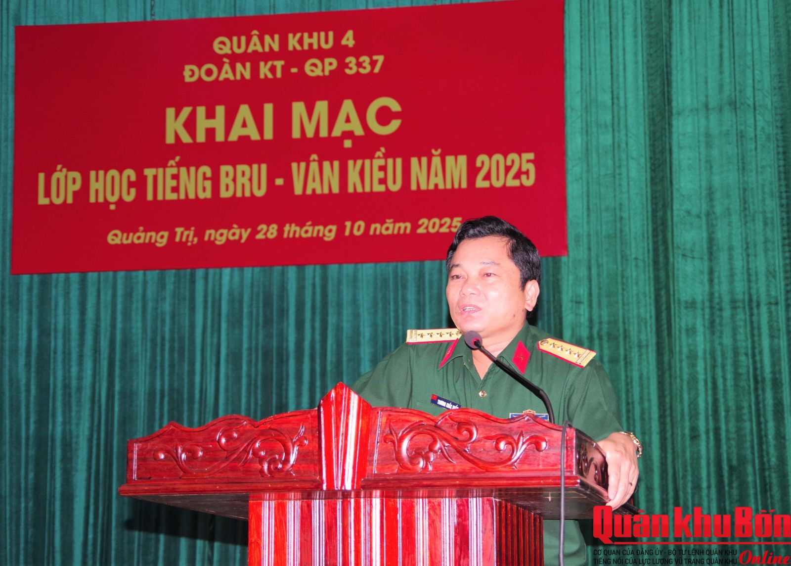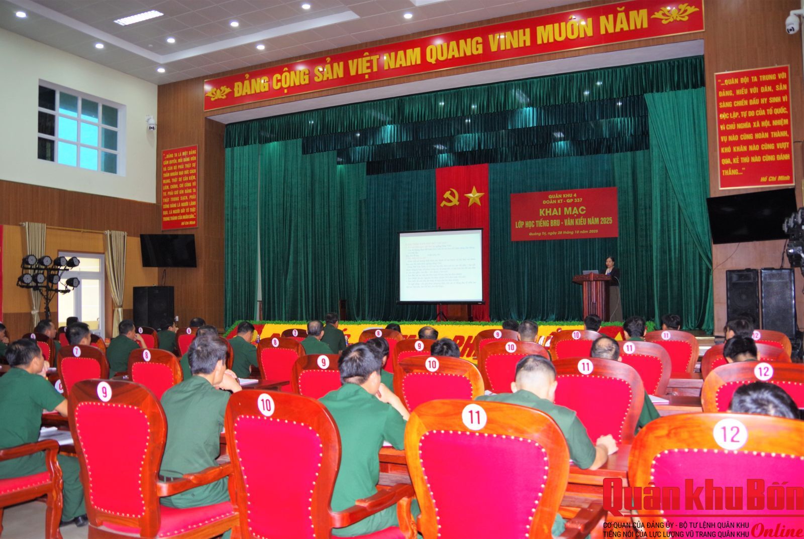 Nhằm nâng cao kiến thức, kỹ năng giao tiếp bằng tiếng dân tộc thiểu số, ngày 28/10/2025, Đoàn Kinh tế - Quốc phòng 337, Quân khu 4 phối hợp với Trung tâm Giáo dục thường xuyên tỉnh Quảng Trị tổ chức Khai giảng lớp học tiếng dân tộc Bru-Vân Kiều năm 2025. Đại tá Trương Khắc Duẩn, Phó Chính ủy Đoàn, Trưởng ban Tổ chức lớp học dự, phát biểu Khai mạc. Cùng dự có lãnh đạo, chỉ huy Đoàn; thủ trưởng các cơ quan, đơn vị và 50 học viên là cán bộ, nhân viên, trí thức trẻ tình nguyện trong toàn Đoàn.