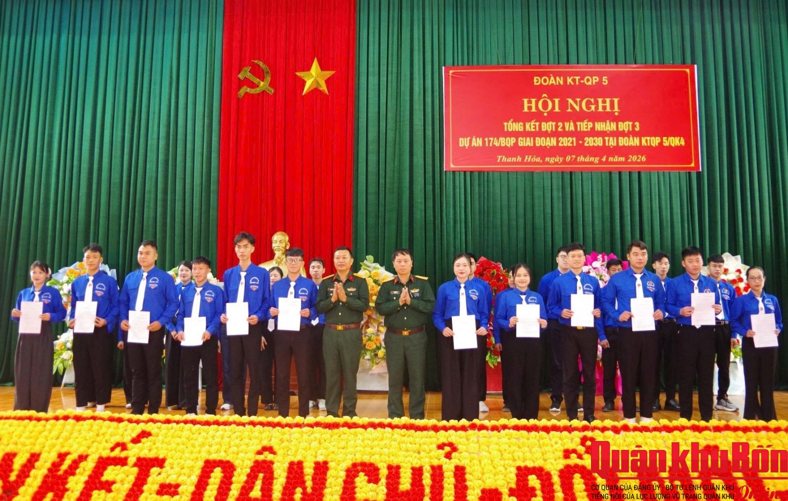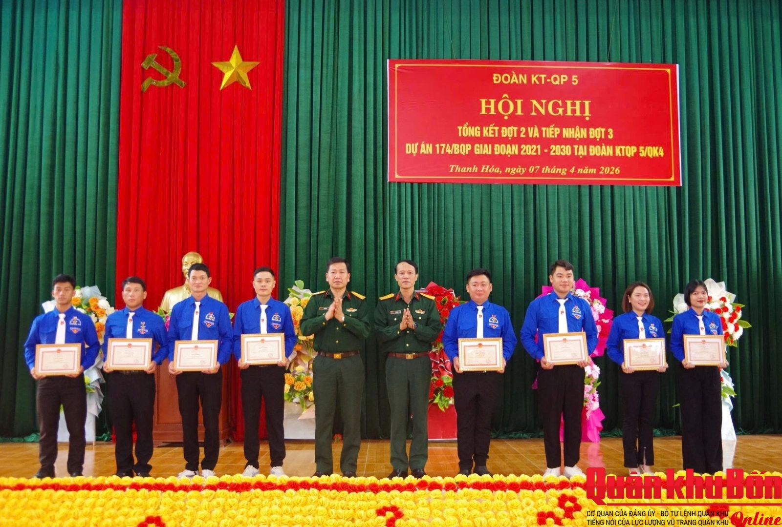 Đoàn Kinh tế - Quốc phòng (KTQP) 5 vừa tổ chức Hội nghị tổng kết đợt 2, tiếp nhận đợt 3 Dự án 174/BQP về “Tăng cường trí thức trẻ tình nguyện đến công tác tại các Khu Kinh tế - Quốc phòng”.