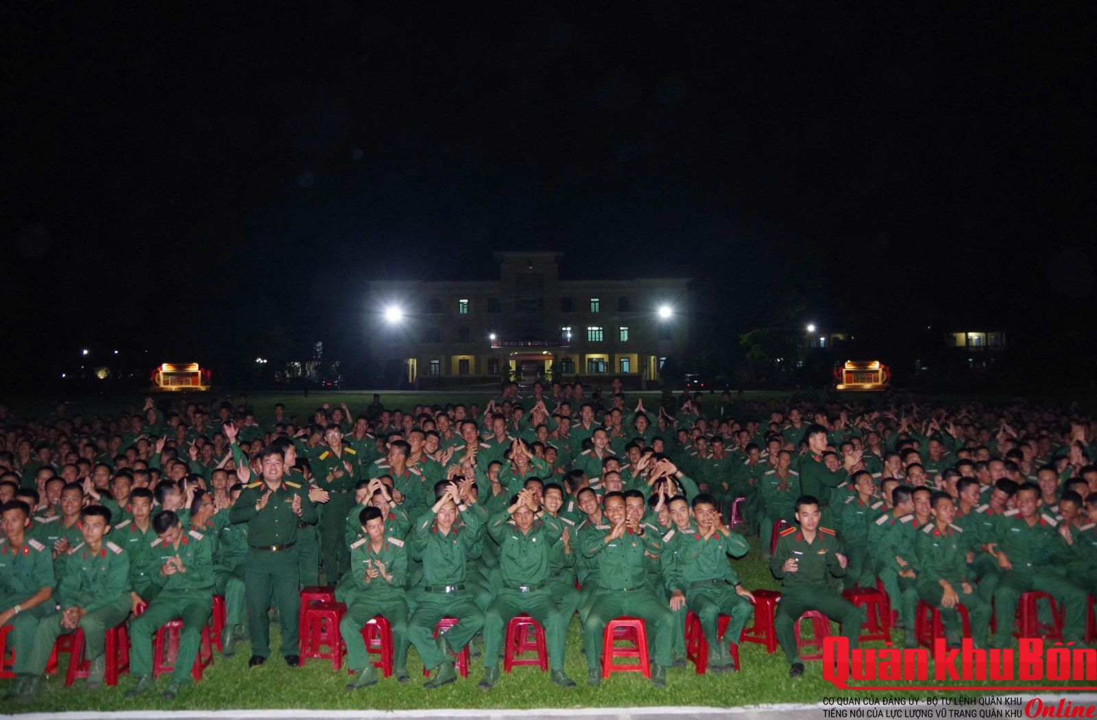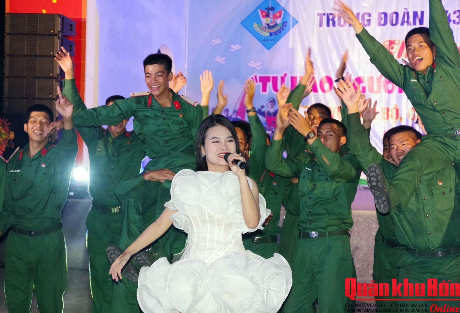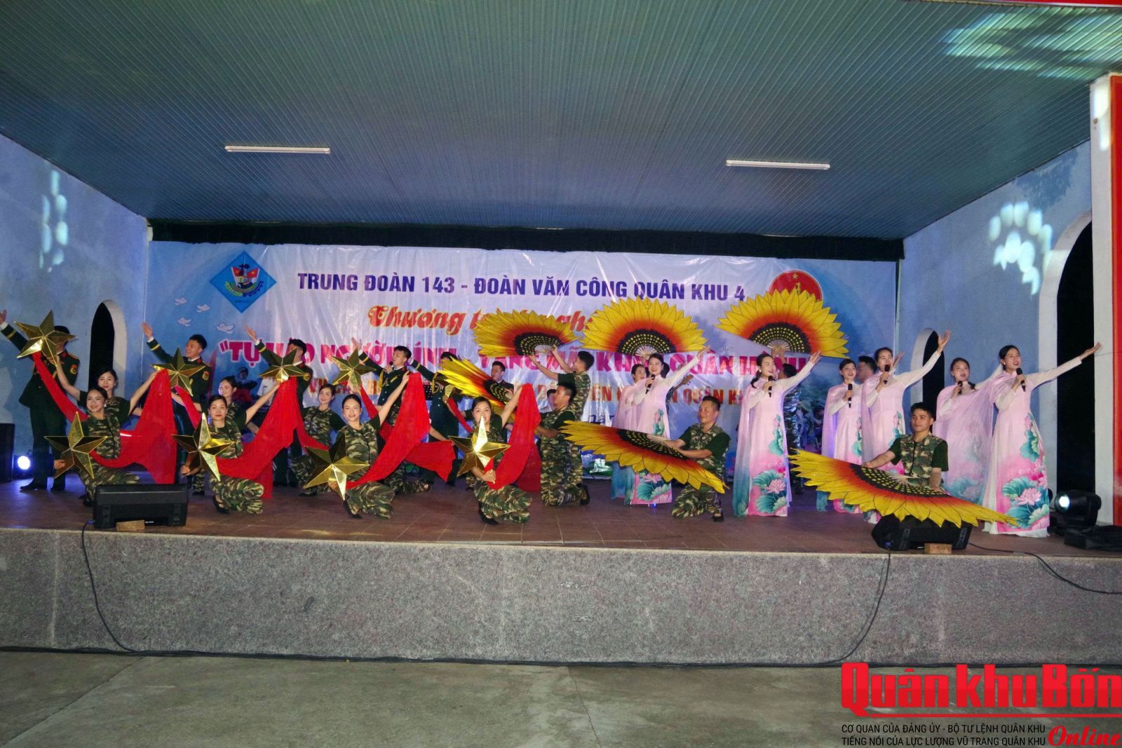 Chương trình gồm các tiết mục ca, múa, nhạc ca ngợi Đảng quang vinh, Bác Hồ vĩ đại, quê hương, đất nước, Quân đội và truyền thống lực lượng vũ trang Quân khu.