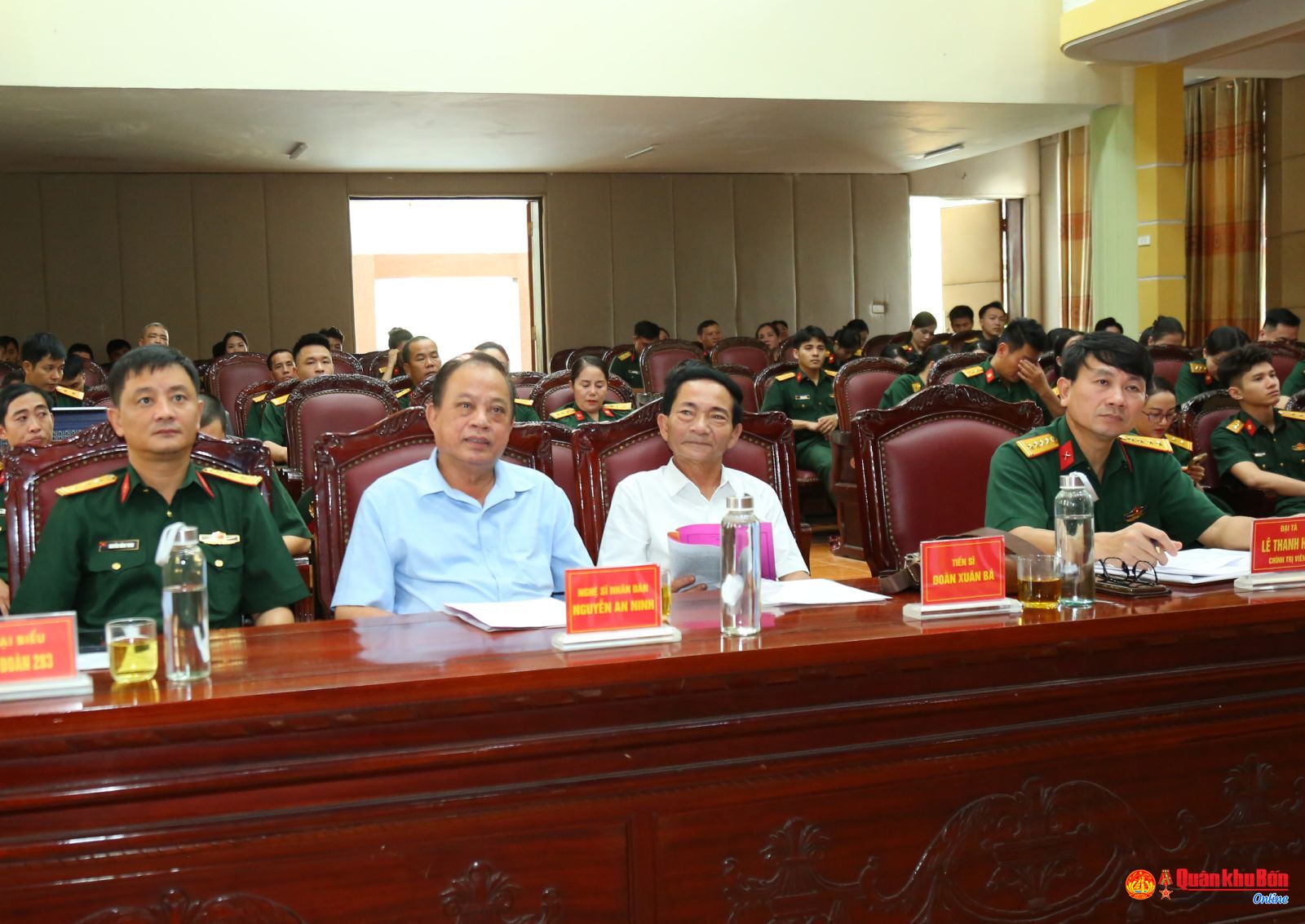Tham dự hội nghị có thủ trưởng Phòng Tuyên huấn, Phòng Kế hoạch – Tổng hợp (Cục Chính trị); Tiến sĩ Đoàn Xuân Bá, Nghệ sĩ Nhân dân Nguyễn An Ninh, đại diện Lữ đoàn 283 cùng toàn thể cán bộ, nhân viên Đoàn Văn công.