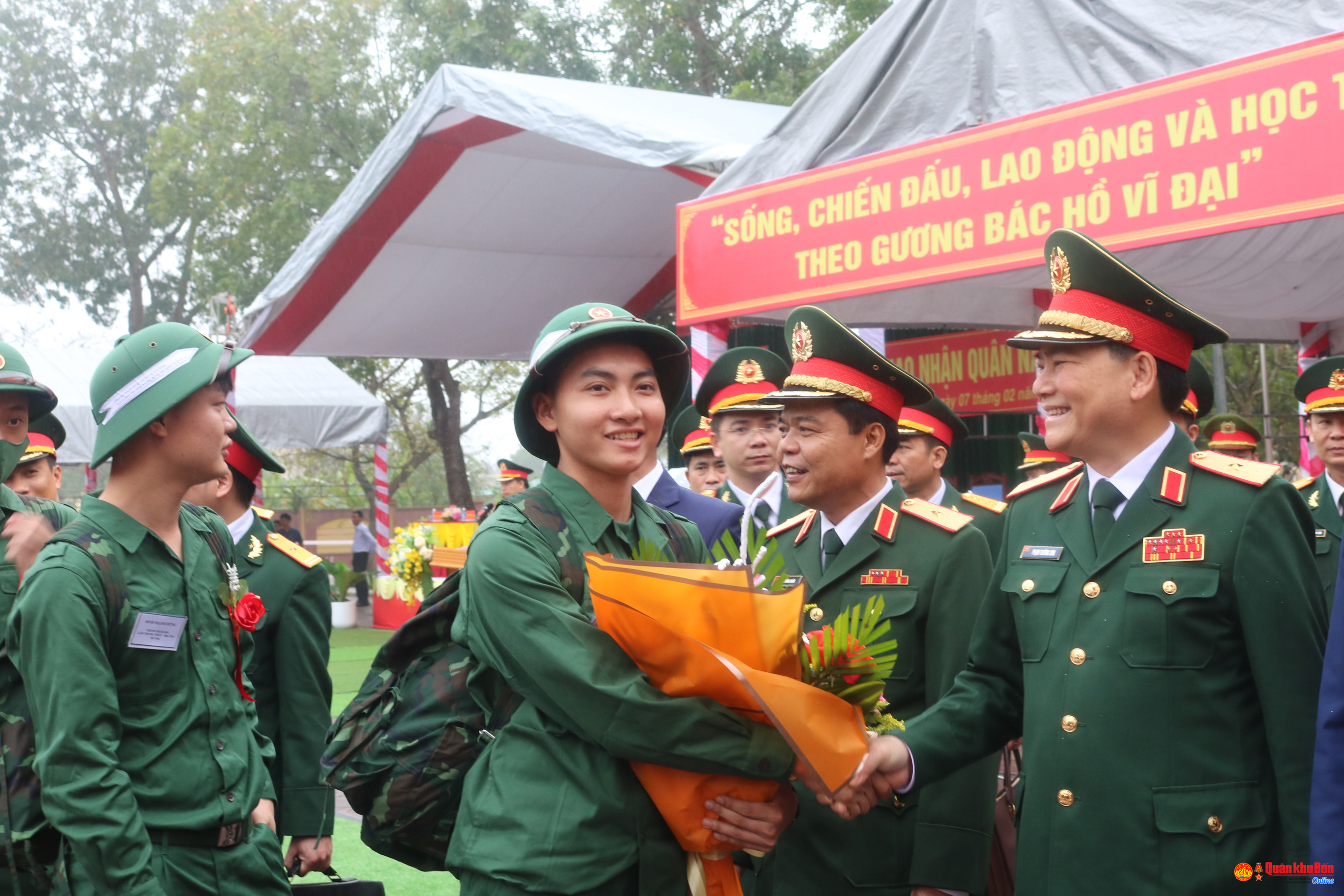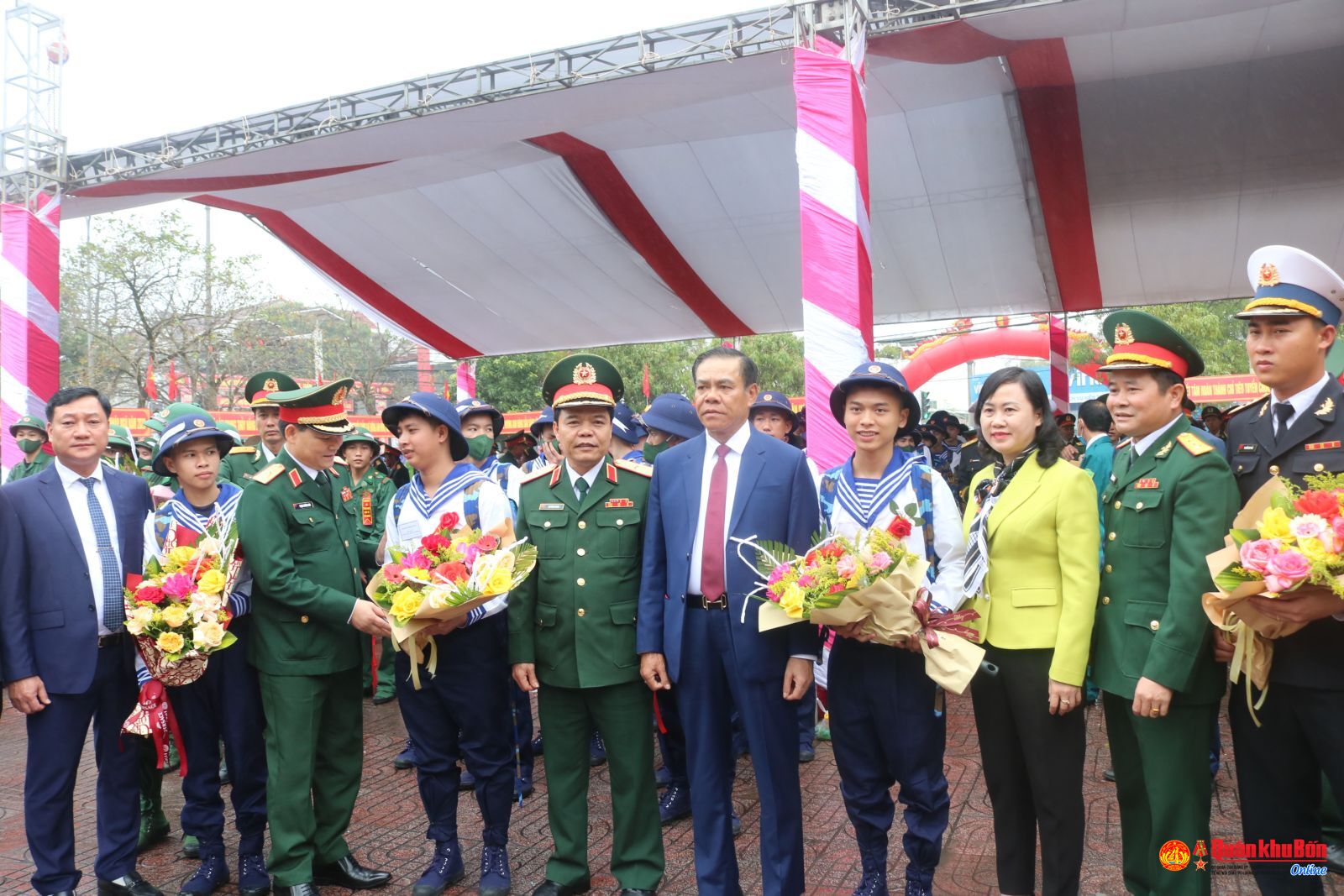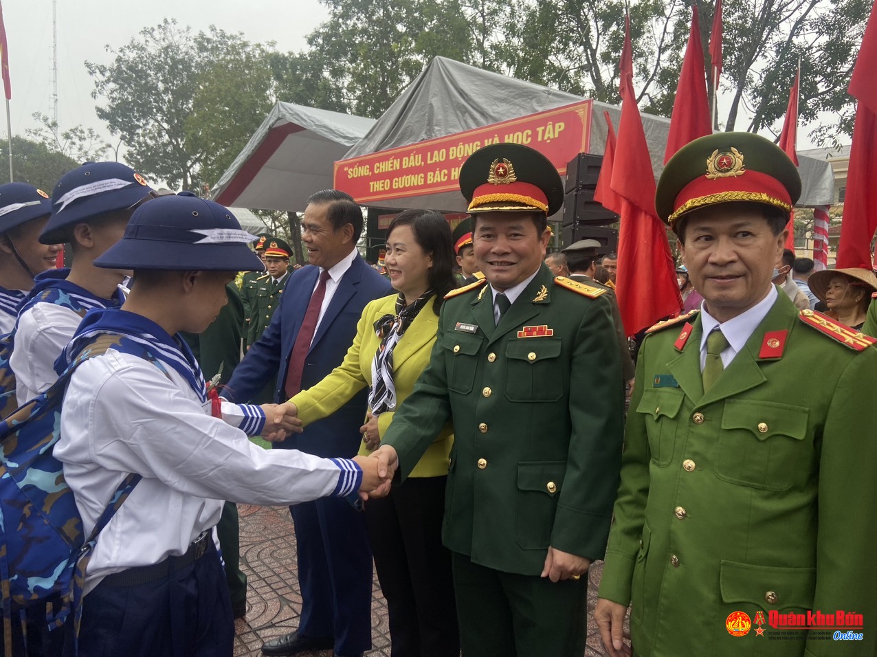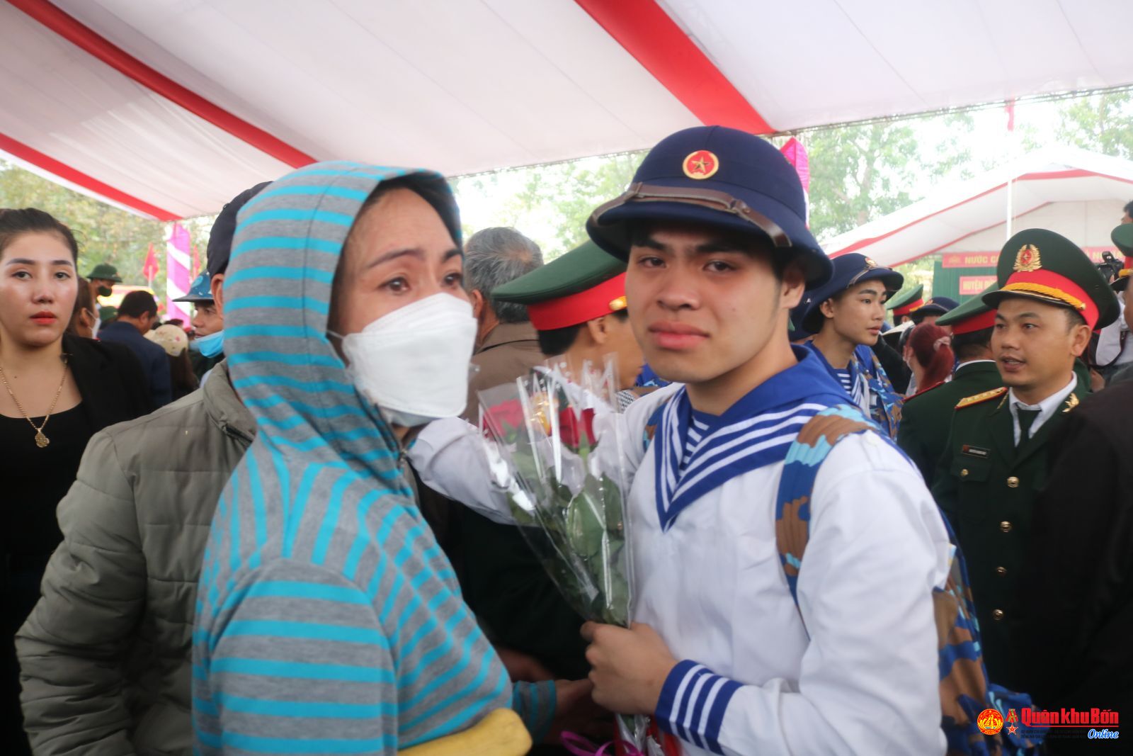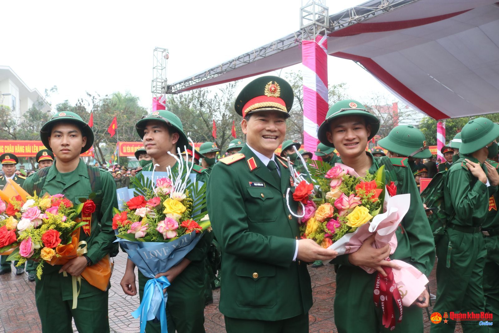 Trong không khí hân hoan của ngày hội tòng quân, đồng chí Thiếu tướng Phạm Trường Sơn, Phó Tổng Tham mưu trưởng Quân đội Nhân dân Việt Nam; đồng chí Thiếu tướng Lê Hồng Nhân, Phó Tư lệnh, Tham mưu trưởng Quân khu; đồng chí Võ Trọng Hải, Chủ tịch Ủy ban Nhân dân tỉnh Hà Tĩnh cùng các đại biểu, các ban, ngành, đoàn thể địa phương đã động viên, ân cần thăm hỏi và trao tặng những bó hoa tươi thắm cùng nhiều phần quà cho các thanh niên trước lúc lên đường bảo vệ Tổ quốc.