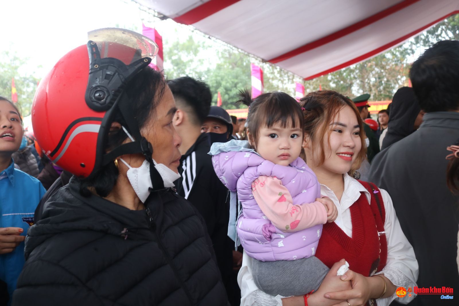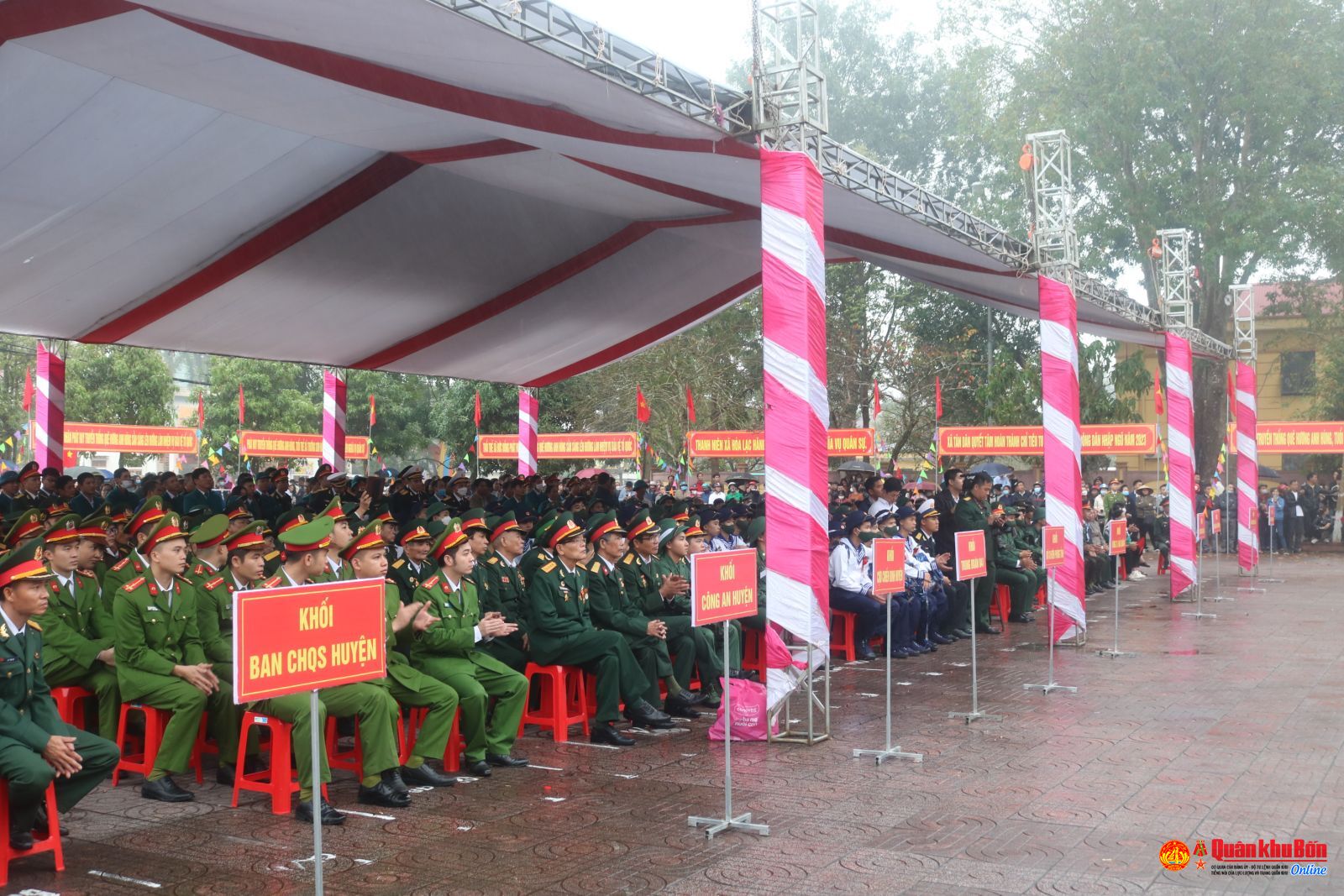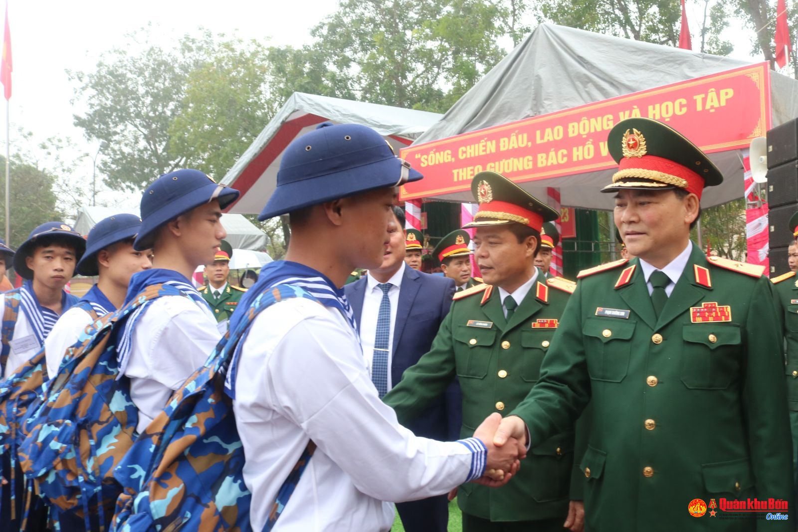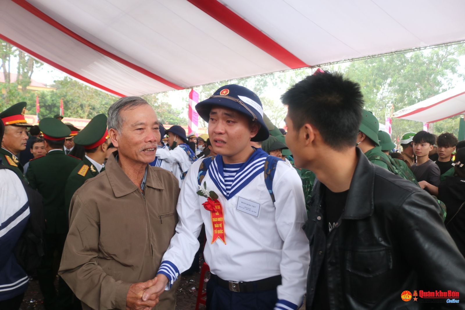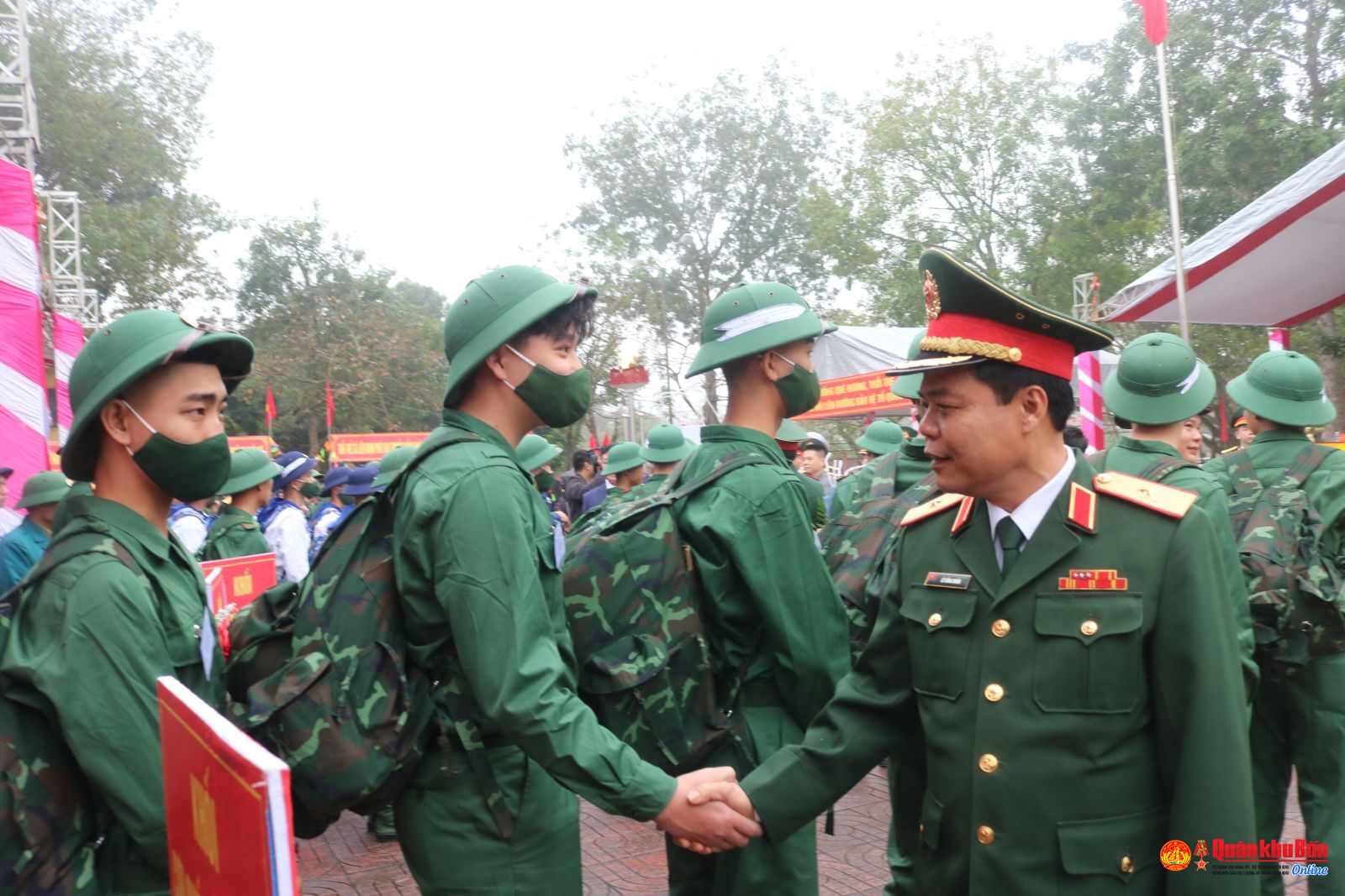 Trong không khí hân hoan của ngày hội tòng quân, đồng chí Thiếu tướng Phạm Trường Sơn, Phó Tổng Tham mưu trưởng Quân đội Nhân dân Việt Nam; đồng chí Thiếu tướng Lê Hồng Nhân, Phó Tư lệnh, Tham mưu trưởng Quân khu; đồng chí Võ Trọng Hải, Chủ tịch Ủy ban Nhân dân tỉnh Hà Tĩnh cùng các đại biểu, các ban, ngành, đoàn thể địa phương đã động viên, ân cần thăm hỏi và trao tặng những bó hoa tươi thắm cùng nhiều phần quà cho các thanh niên trước lúc lên đường bảo vệ Tổ quốc.