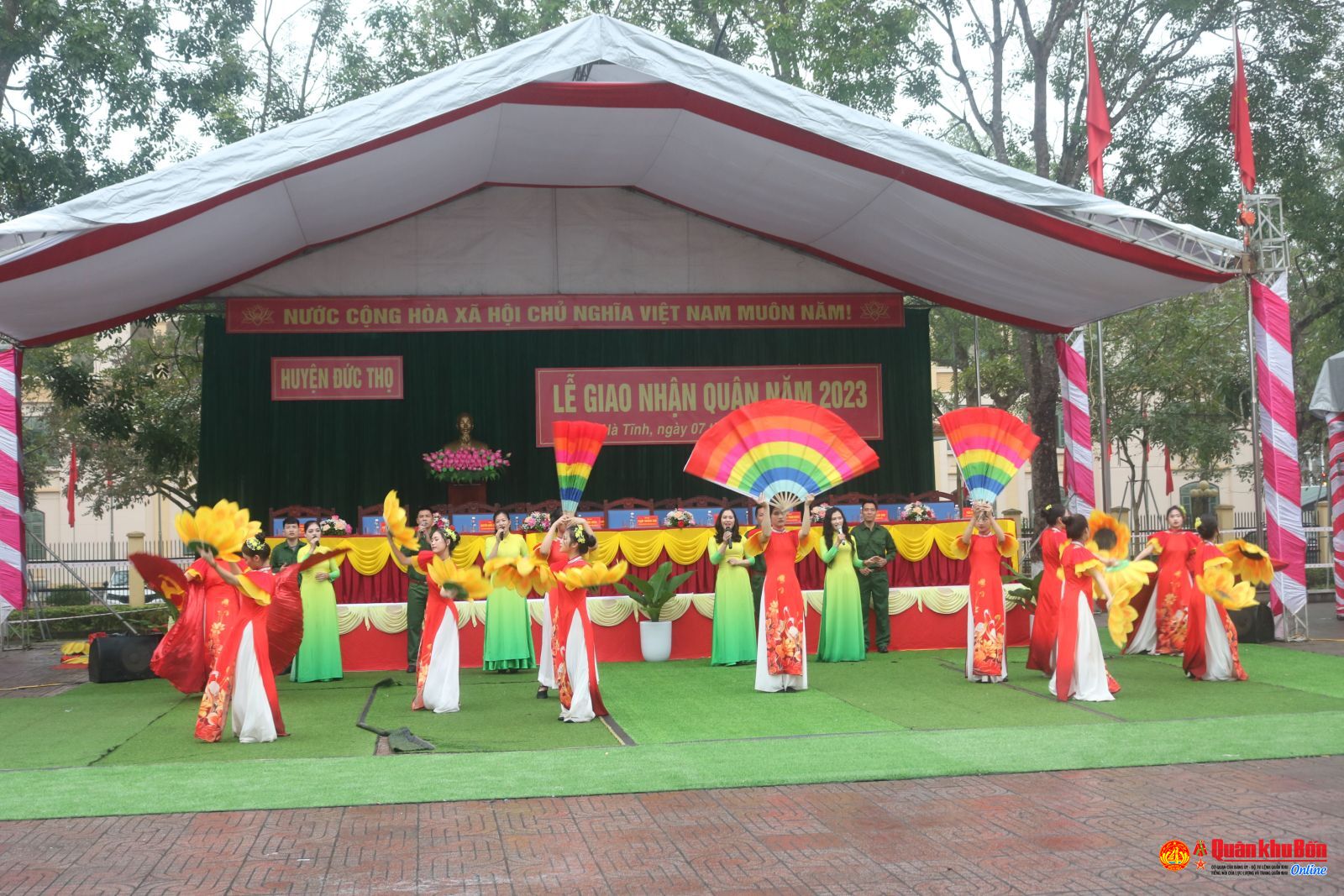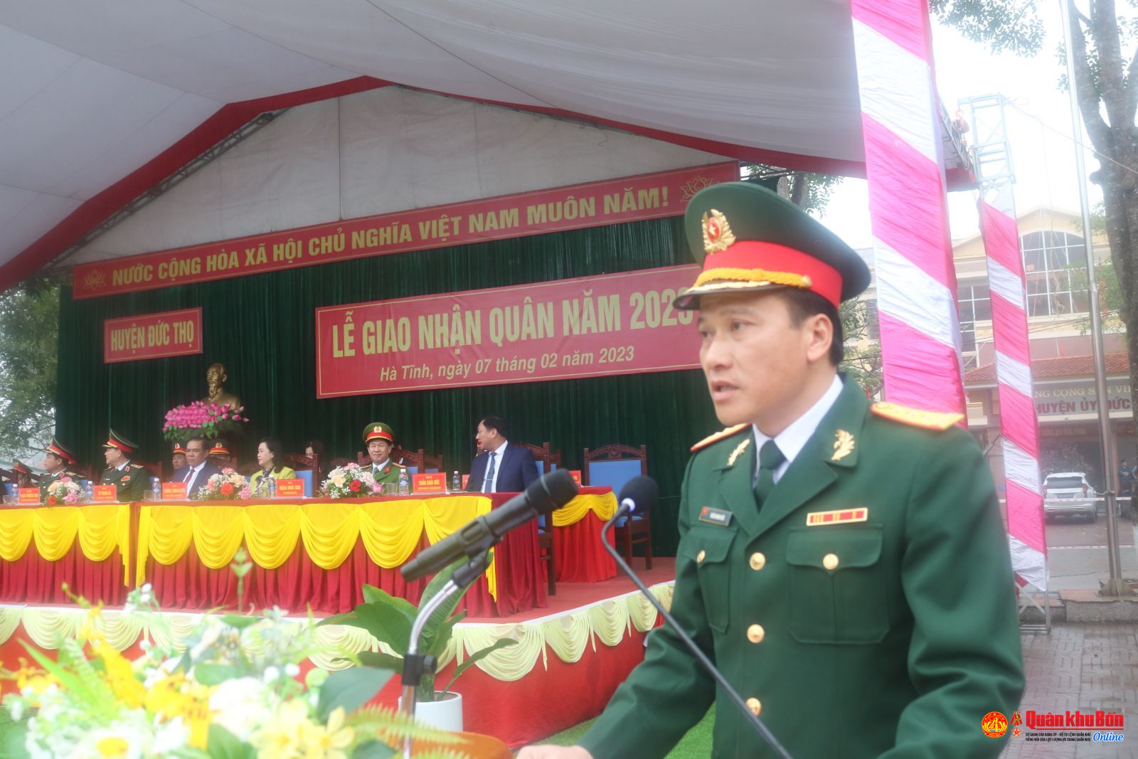 Hòa chung không khí tưng bừng trong ngày hội tòng quân của cả nước, sáng 07/2/2023, huyện Đức Thọ, Hà Tĩnh long trọng tổ chức Lễ giao, nhận quân năm 2023. Đồng chí Thiếu tướng Phạm Trường Sơn, Phó Tổng Tham mưu trưởng Quân đội Nhân dân Việt Nam; đồng chí Thiếu tướng Lê Hồng Nhân, Phó Tư lệnh, Tham mưu trưởng Quân khu; đồng chí Võ Trọng Hải, Chủ tịch Ủy ban Nhân dân tỉnh Hà Tĩnh dự Lễ. Tham dự buổi Lễ còn có đại biểu Cơ quan Bộ Quốc phòng; Quân khu; lãnh đạo, Tỉnh ủy, Ủy ban Nhân dân, Hội đồng Nhân dân tỉnh Hà Tĩnh, Bộ Chỉ huy Quân sự (CHQS) tỉnh Hà Tĩnh; đại biểu ban, ngành địa phương huyện Đức Thọ và các đơn vị nhận quân.