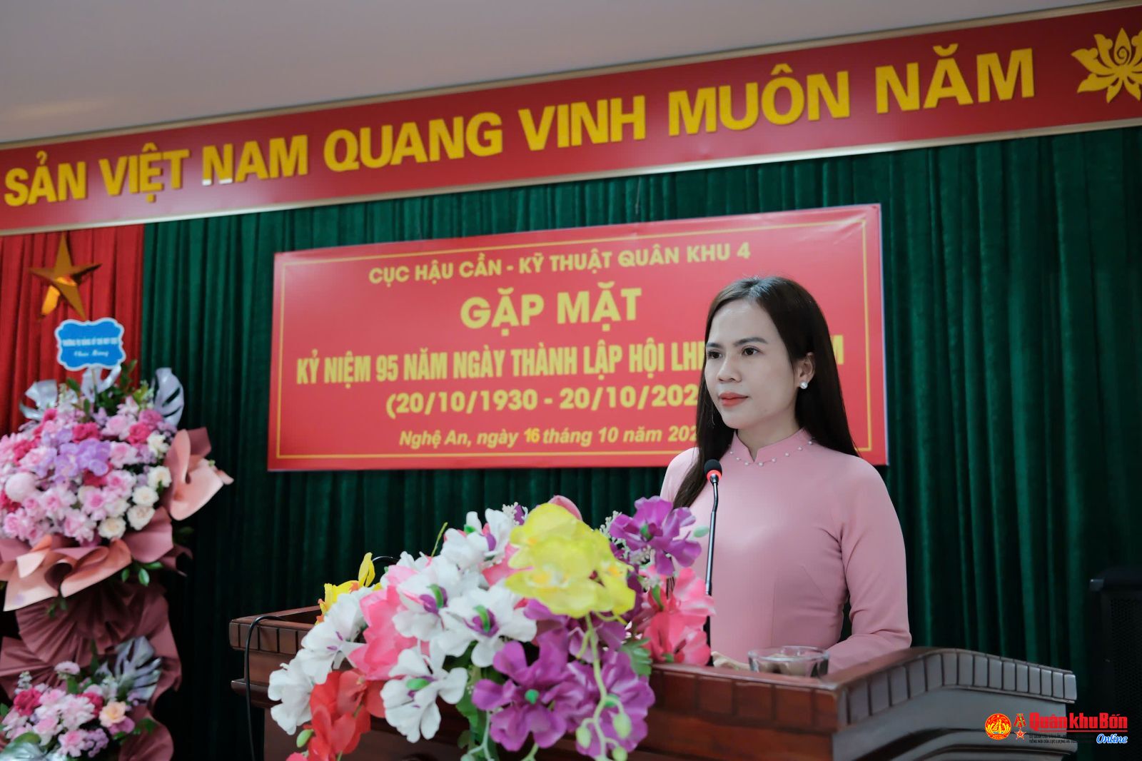 Nằm trong chuỗi hoạt động kỷ niệm 95 năm Ngày thành lập Hội Liên hiệp Phụ nữ Việt Nam (20/10/1930 – 20/10/2025), chiều 16/10/2025, Cục Hậu cần - Kỹ thuật Quân khu 4 tổ chức gặp mặt cán bộ, hội viên phụ nữ khối cơ quan Cục.