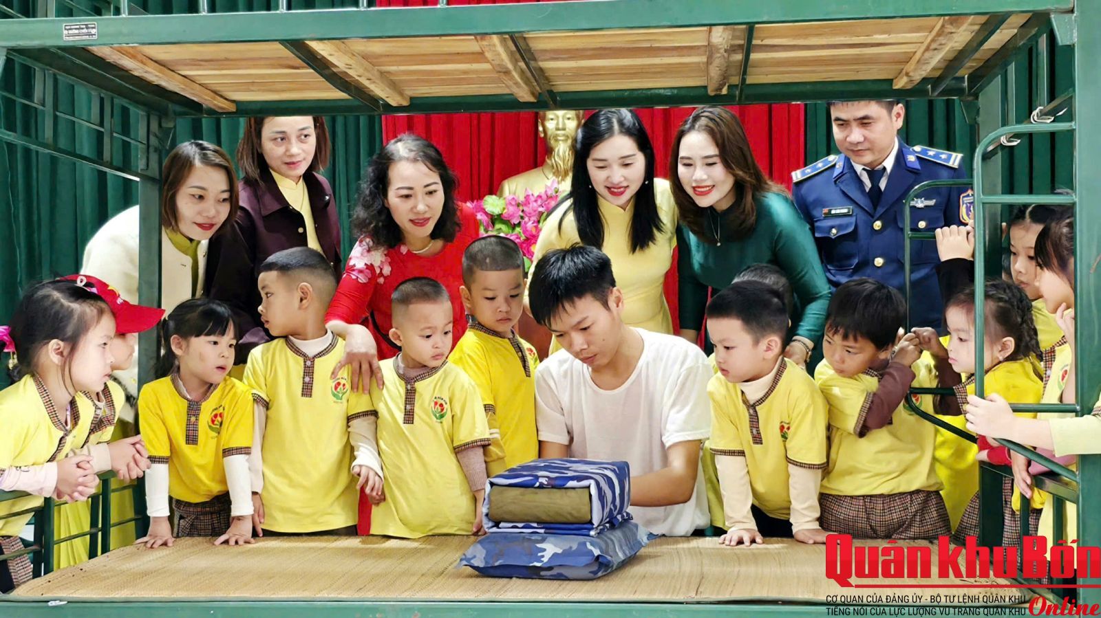 Trong phần trải nghiệm đời sống quân ngũ, cán bộ, chiến sĩ đã biểu diễn 4 bài thể dục buổi sáng và hướng dẫn các em tìm hiểu về nội vụ, vệ sinh, nếp sống chính quy trong quân đội. Nhiều em thích thú khi lần đầu được tận mắt chứng kiến cách gấp chăn màn vuông vức – một nét đặc trưng quen thuộc trong sinh hoạt của bộ đội.