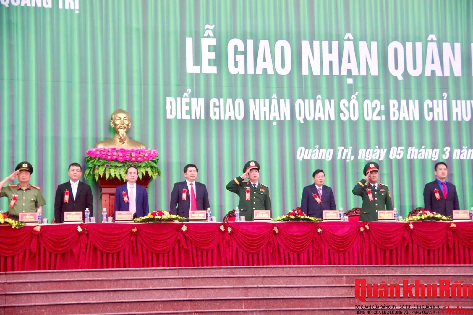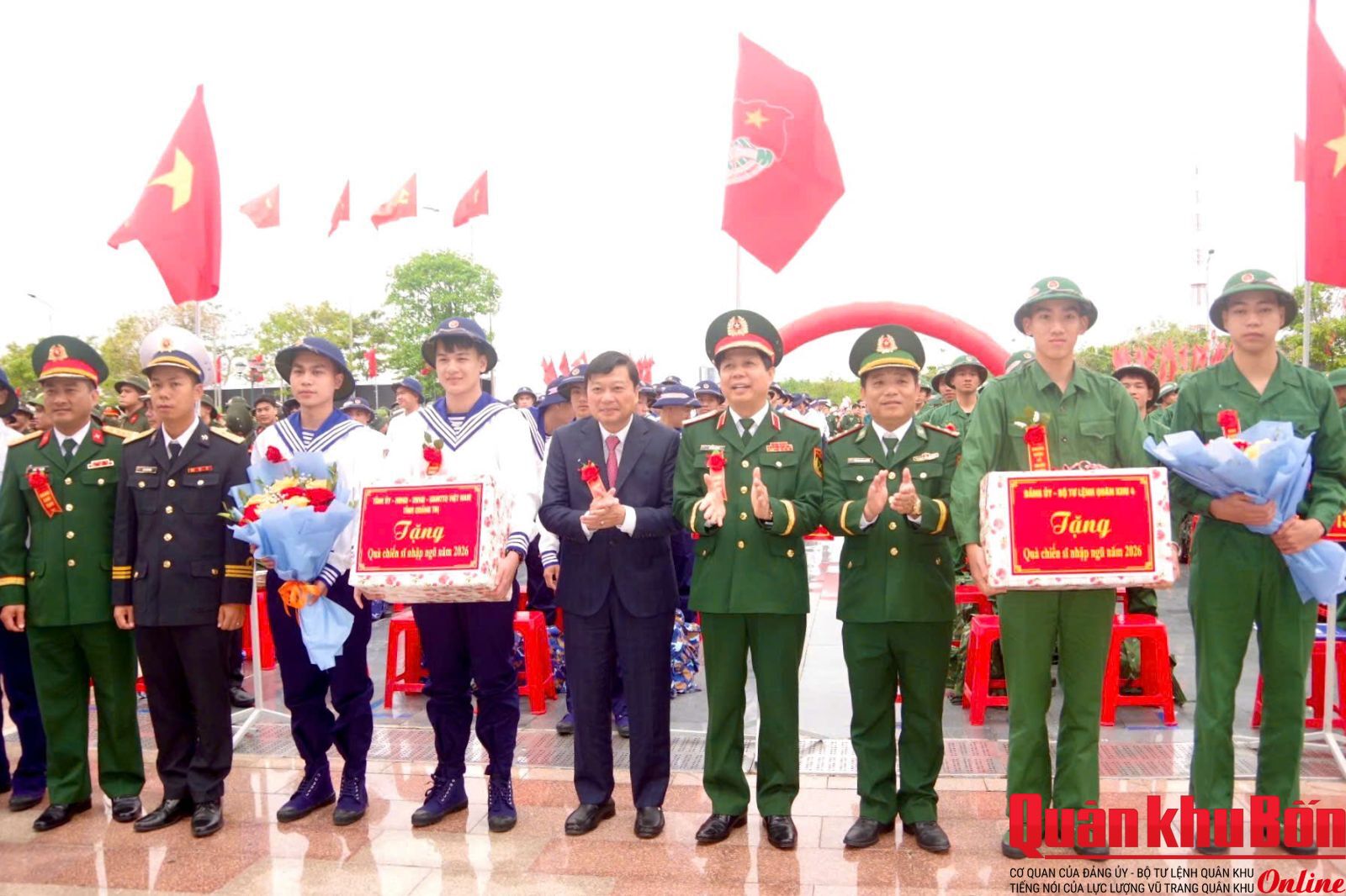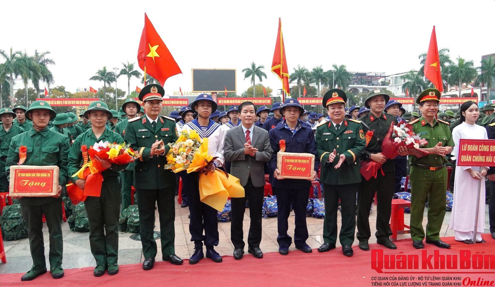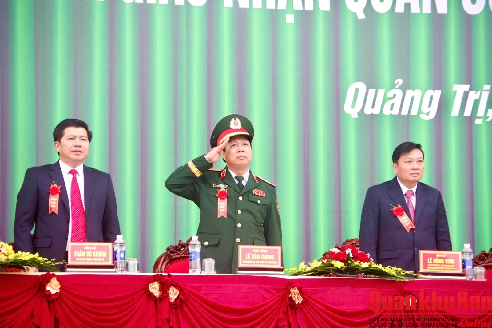 Thiếu tướng Lê Văn Trung, Phó Chính ủy Quân khu 4 dự Lễ tại điểm giao nhận quân số 02: Ban Chỉ huy Phòng thủ khu vực 2 - Quảng Ninh (Sân Trung tâm Văn hóa - Điện ảnh tỉnh phường Đồng Hới); Tham dự tại các điểm giao nhận quân có đại biểu cơ quan Quân khu 4; lãnh đạo Tỉnh ủy, Ủy ban Nhân dân, Hội đồng Nhân dân; Bộ Chỉ huy Quân sự, Công an tỉnh Quảng Trị.