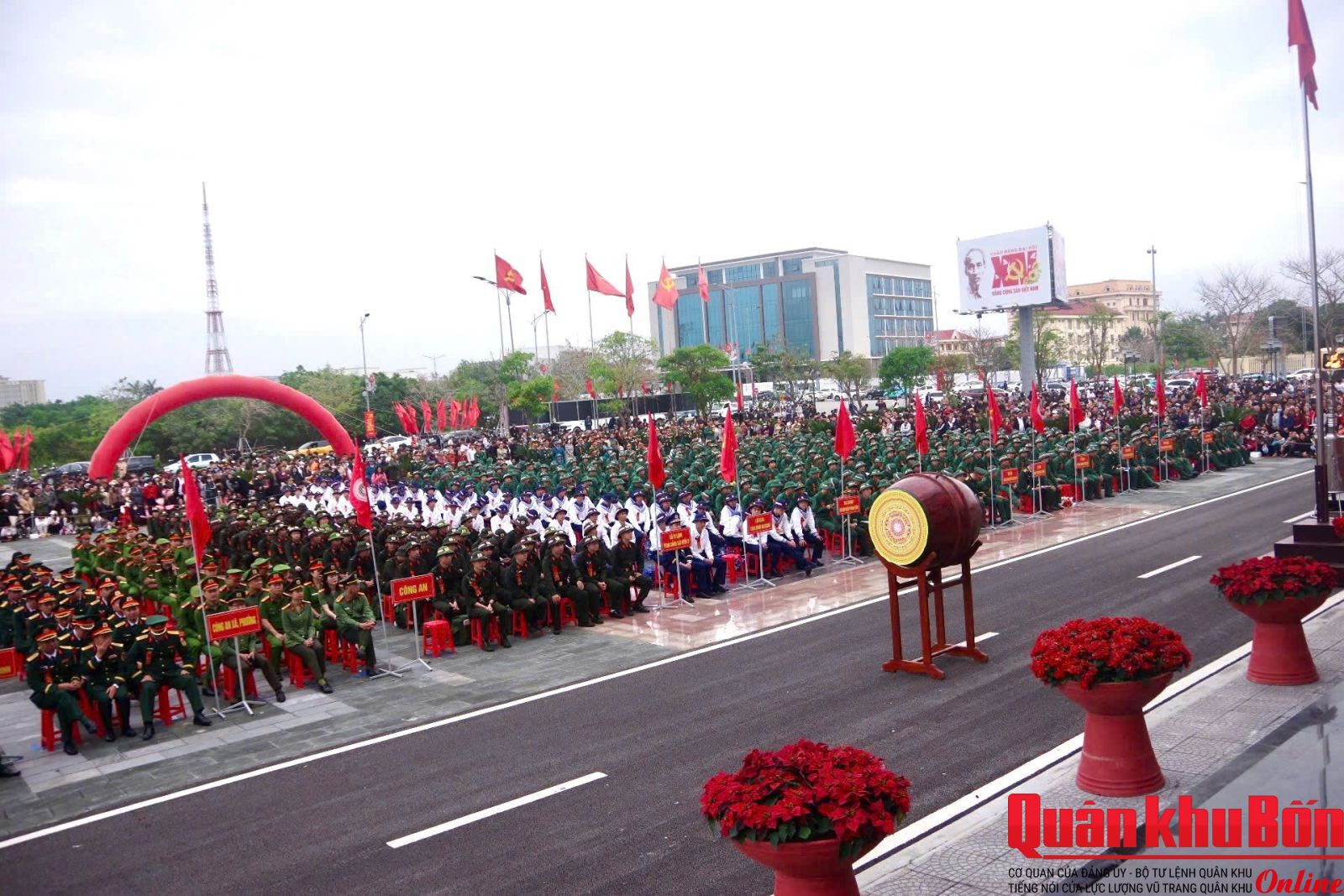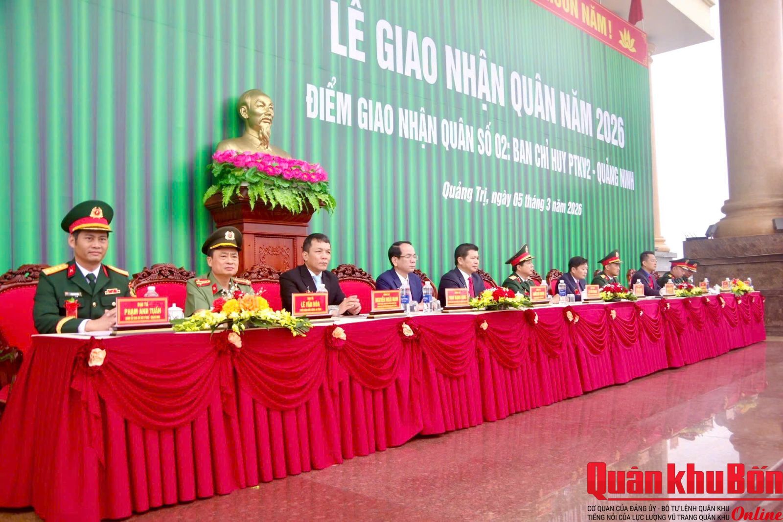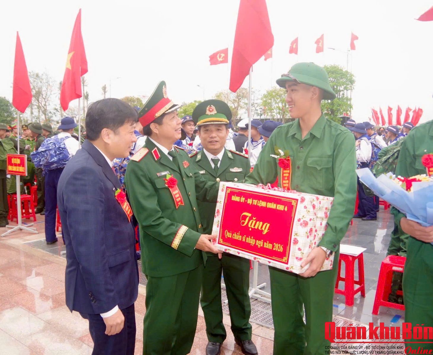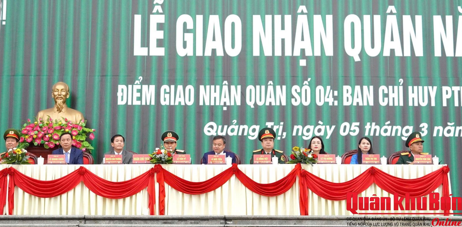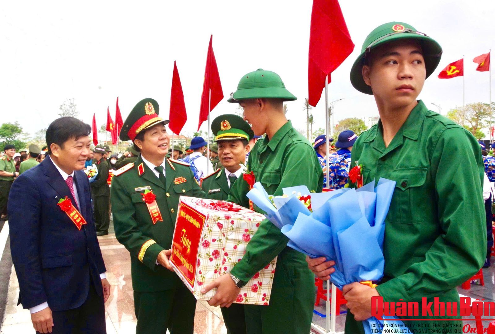 Thiếu tướng Lê Văn Trung, Phó Chính ủy Quân khu 4 dự Lễ tại điểm giao nhận quân số 02: Ban Chỉ huy Phòng thủ khu vực 2 - Quảng Ninh (Sân Trung tâm Văn hóa - Điện ảnh tỉnh phường Đồng Hới); Tham dự tại các điểm giao nhận quân có đại biểu cơ quan Quân khu 4; lãnh đạo Tỉnh ủy, Ủy ban Nhân dân, Hội đồng Nhân dân; Bộ Chỉ huy Quân sự, Công an tỉnh Quảng Trị.