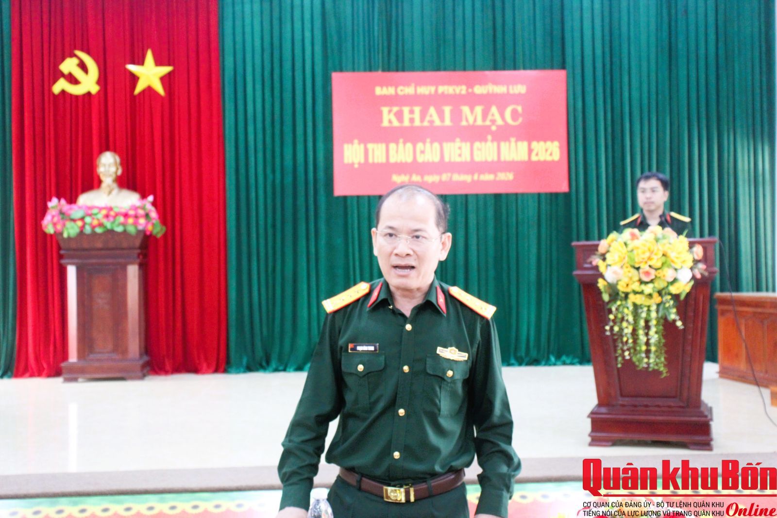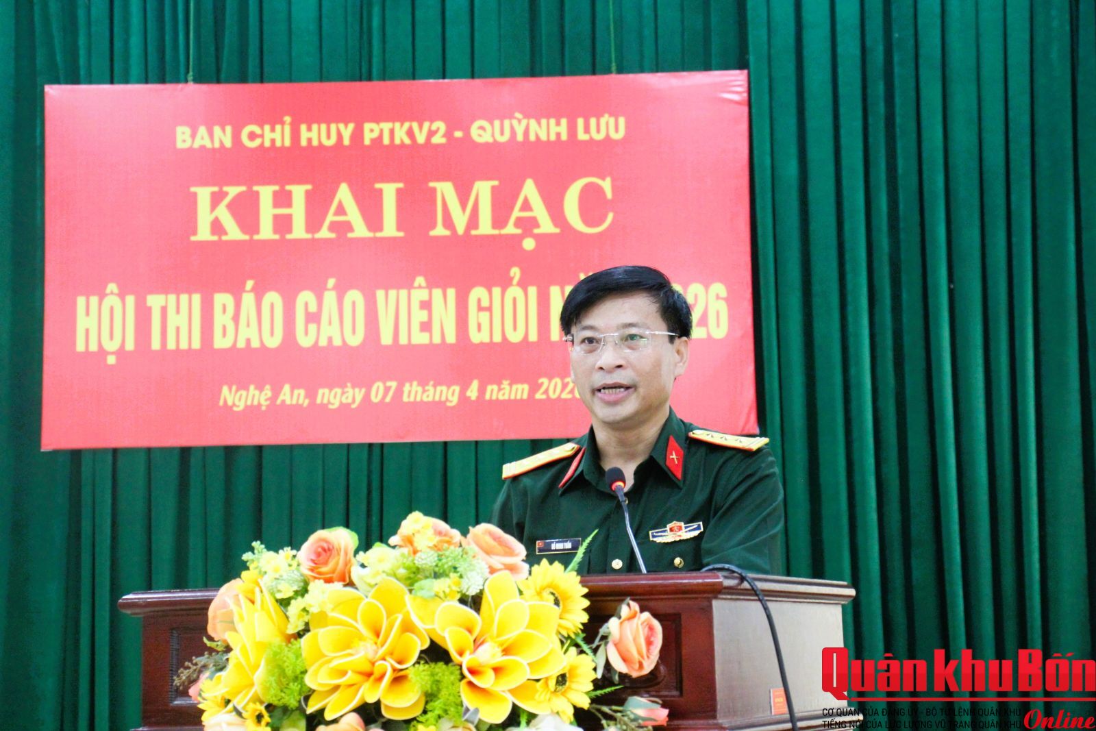 Sáng 7/4/2026, Ban Chỉ huy Phòng thủ khu vực 2 - Quỳnh Lưu (Bộ Chỉ huy Quân sự tỉnh Nghệ An) tổ chức khai mạc Hội thi báo cáo viên giỏi năm 2026.