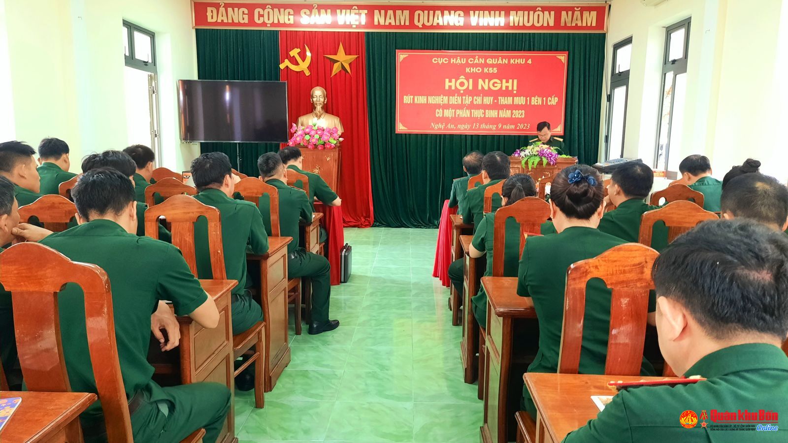 Ngày 13/9/2023, Kho K55, Cục Hậu cần, Quân khu 4 đã tổ chức Hội nghị rút kinh nghiệm diễn tập Chỉ huy - Tham mưu một bên, một cấp có một phần thực binh.