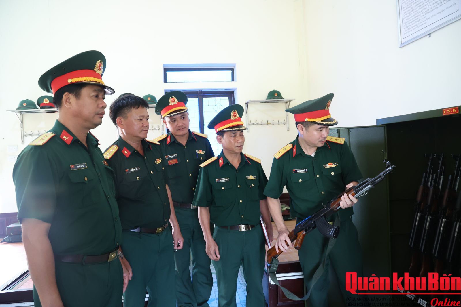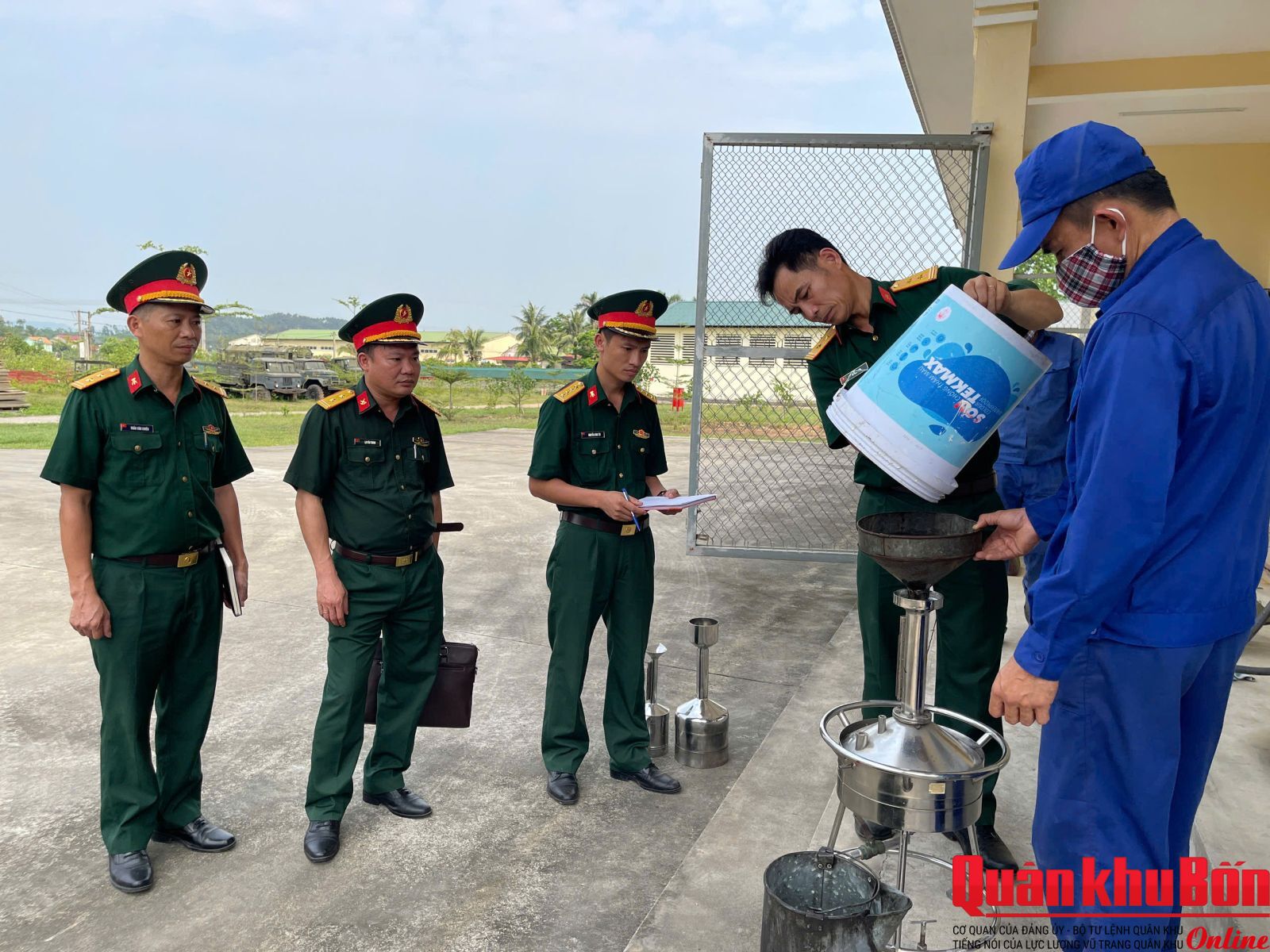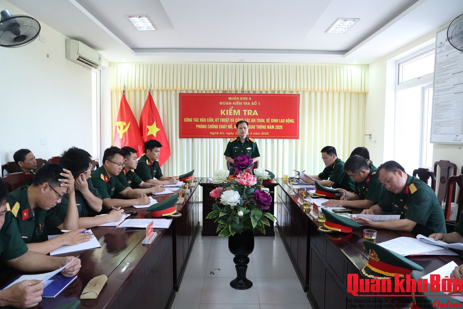 Nằm trong chuỗi các hoạt động hưởng ứng Tháng hành động về An toàn, vệ sinh lao động (ATVSLĐ), chiều 22/4/2026, Đoàn công tác Quân khu 4 do Thượng tá Đào Xuân Đức, Phó Trưởng phòng Tham mưu - Kế hoạch, Cục Hậu cần - Kỹ thuật (HC-KT) Quân khu làm trưởng đoàn đã tiến hành kiểm tra toàn diện công tác ATVSLĐ và phòng chống cháy nổ (PCCN) tại Kho KX5, Cục HC-KT Quân khu.